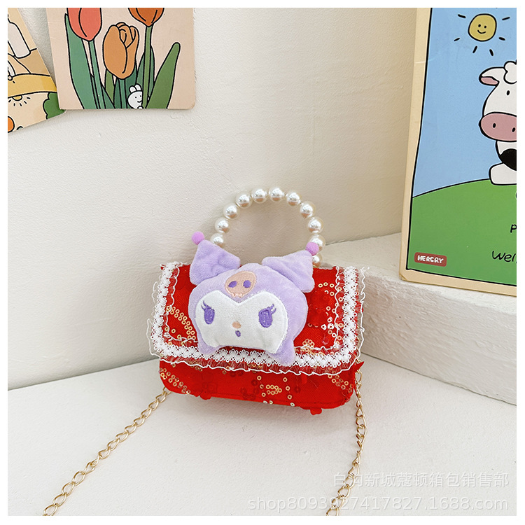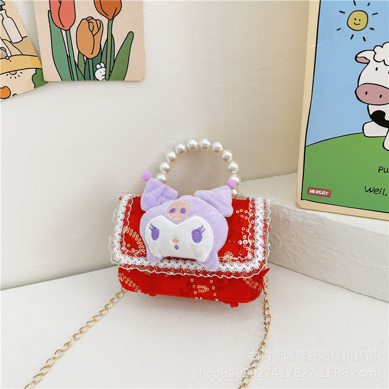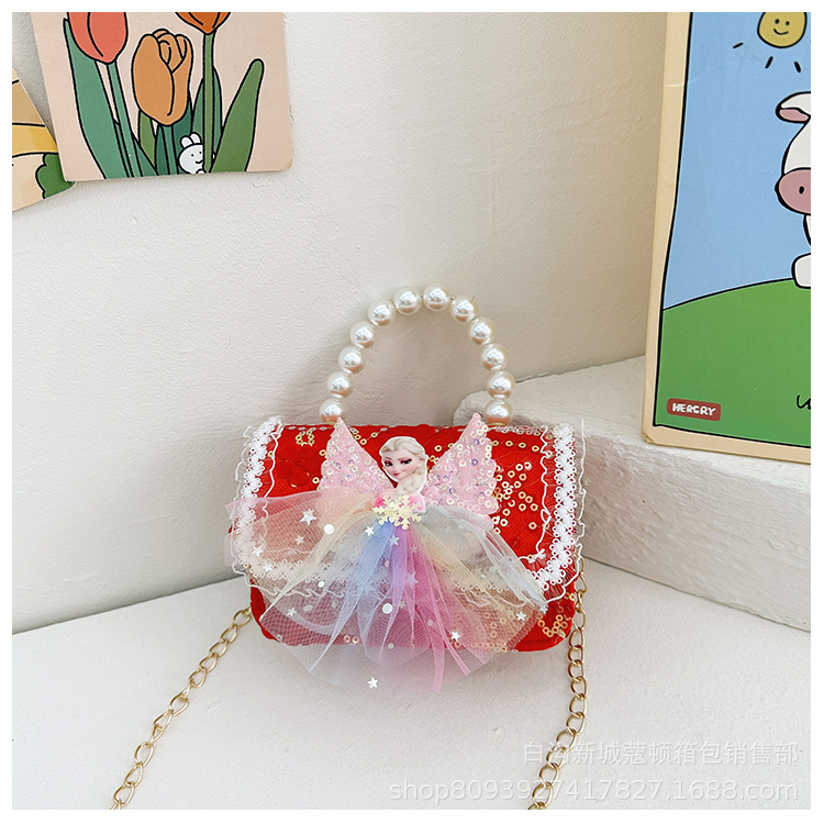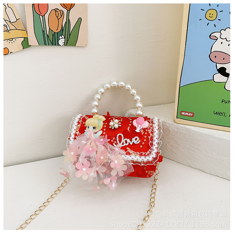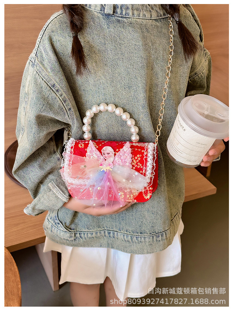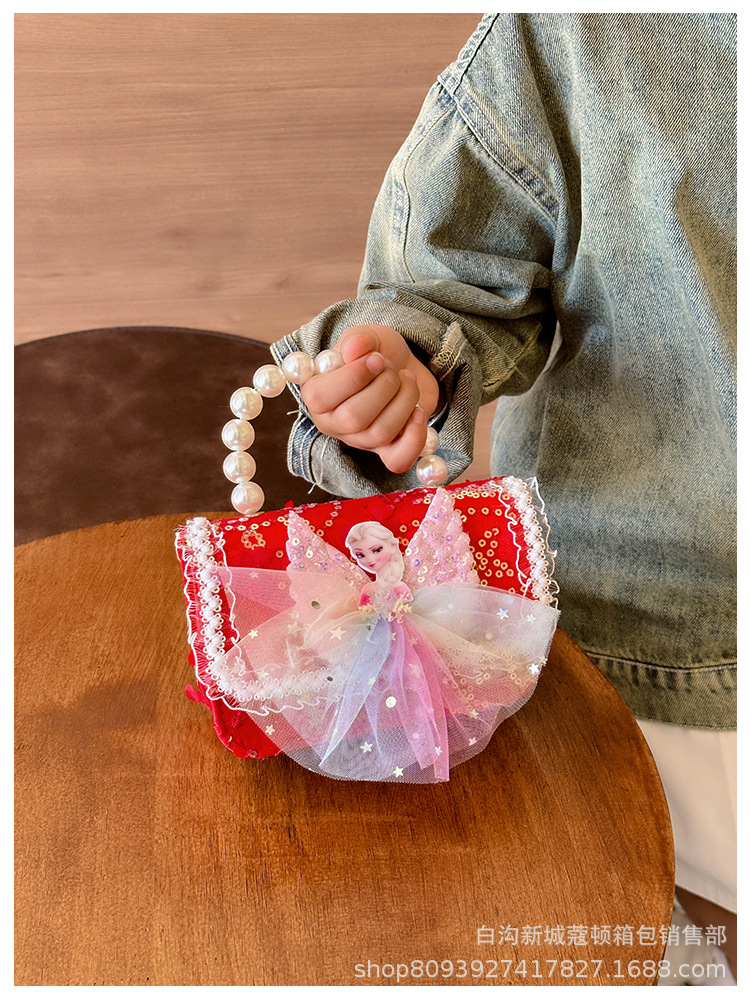 새해 빨간 샤넬 스타일 어린이 진주 핸드백 아기 귀여운 활 체인 가방 소녀 동전 지갑스토어 가기