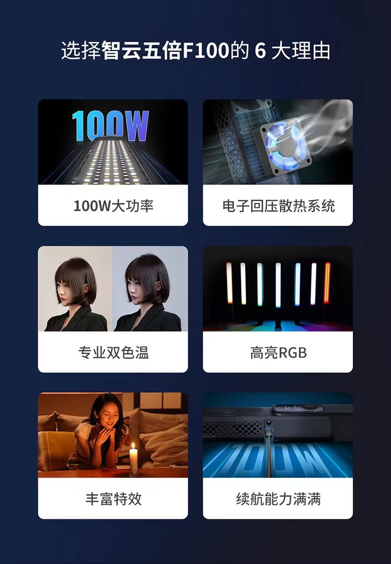 Zhiyun 5 배 F100 라이브 채우기 라이트 rgb 라이트 스틱 100w 야외 휴대용 핸드 헬드 비디오 외부 촬영스토어 가기