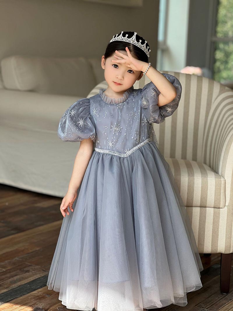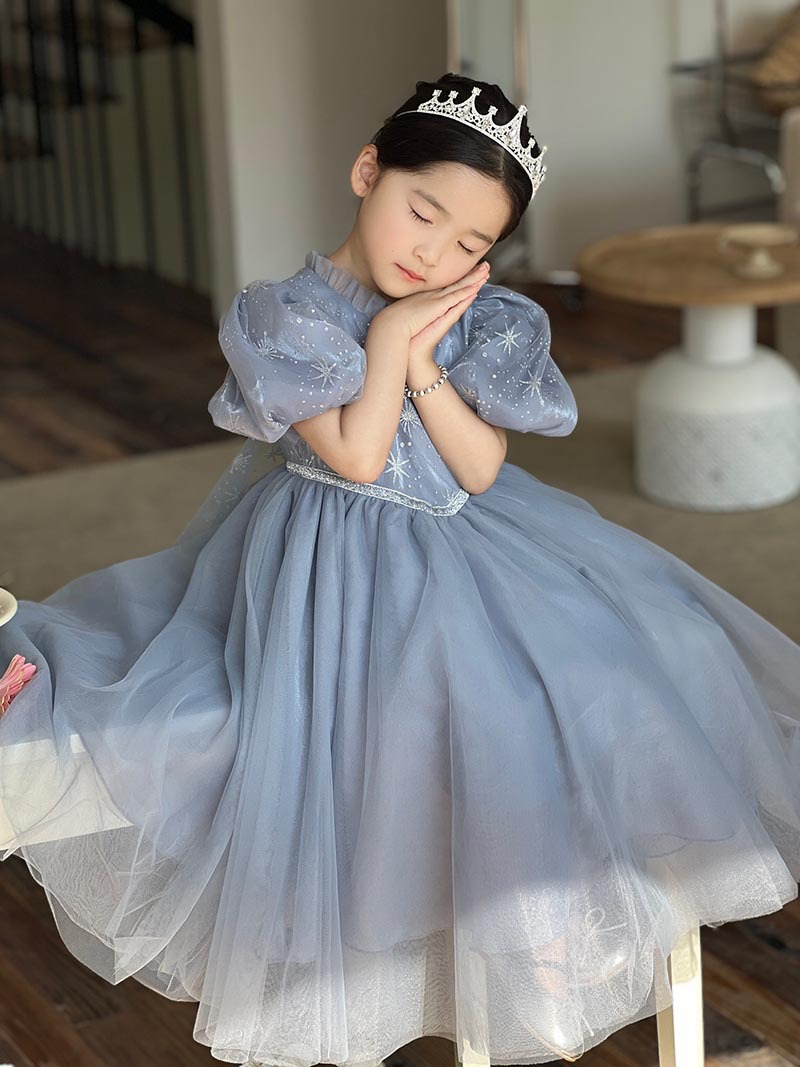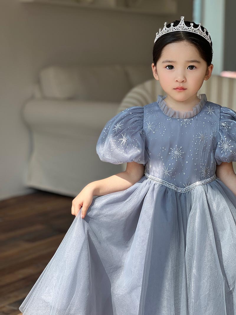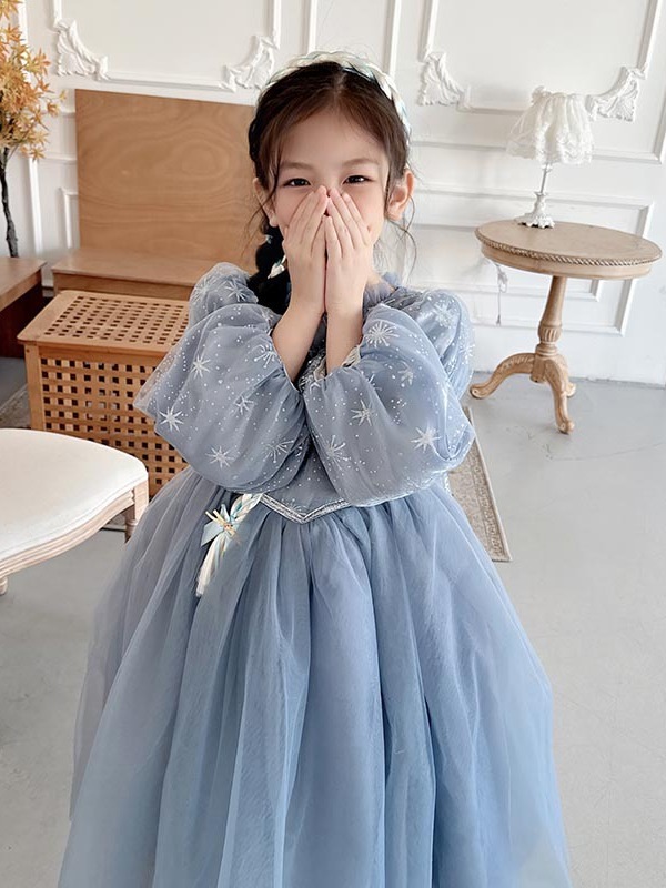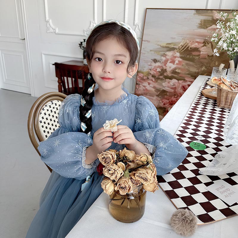 냉동 공주 원피스 가을과 겨울 소녀 아이샤 목도리 원피스 어린이 버블 슬리브 메쉬 원피스 원피스 생일스토어 가기
