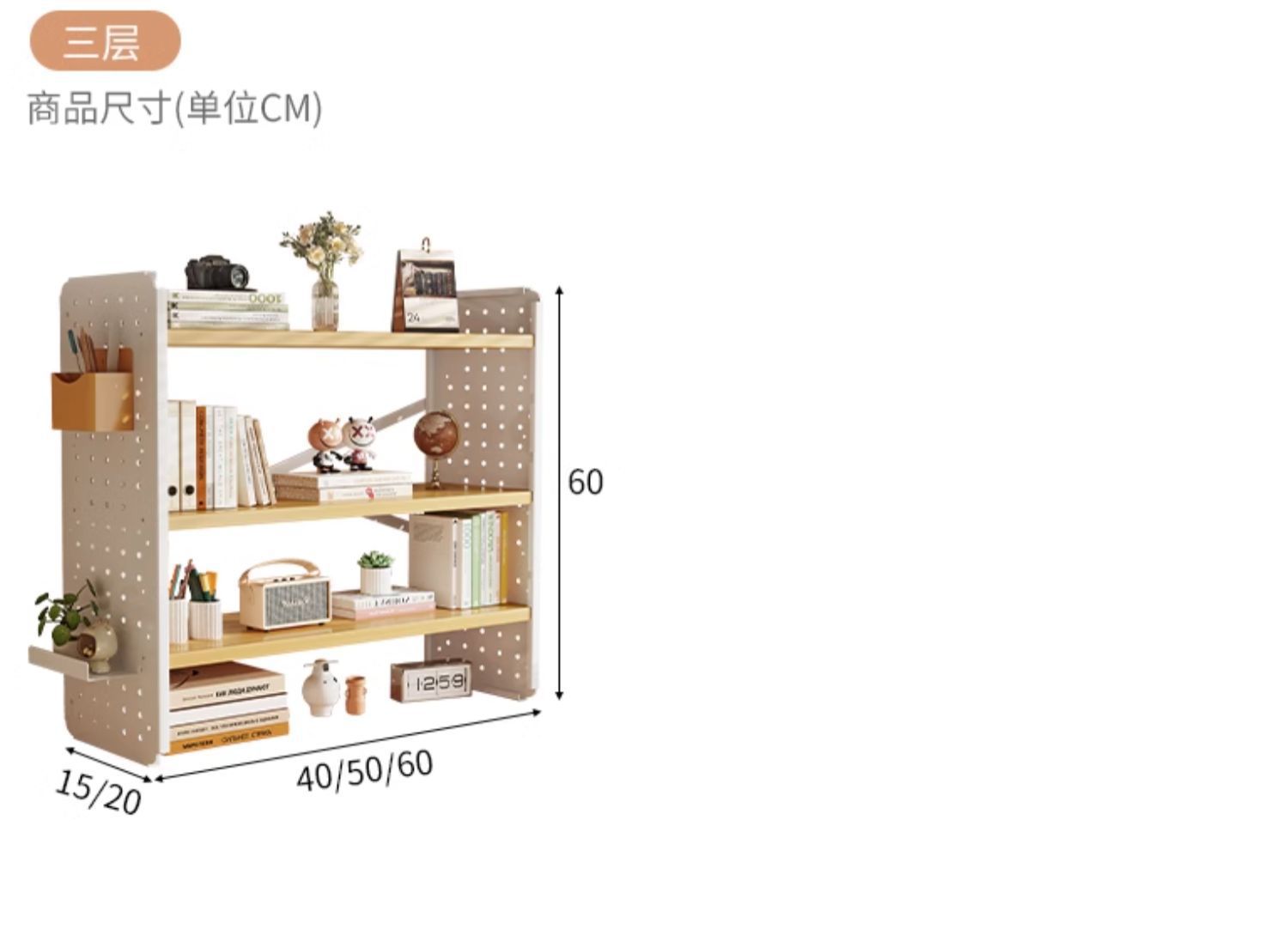 • [3 층] 로그 컬러 화이트 프레임 50*15*60CM