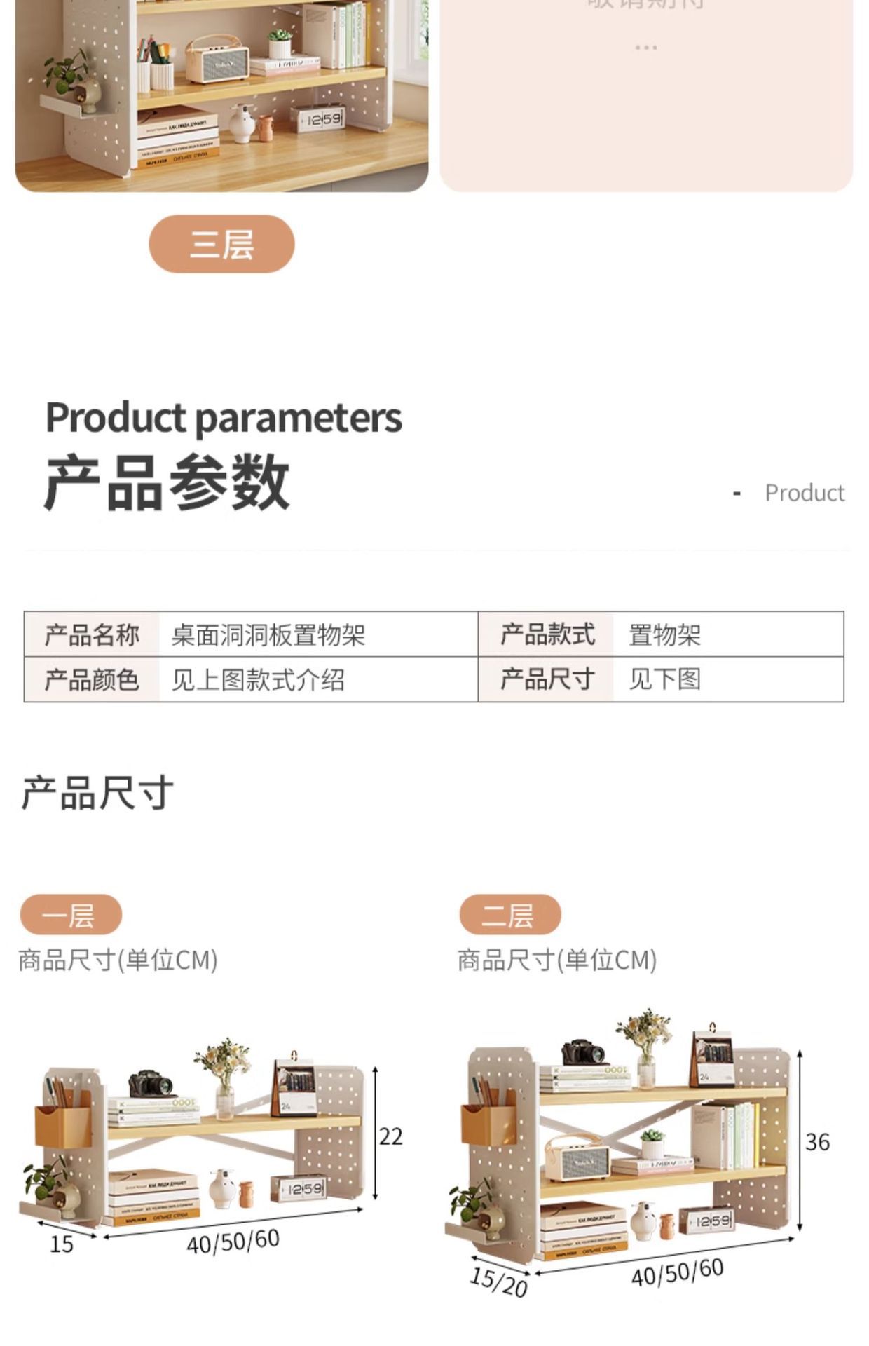 • [3 층] 로그 컬러 화이트 프레임 40*15*60CM