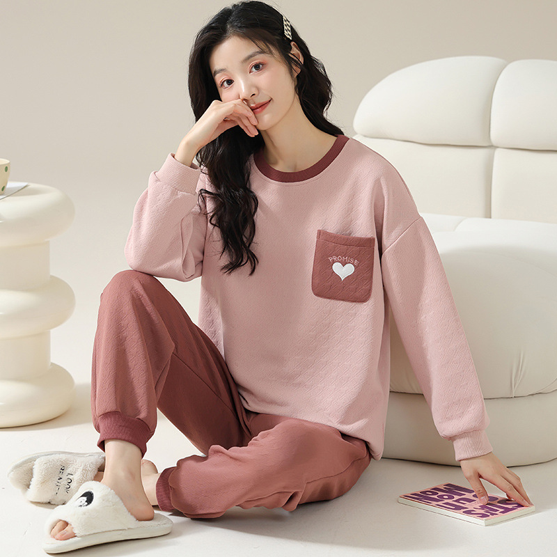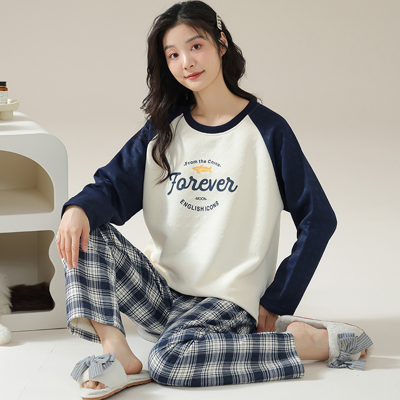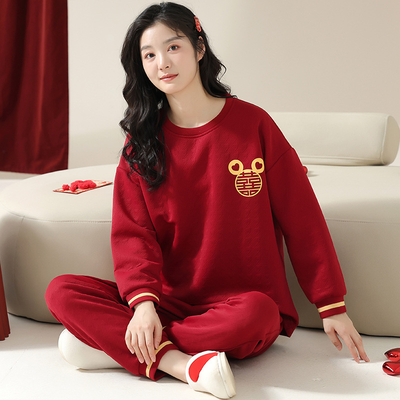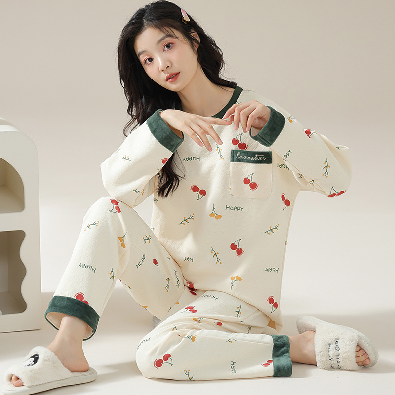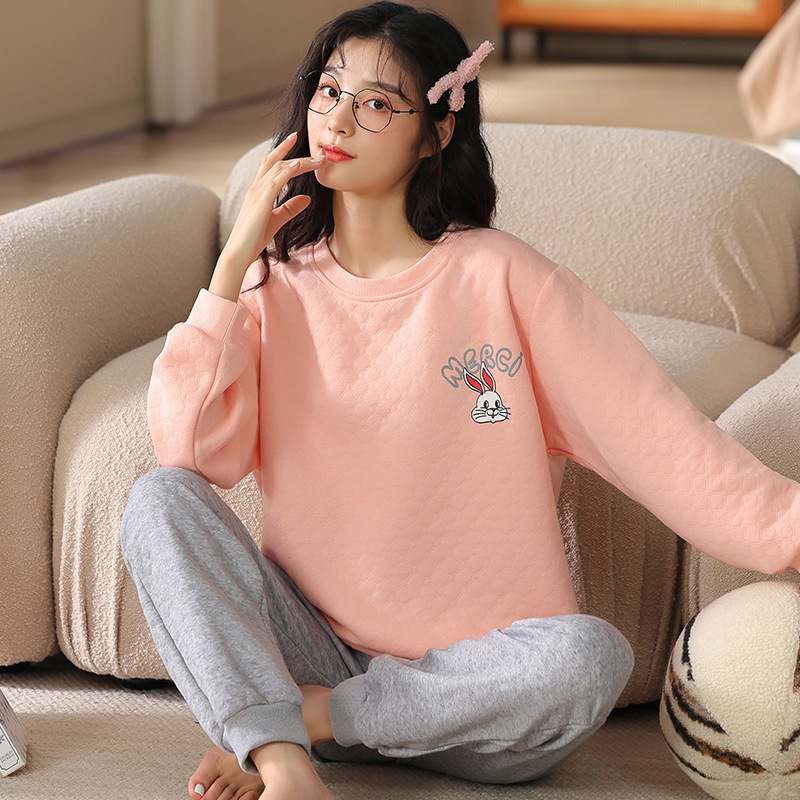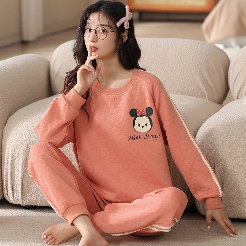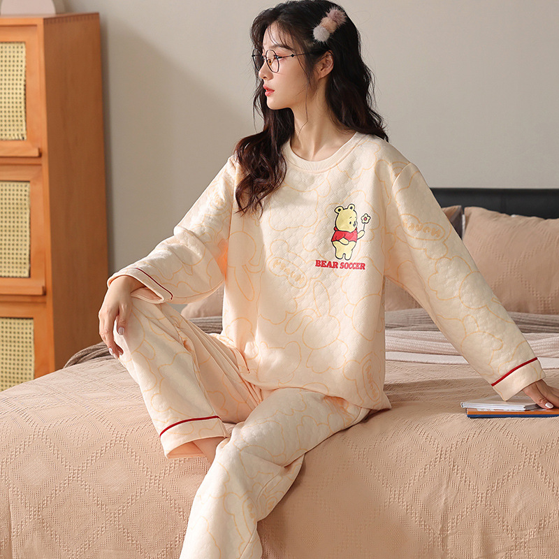 에어 코튼 샌드위치 잠옷 여자의 가을과 겨울 긴팔 면 따뜻한 얇은 면 라운드 넥 만화 겨울 의류스토어 가기