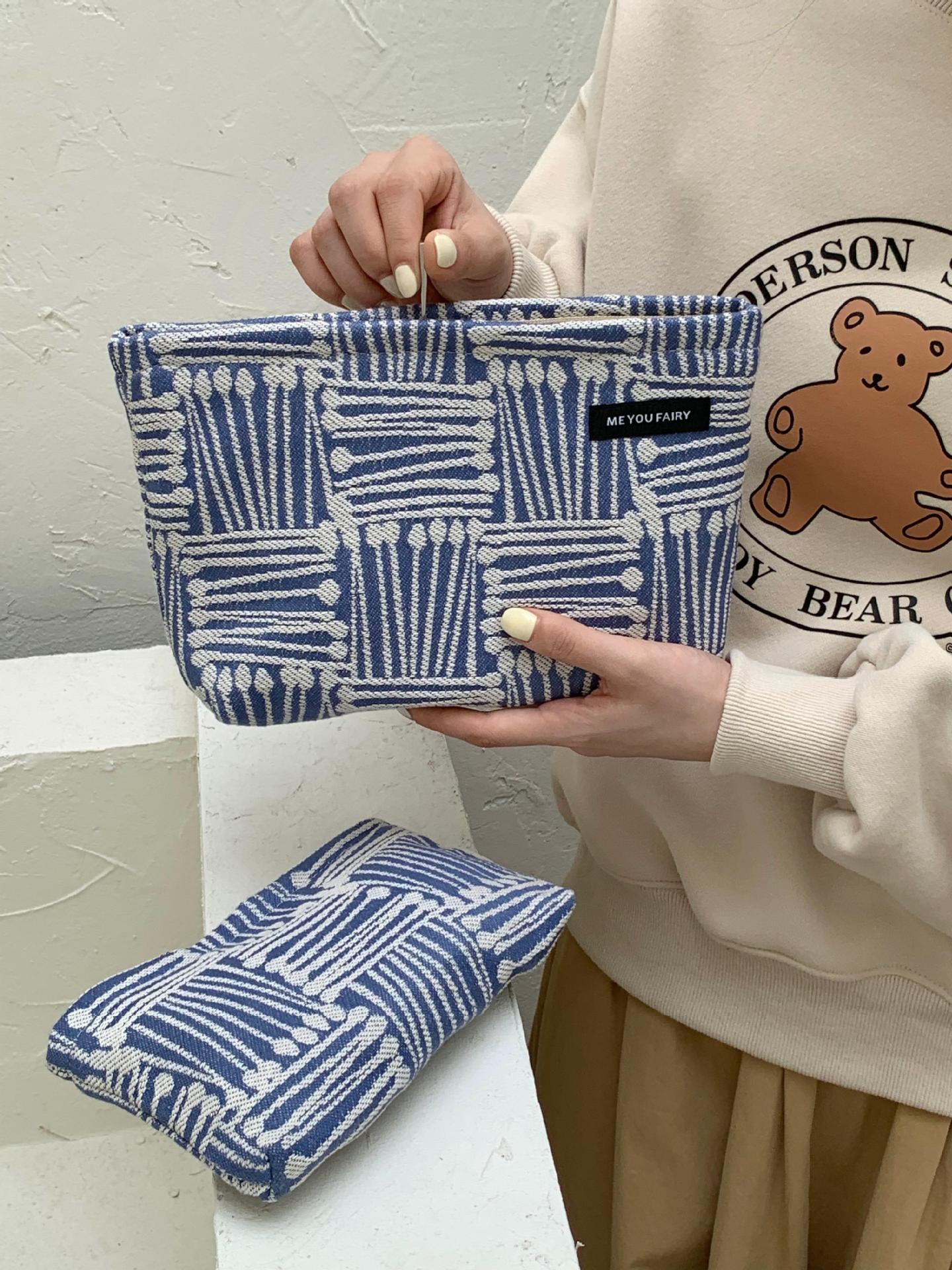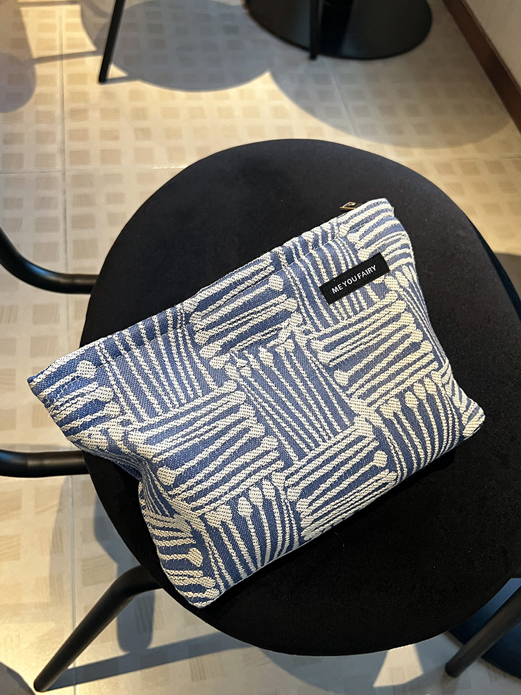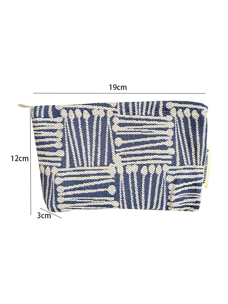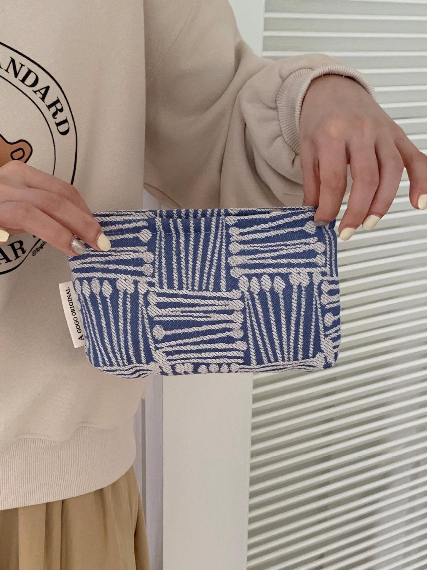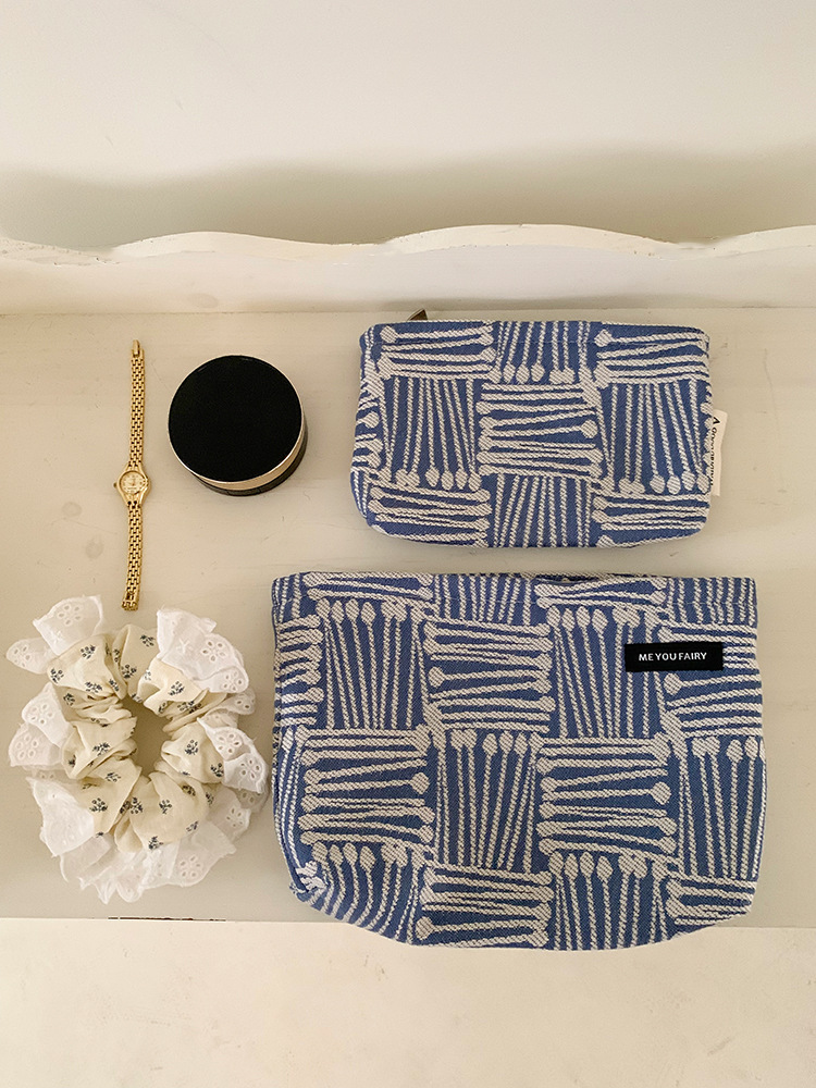 • 화장품 가방 스몰 사이즈. 기하학적 블루 스트립