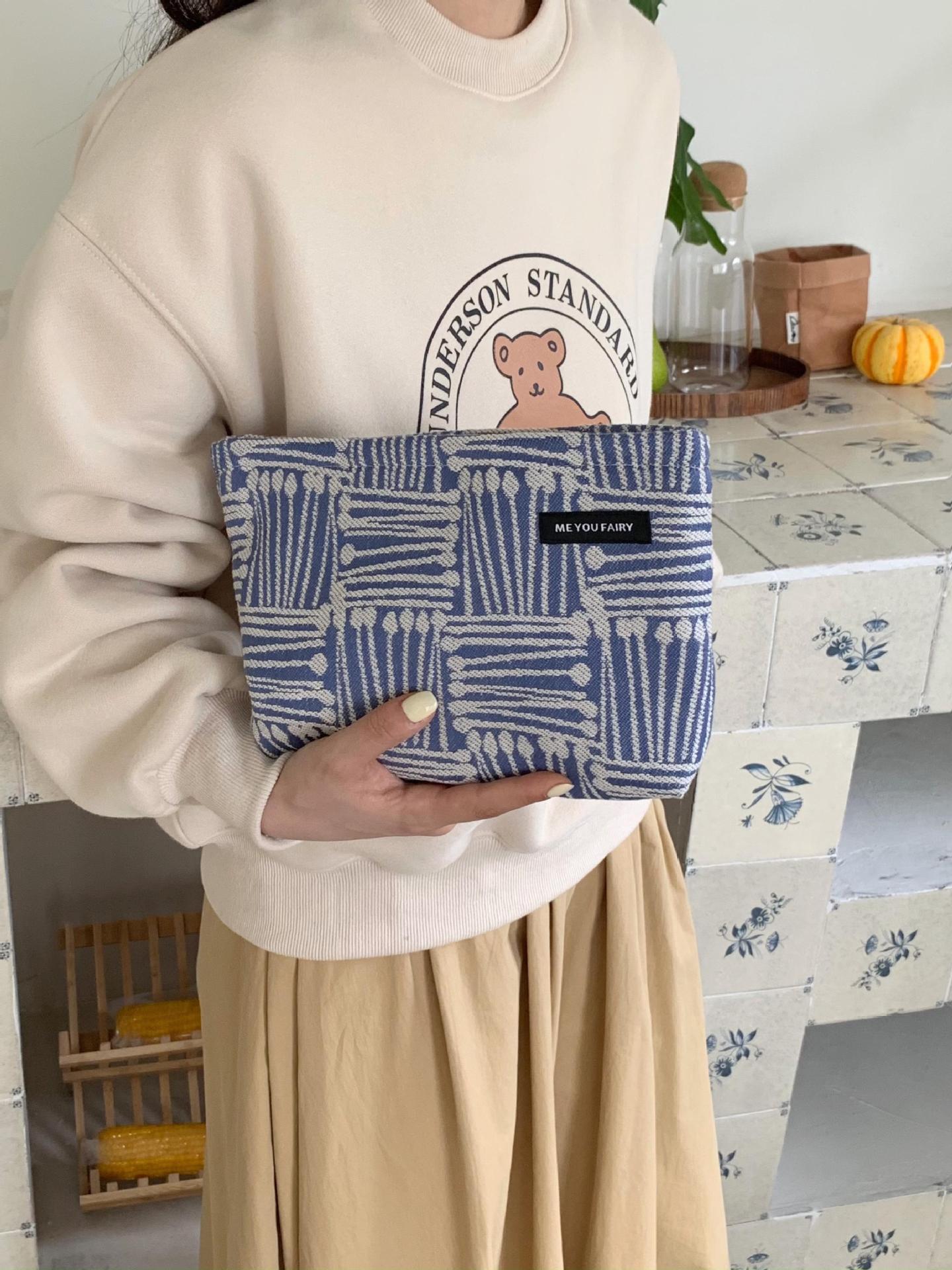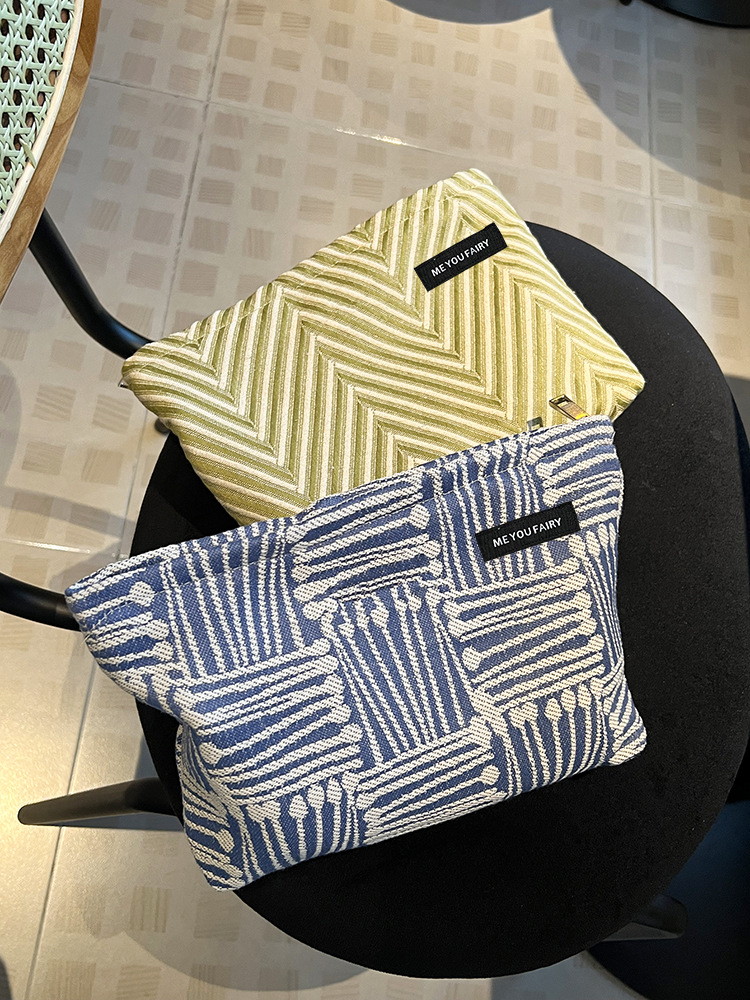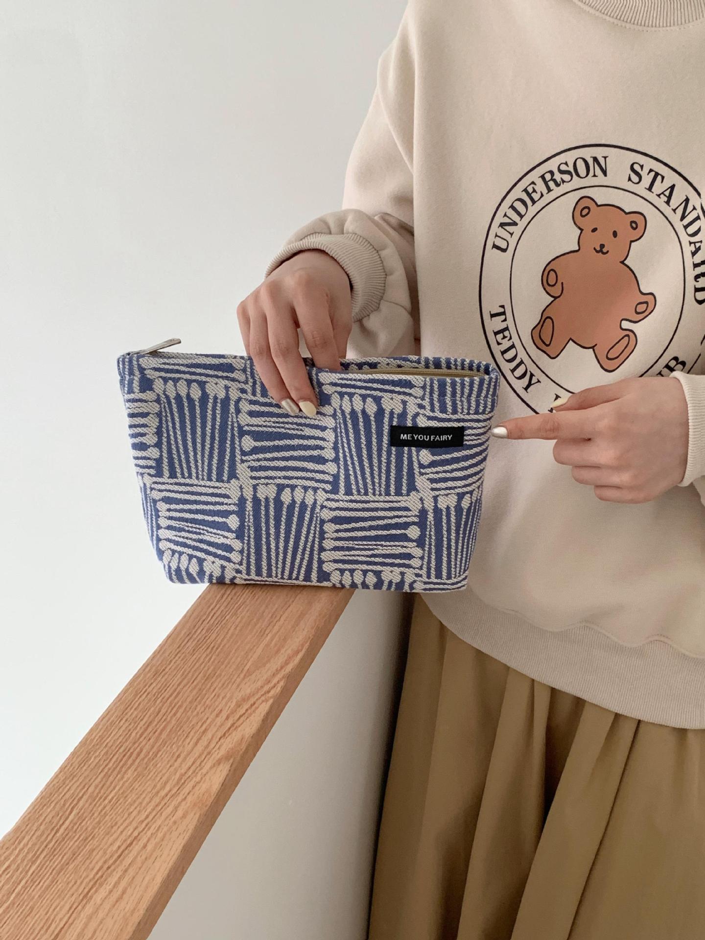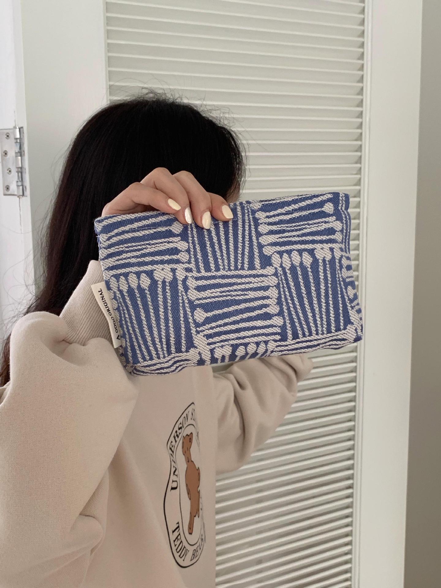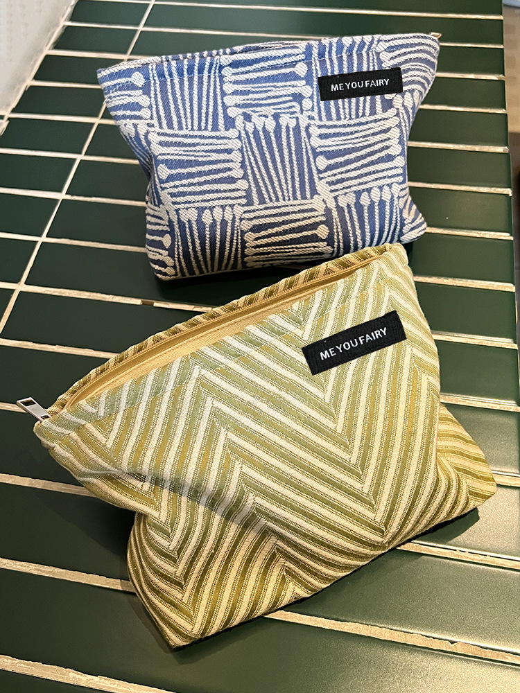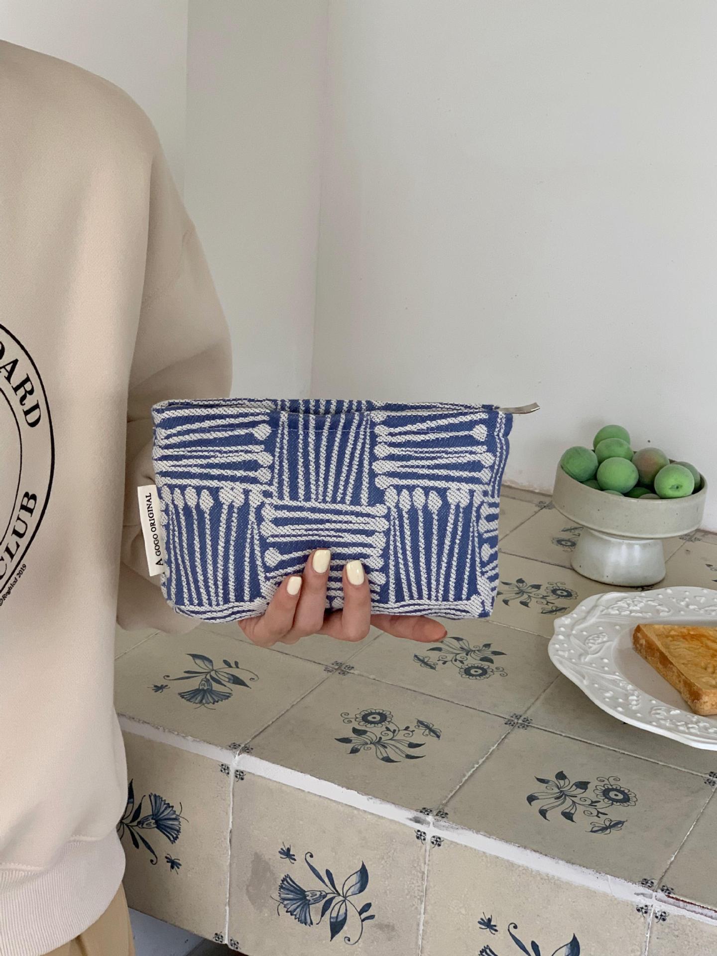 • 화장품 가방 스몰 사이즈. 기하학적 블루 스트립
