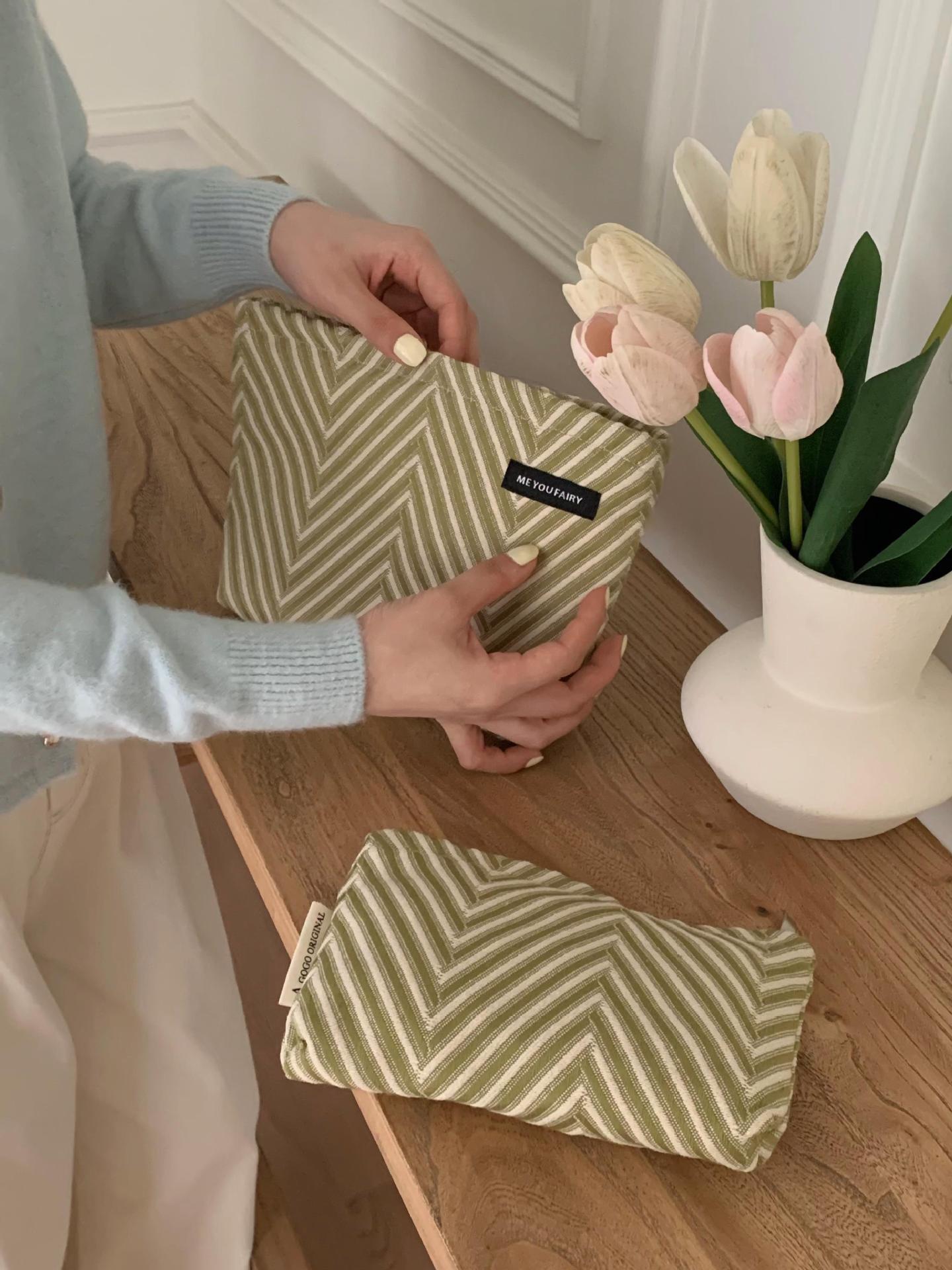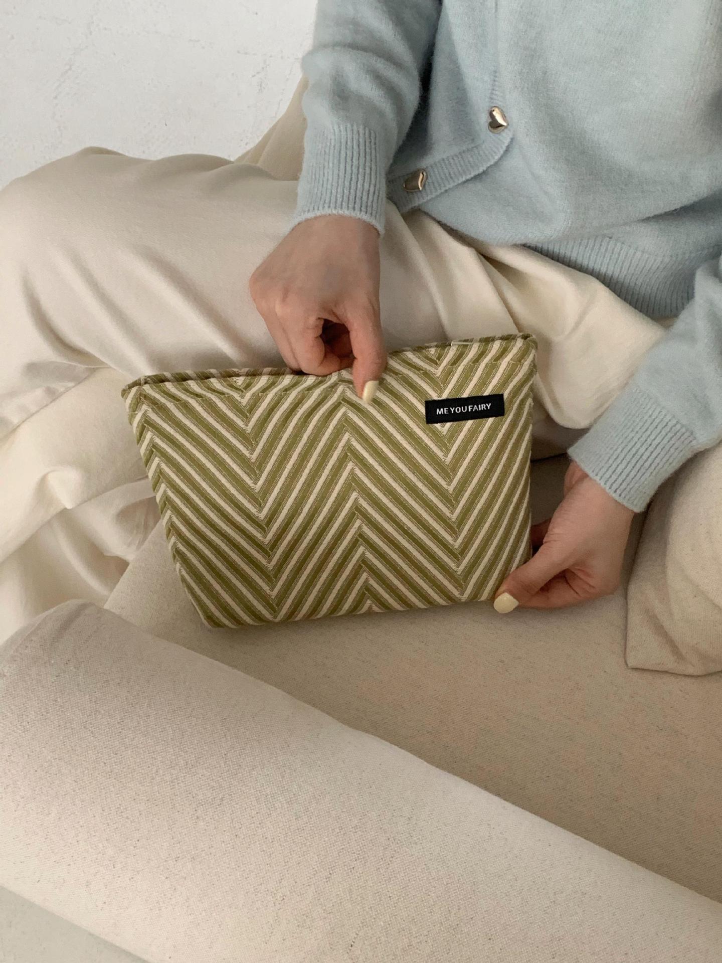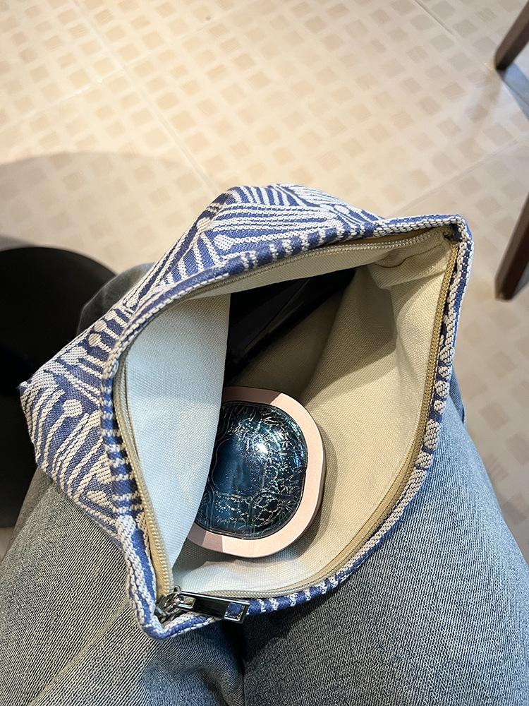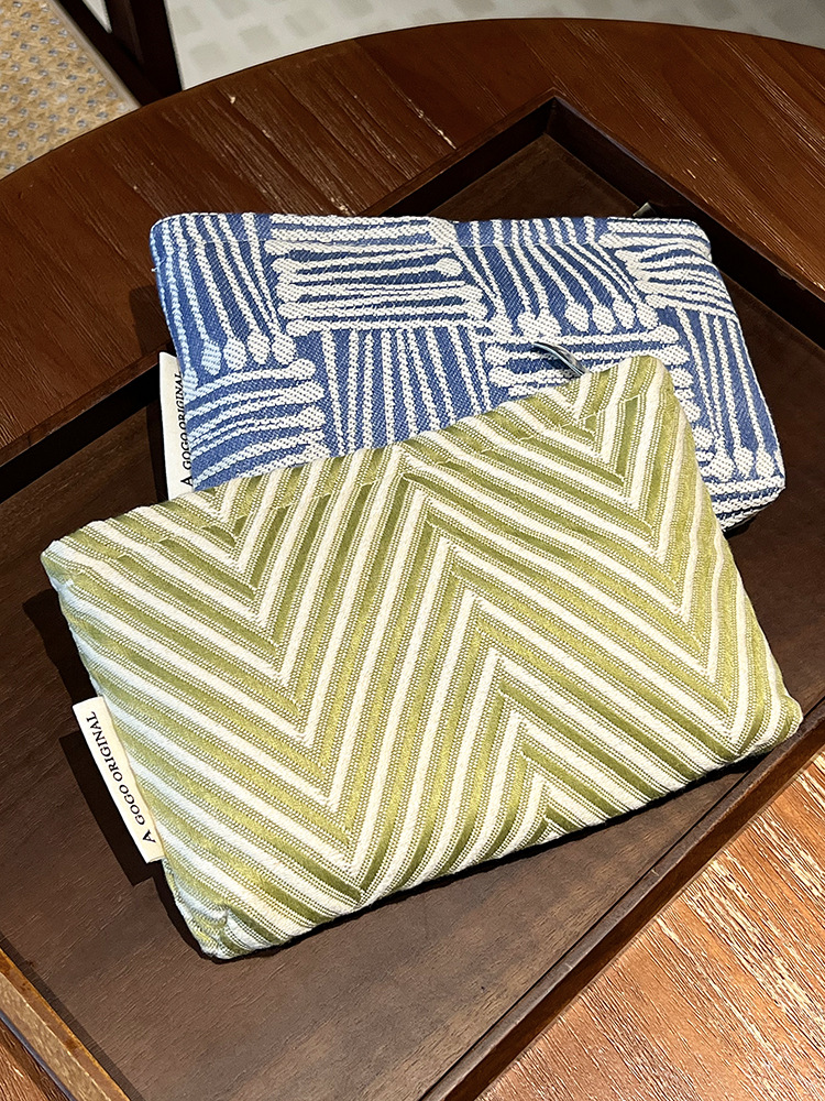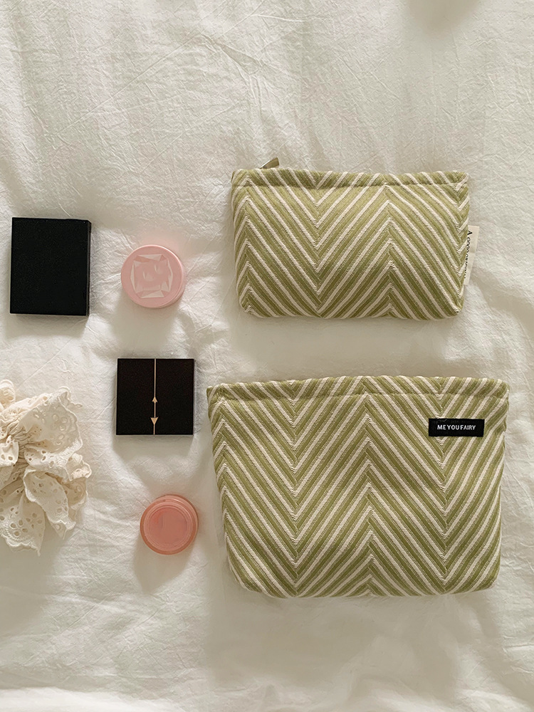 • 화장품 가방 스몰 사이즈. 기하학적 블루 스트립