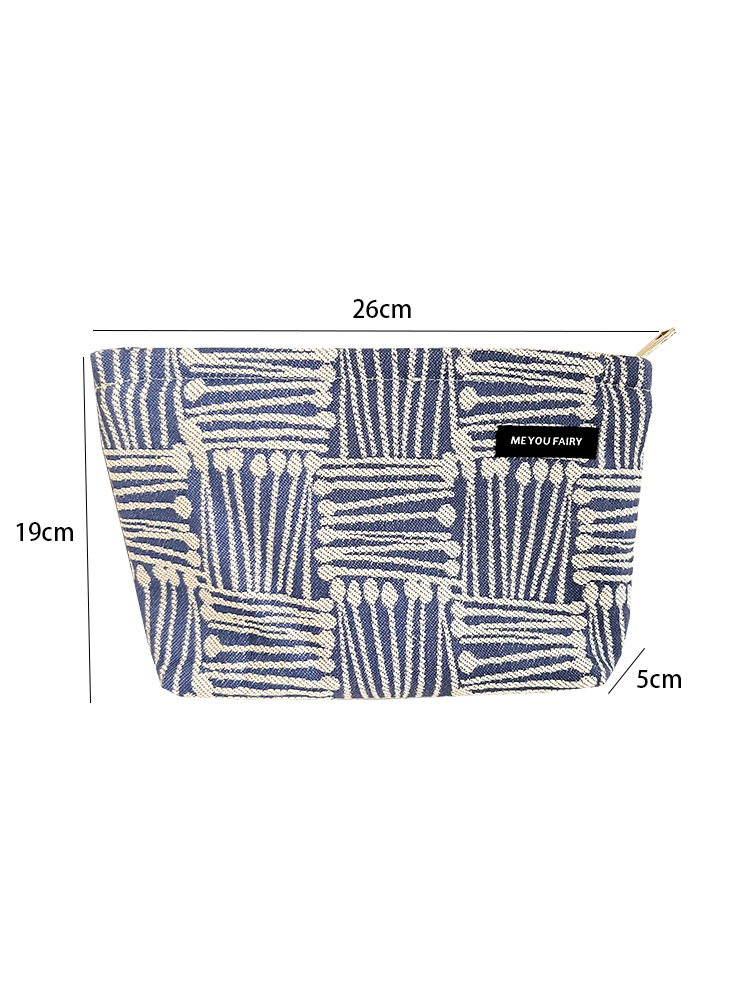 • 대형 화장품 가방. 기하학적 블루 스트립