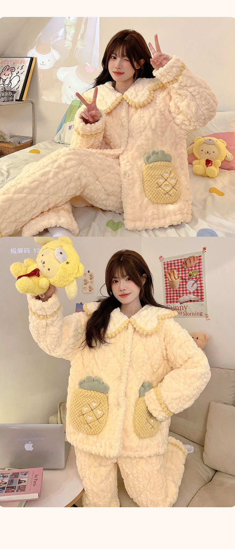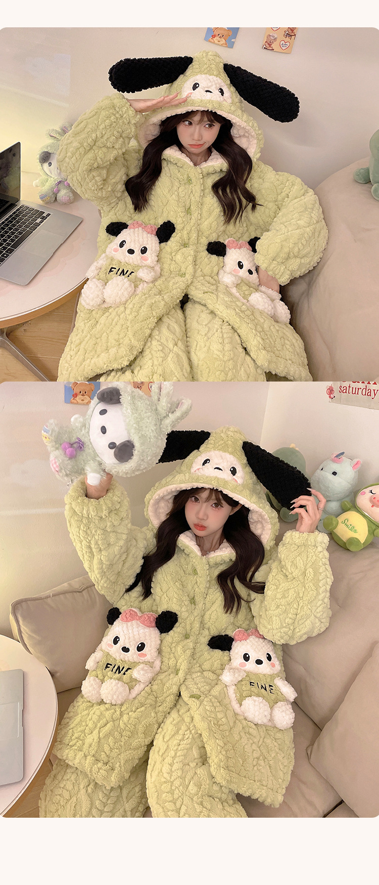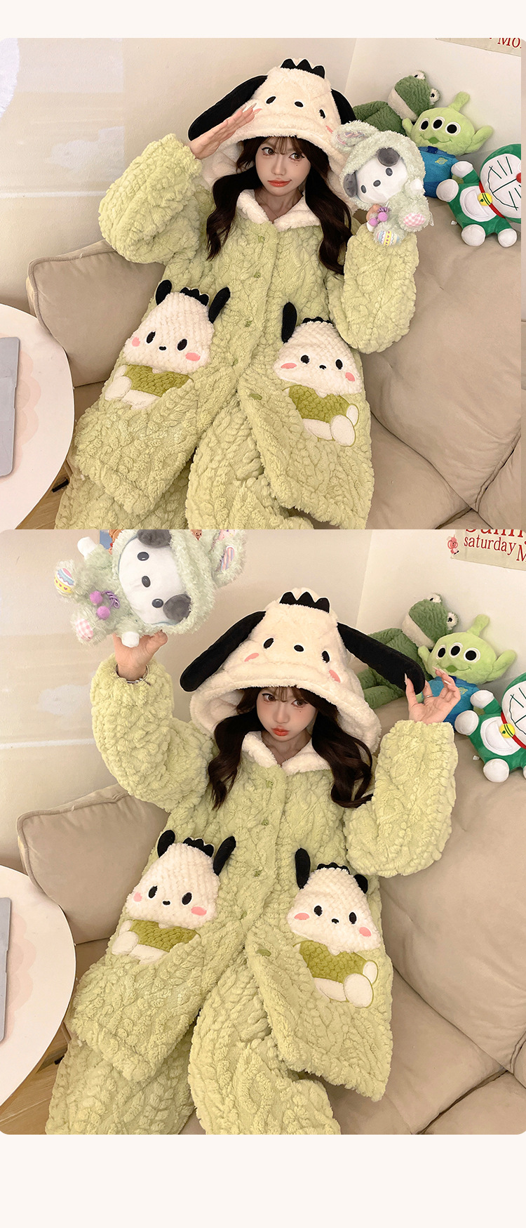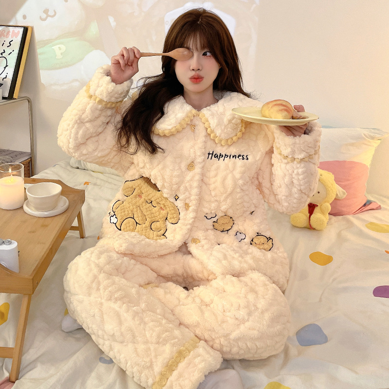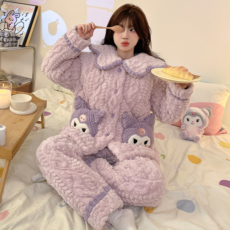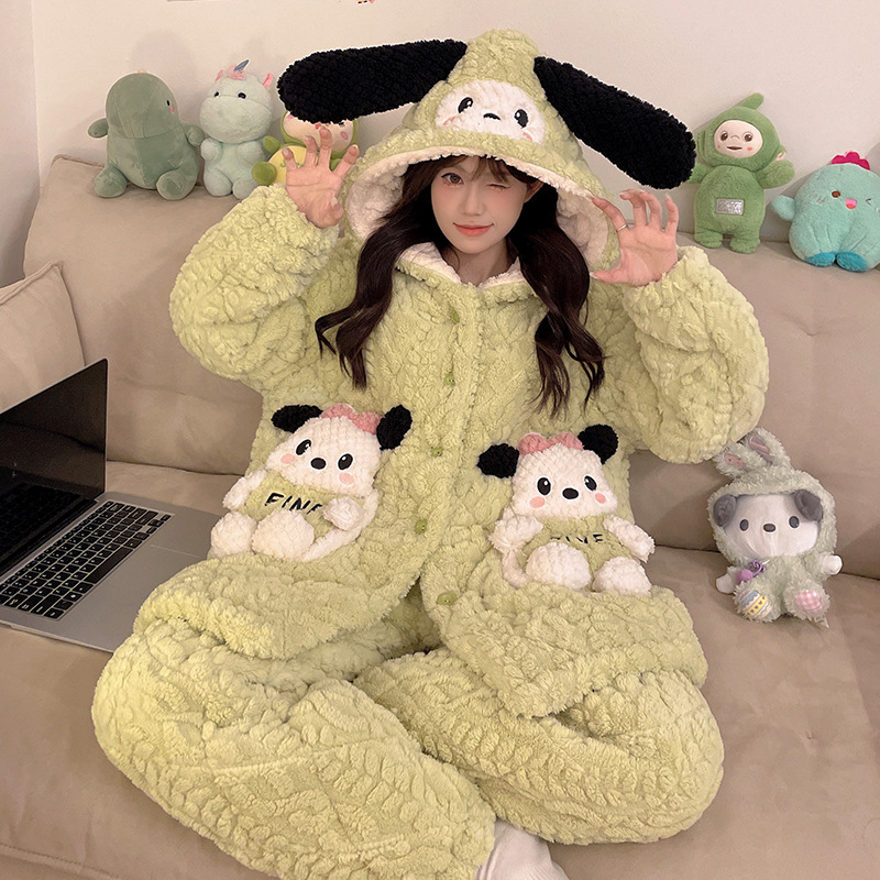 산호 양털 퀼트 3 층 두꺼운 잠옷 여자의 겨울 지퍼 후드 새로운 스타일 가정 옷 플란넬 기모 따뜻한