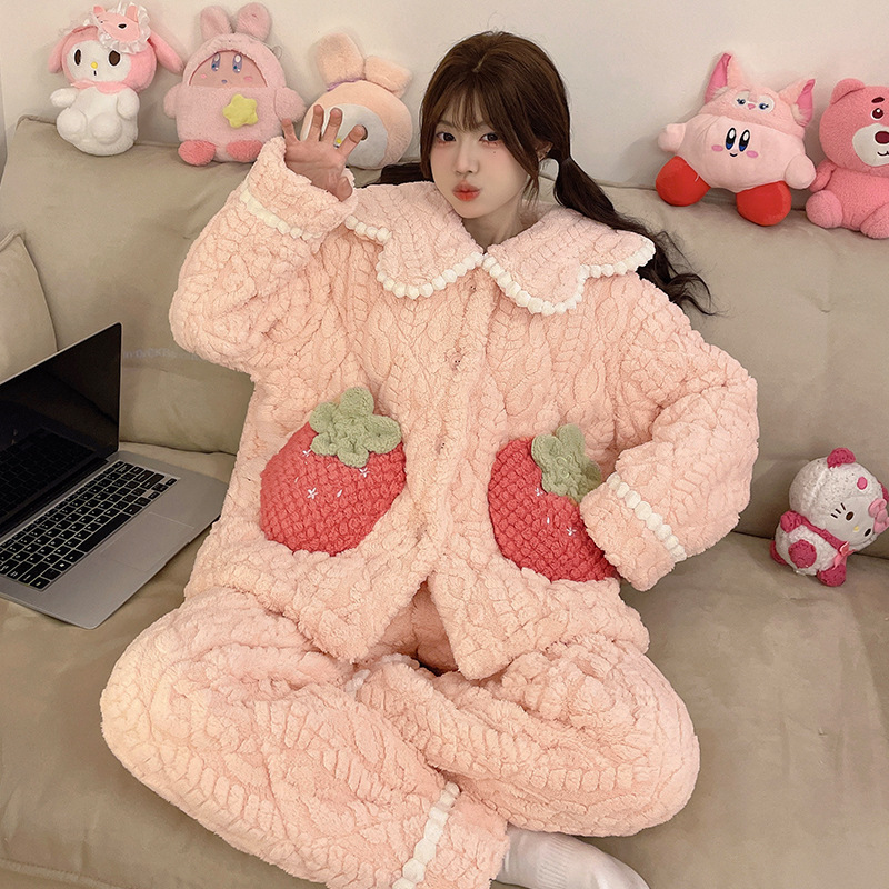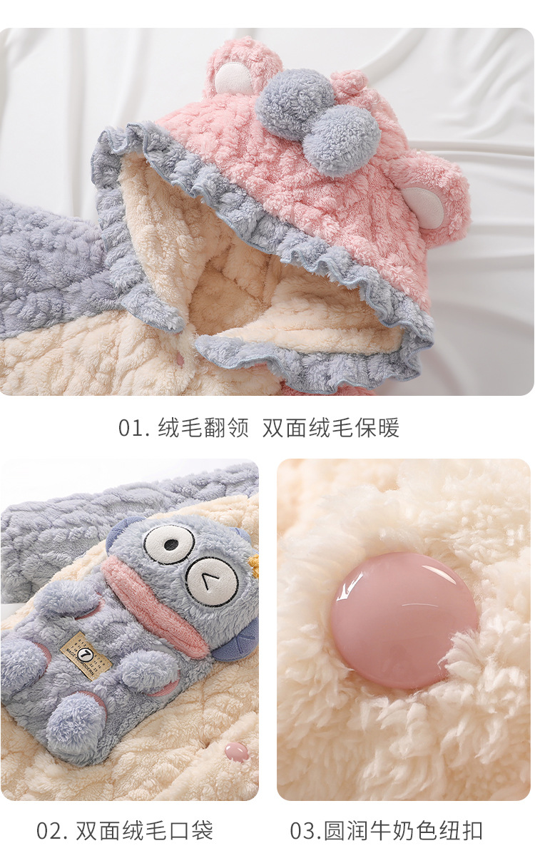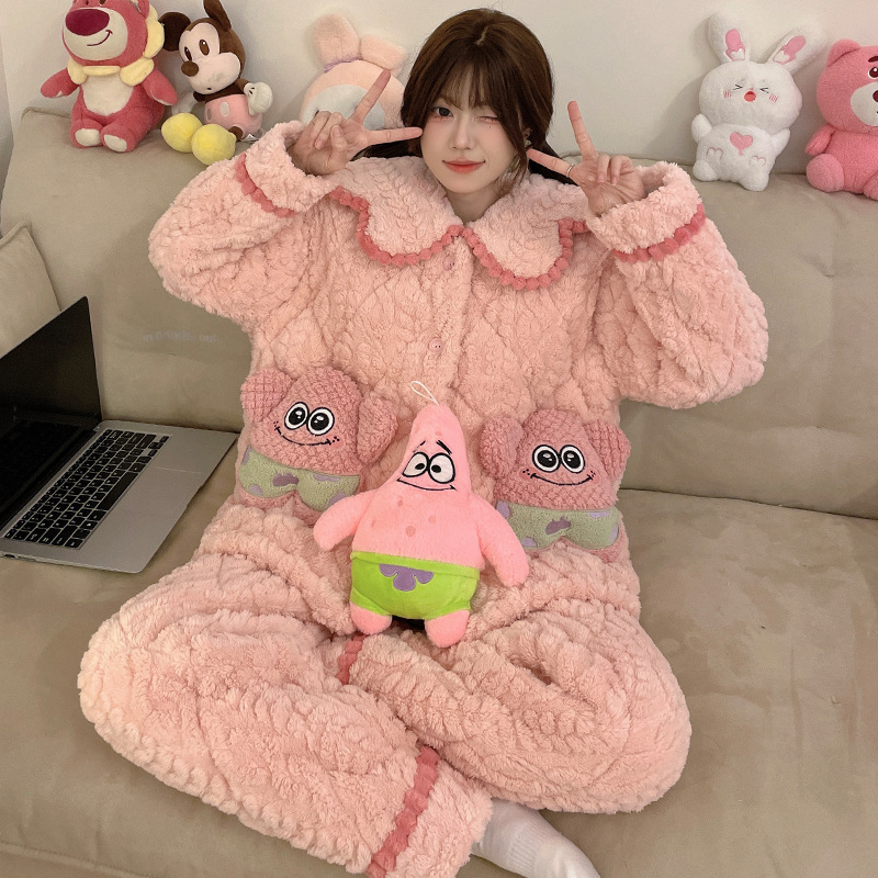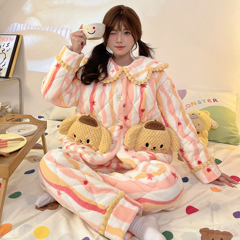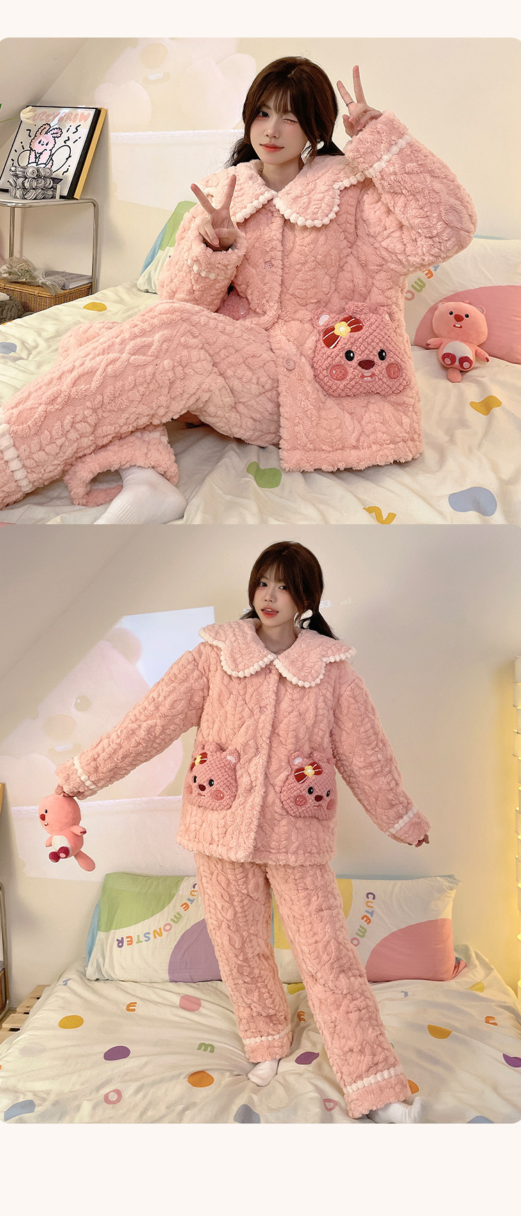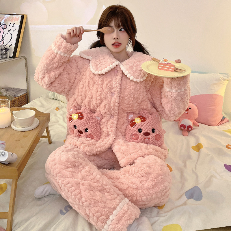 산호 양털 퀼트 3 층 두꺼운 잠옷 여자의 겨울 지퍼 후드 새로운 스타일 가정 옷 플란넬 기모 따뜻한스토어 가기