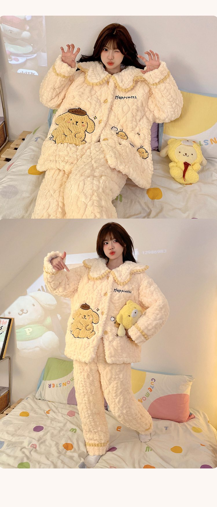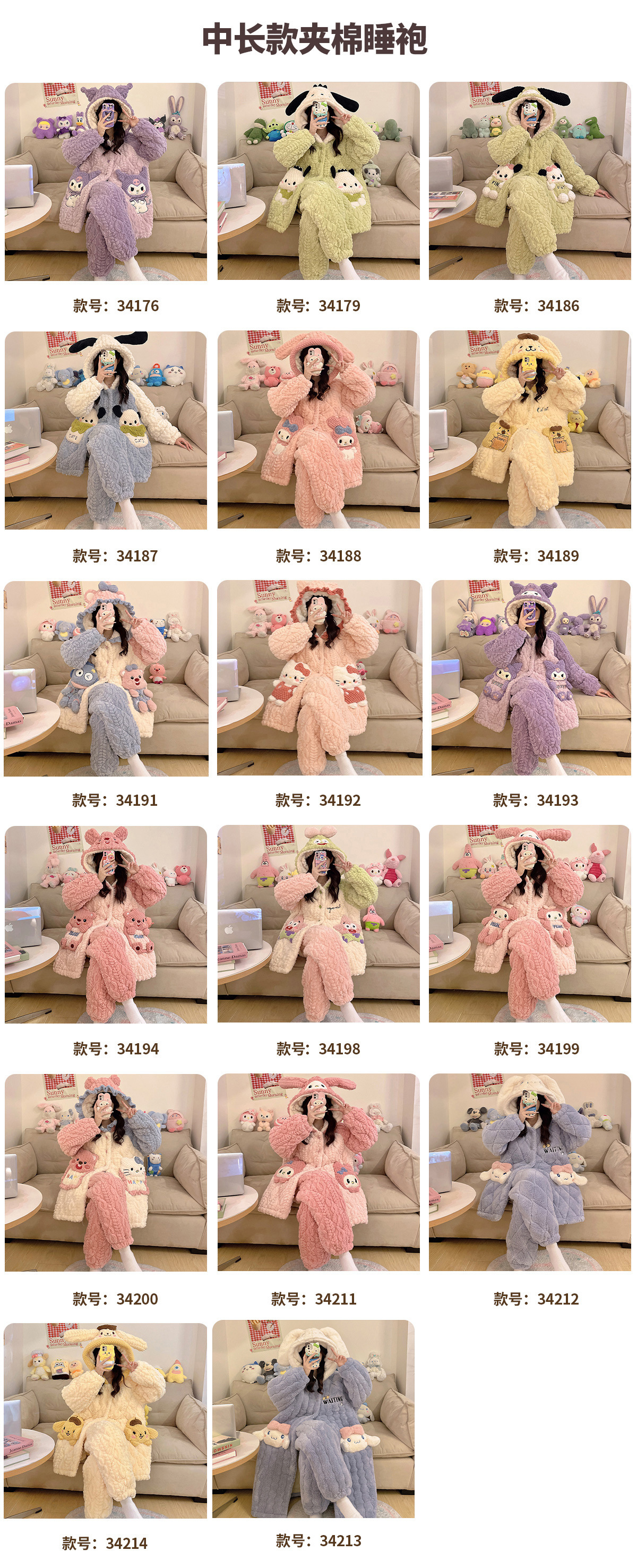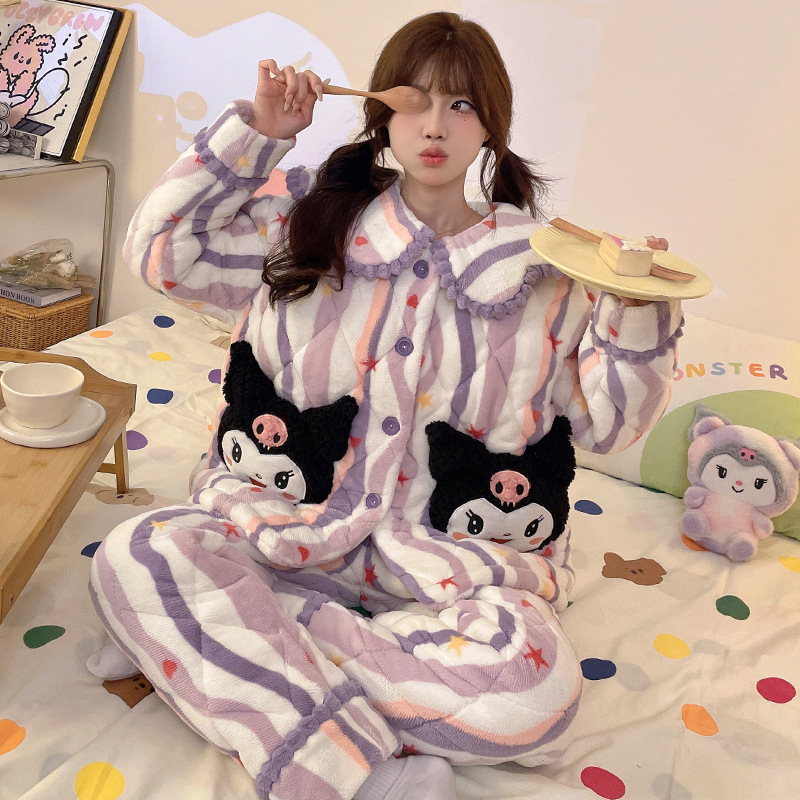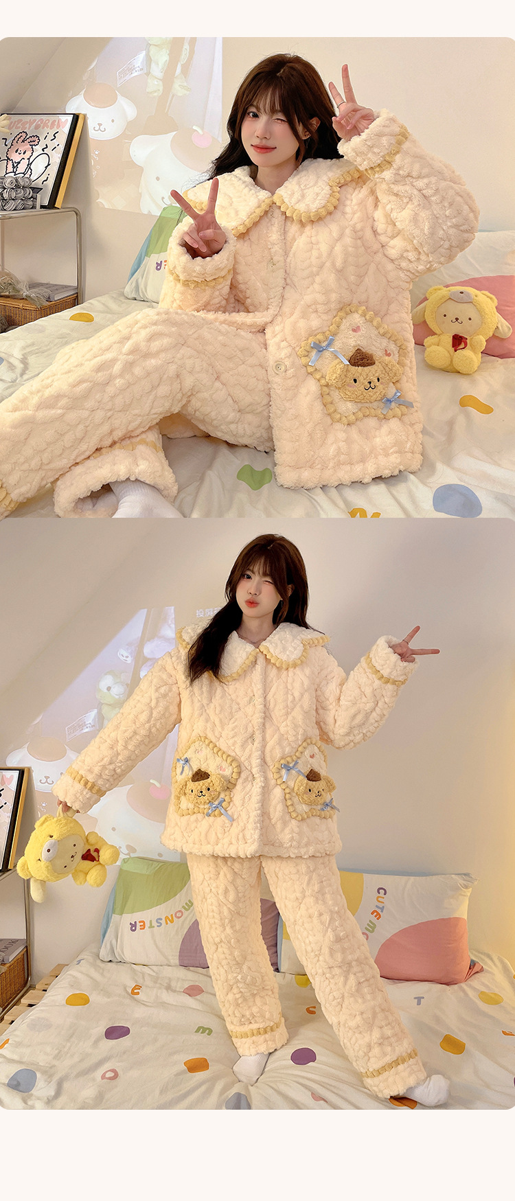산호 양털 퀼트 3 층 두꺼운 잠옷 여자의 겨울 지퍼 후드 새로운 스타일 가정 옷 플란넬 기모 따뜻한스토어 가기