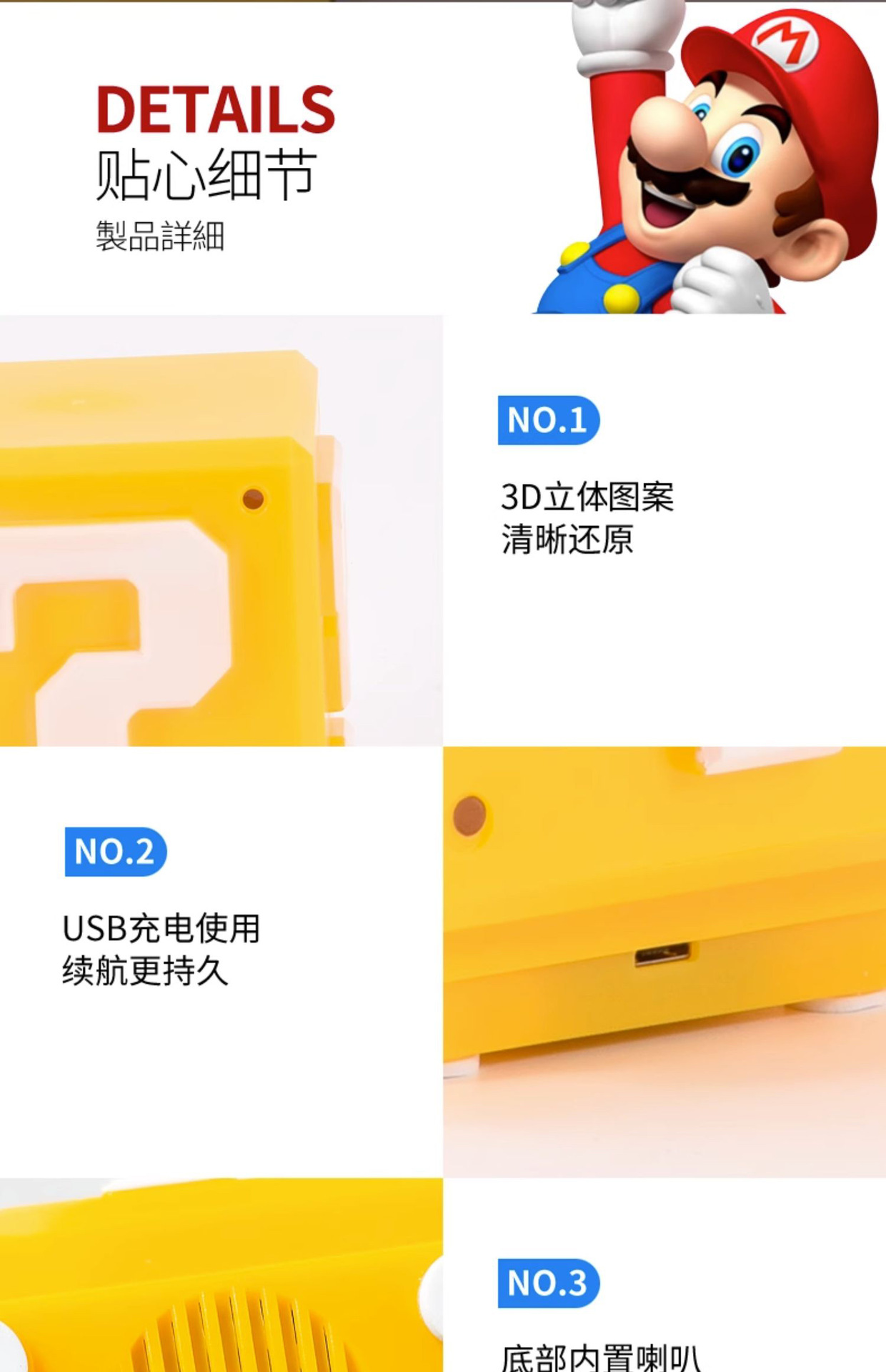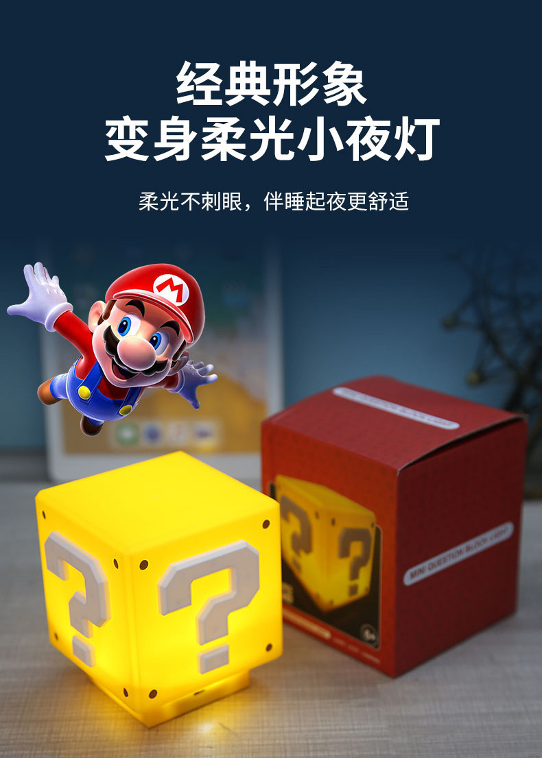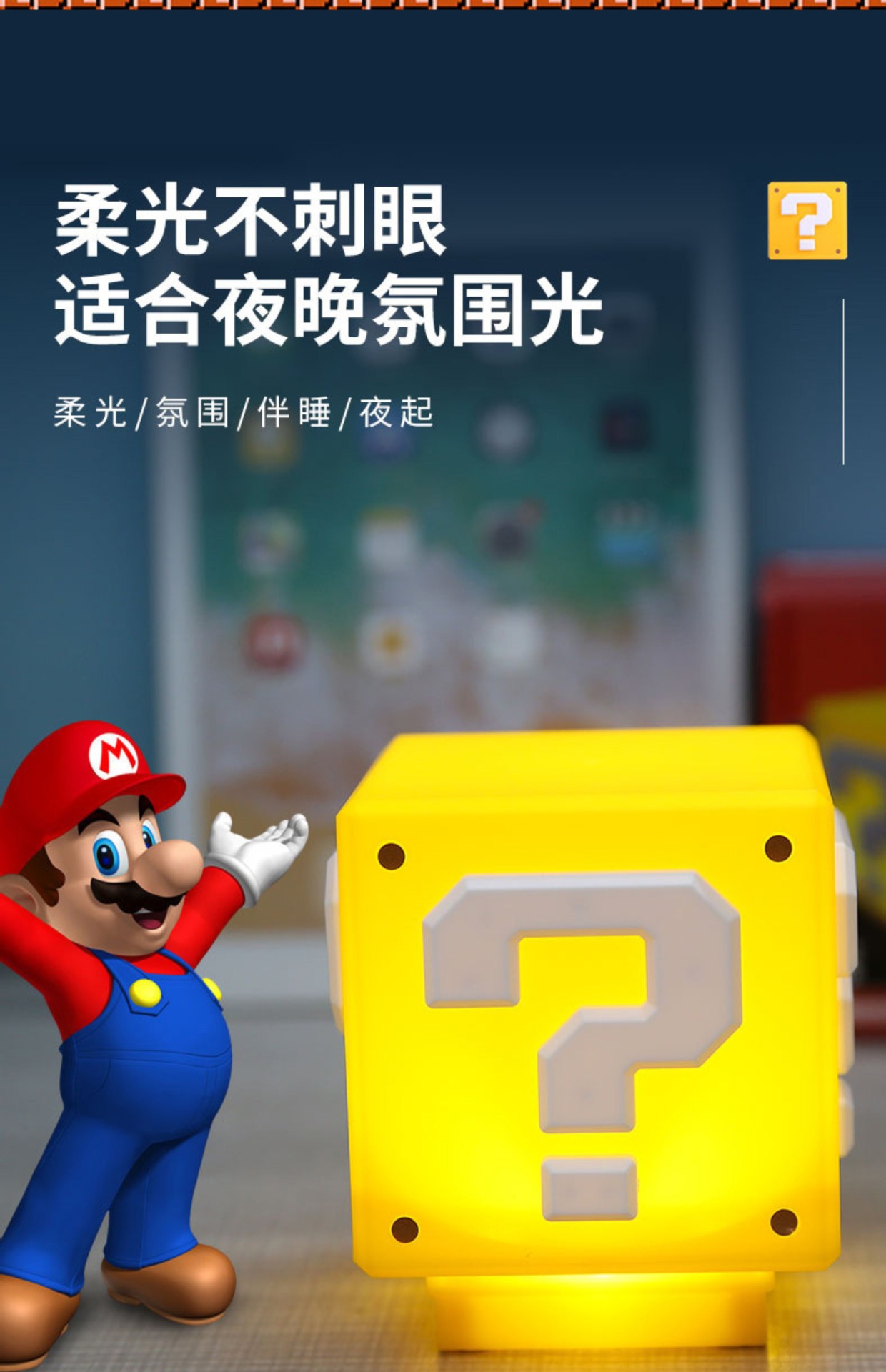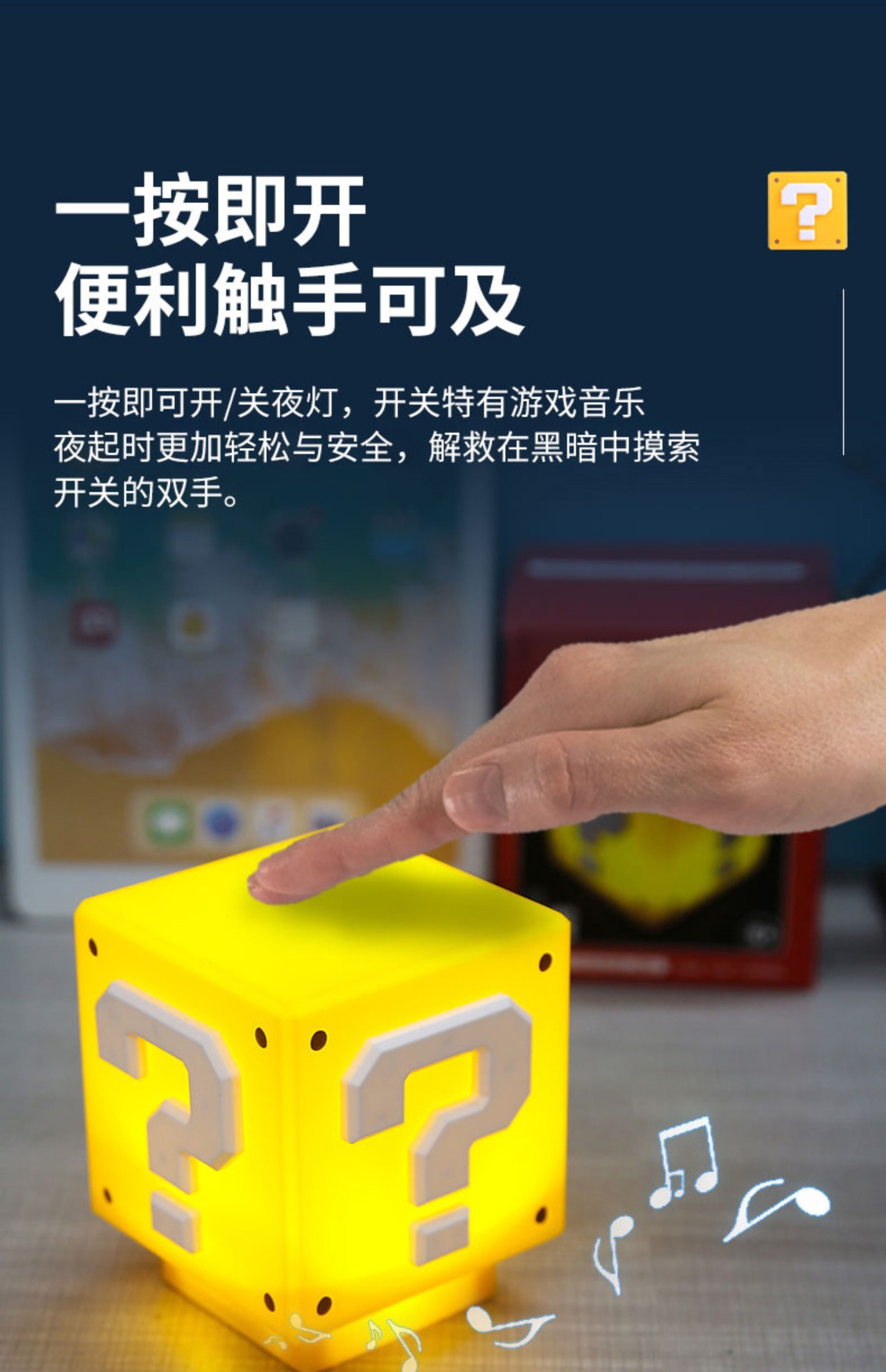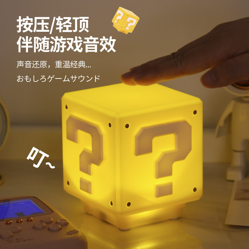 마리오 LED 물음표 소리나는 충전식 야간 조명 블록 데스크탑 USB 센서 해외 인기 무소음 스마트