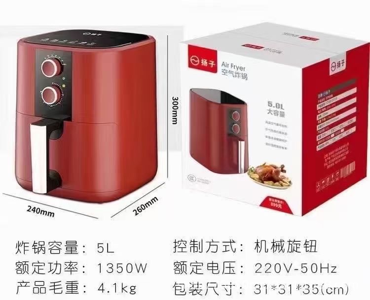 도매 양지 5L 공기 프라이어 전기 오븐 전기 프라이어 토스터 5 리터 대용량 중국 빨간 프라이어