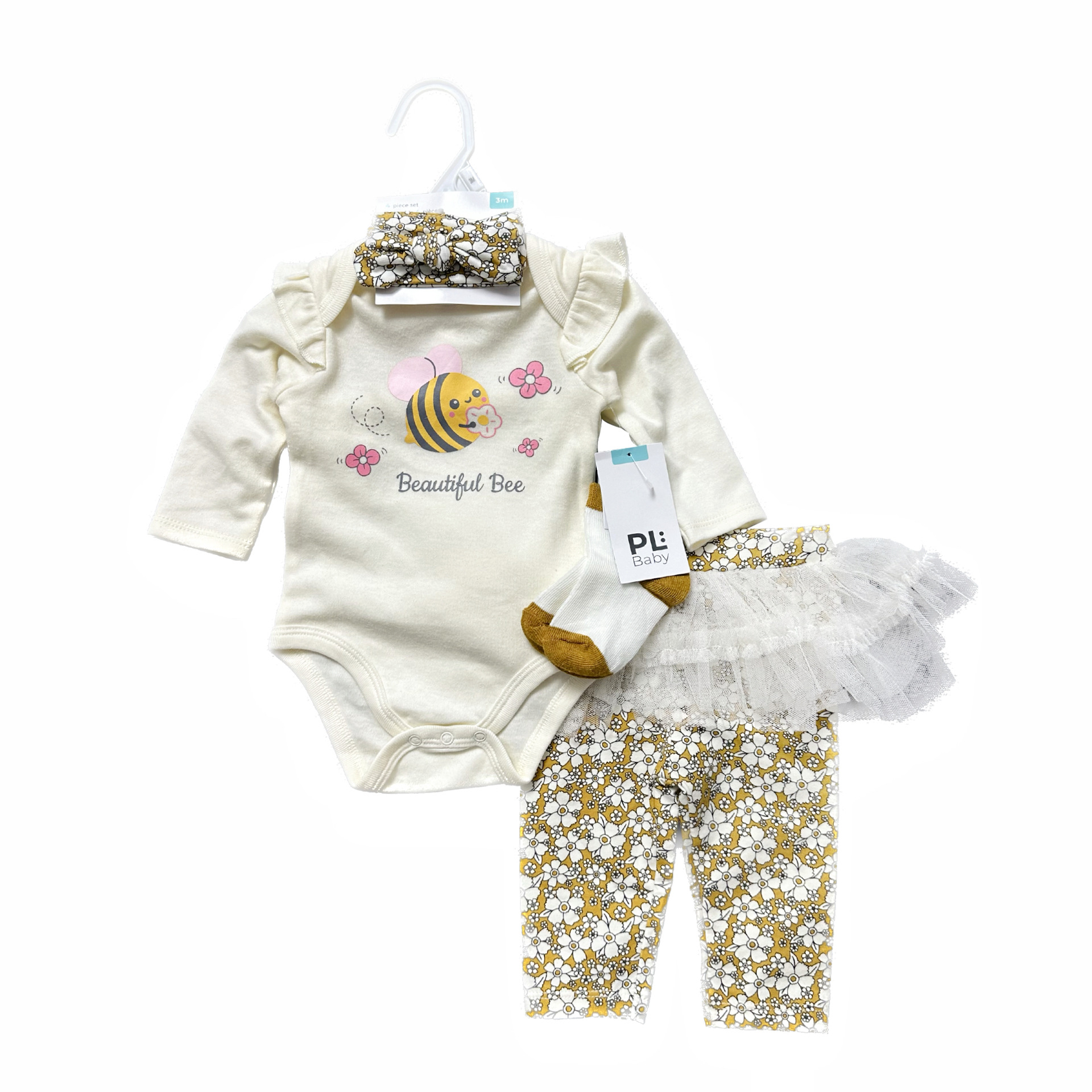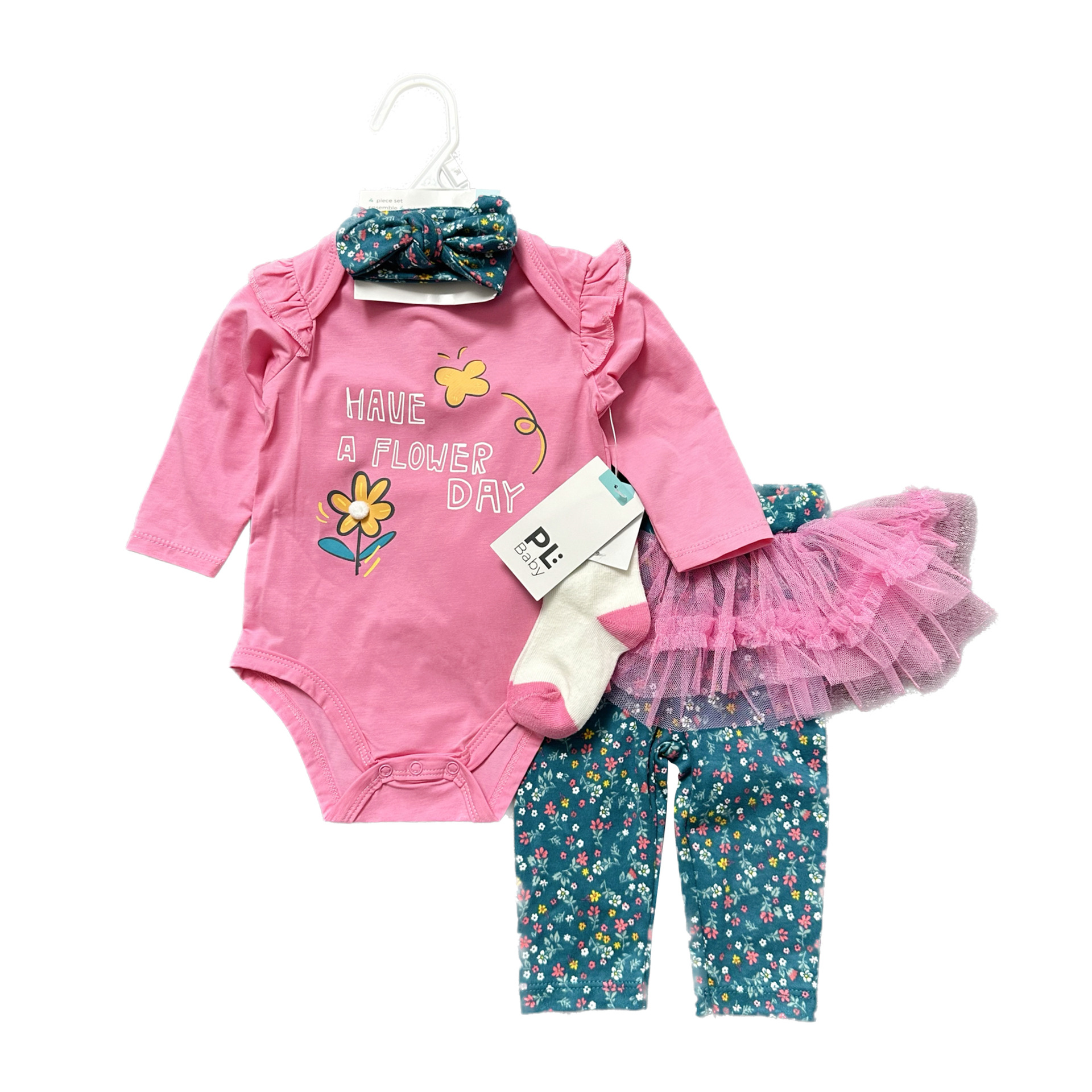 4件套,包屁衣、纱裙长裤、发带、袜子