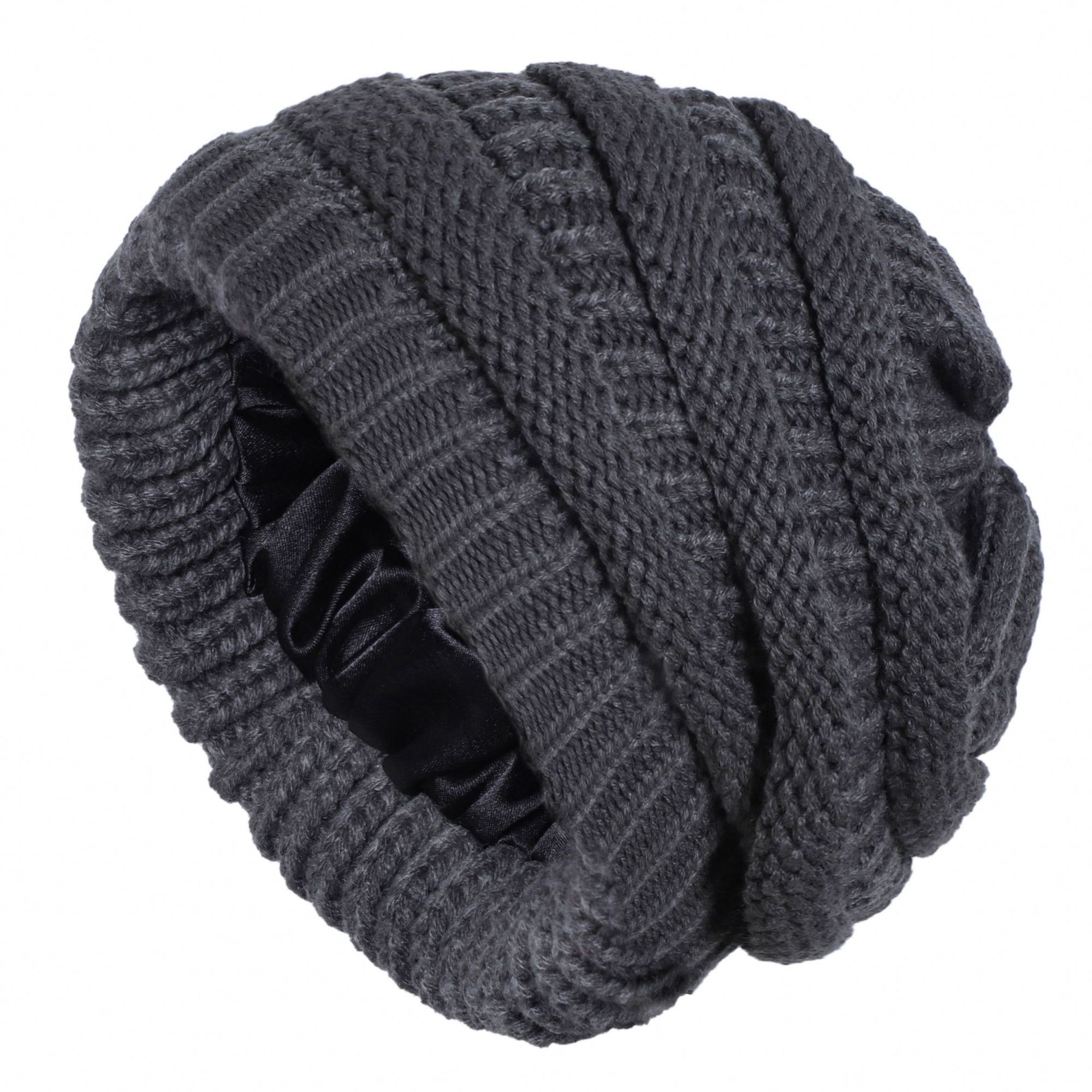 아마존 유럽과 미국 대외 무역 따뜻한 방풍 마이크로 탄성 새틴 안감 니트 모자스토어 가기