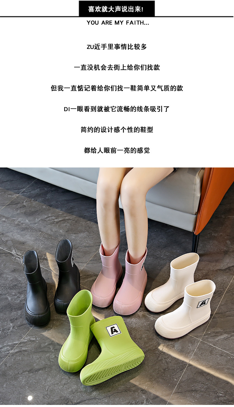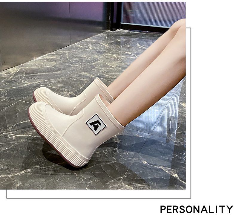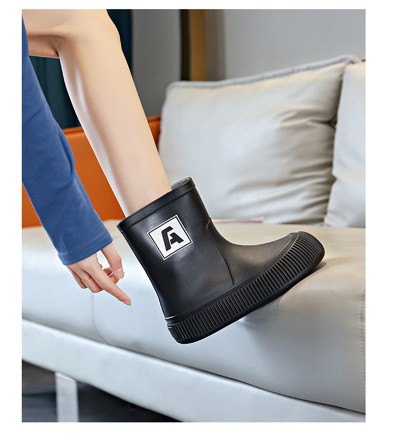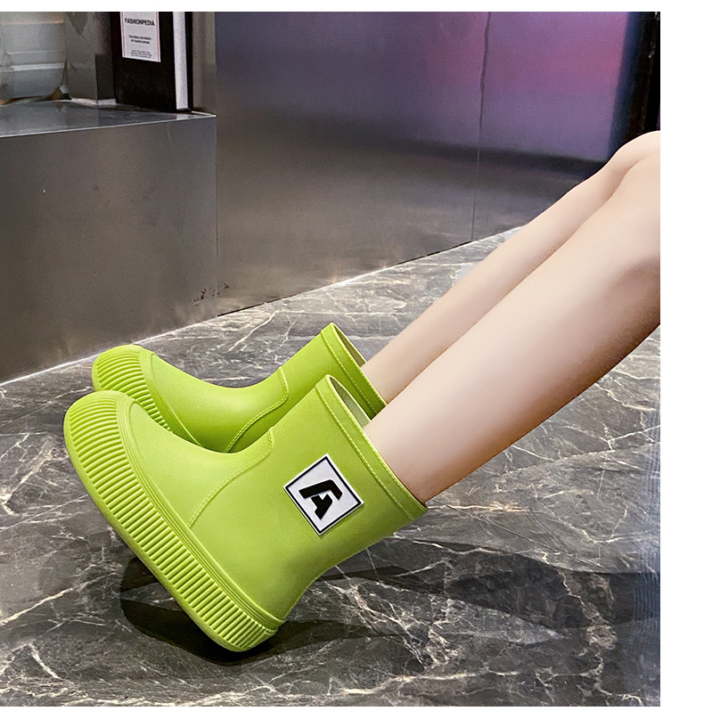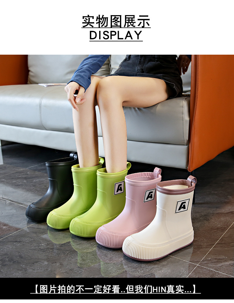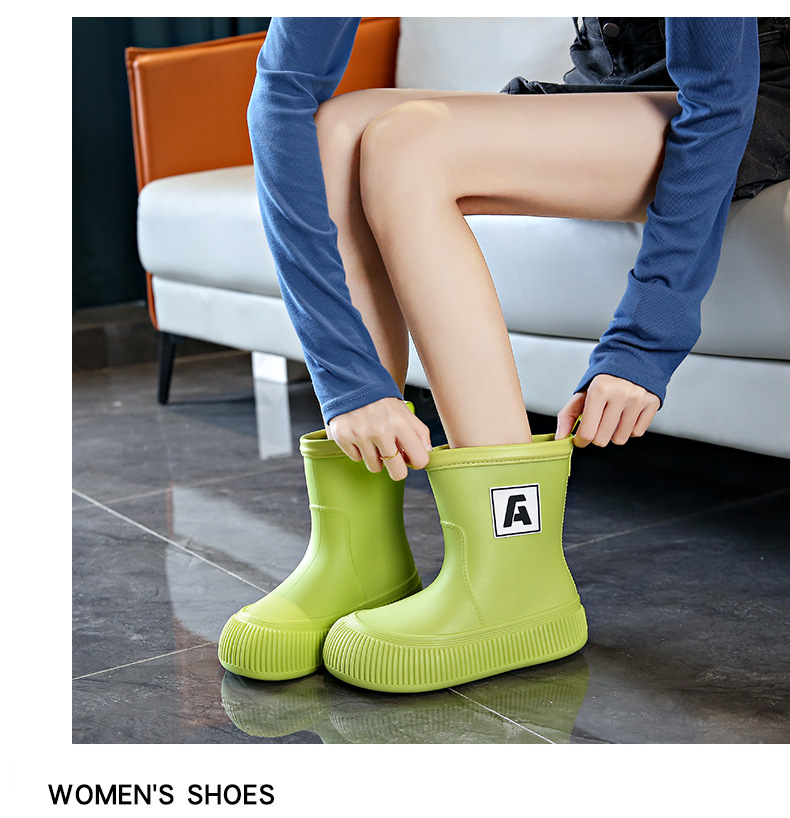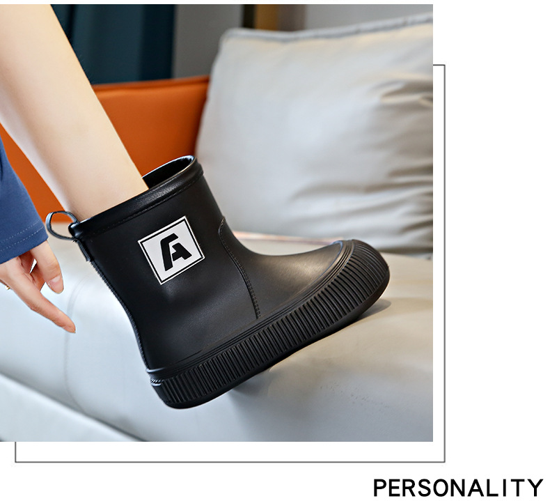 크로스 보더 패션 레인 부츠 여성용 아우터 미디엄 및 짧은 레인 부츠 성인 미끄럼 방지 내마모성 고무 신발 주방 작업 방수 신발스토어 가기