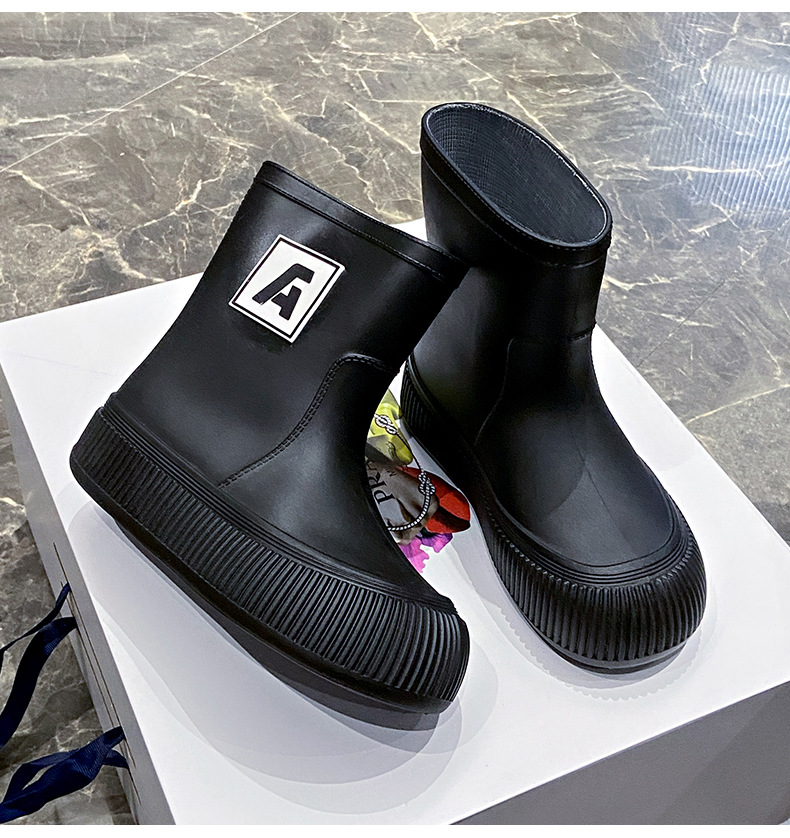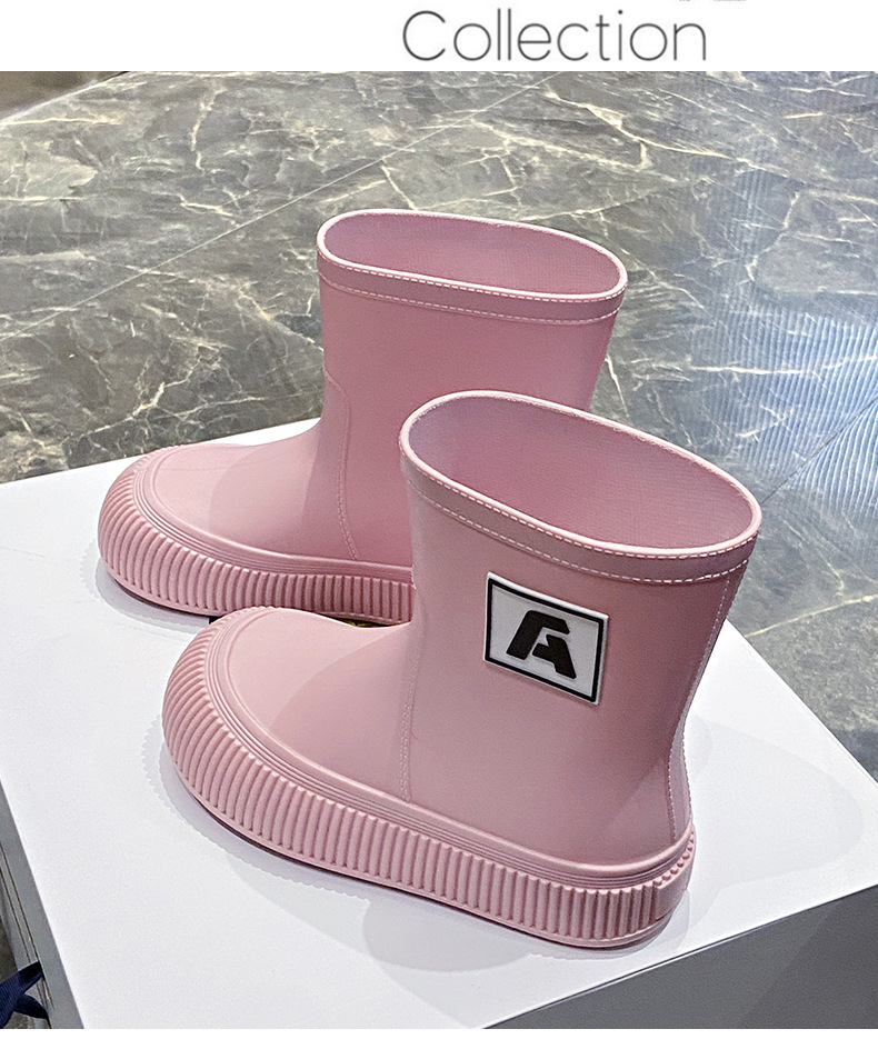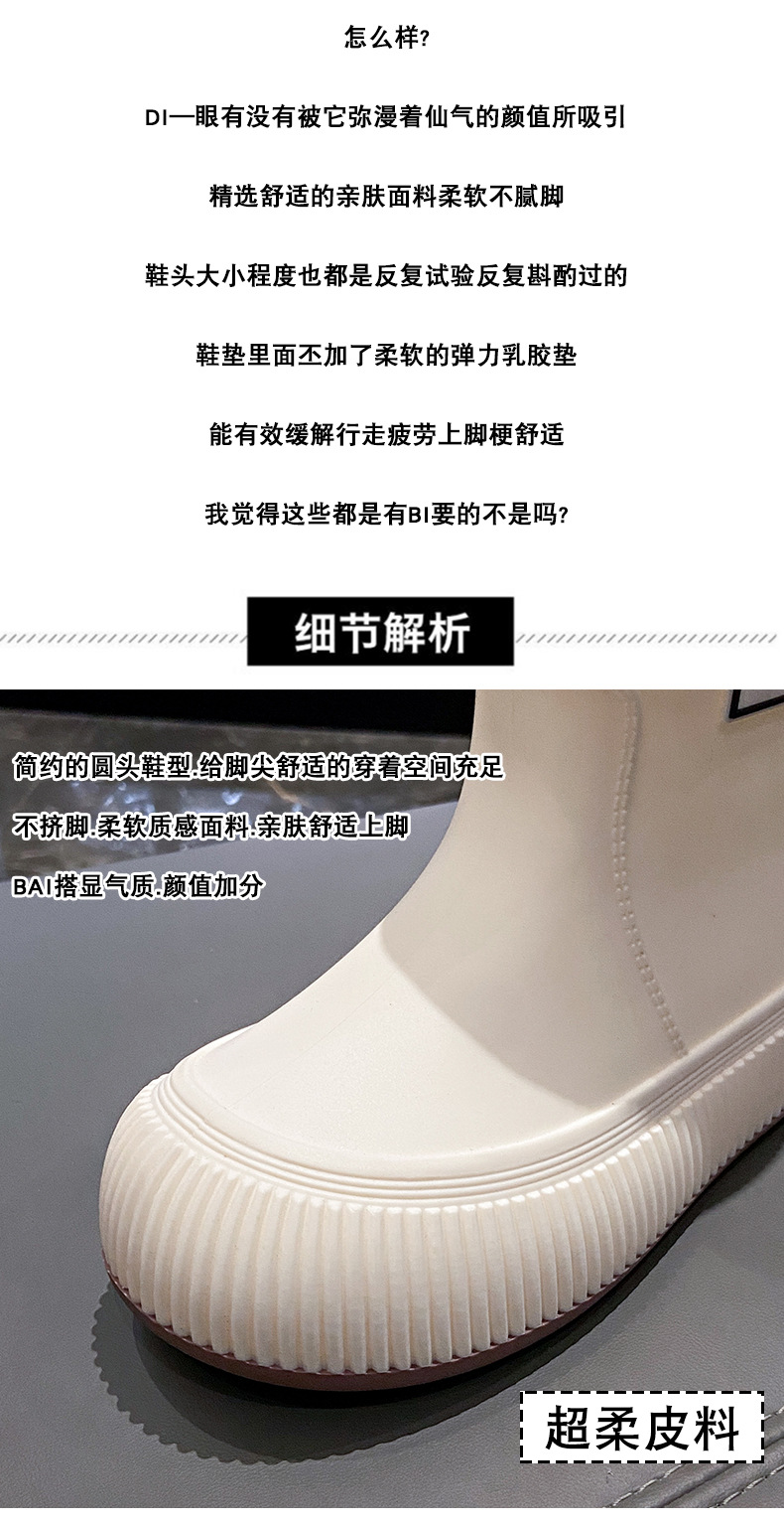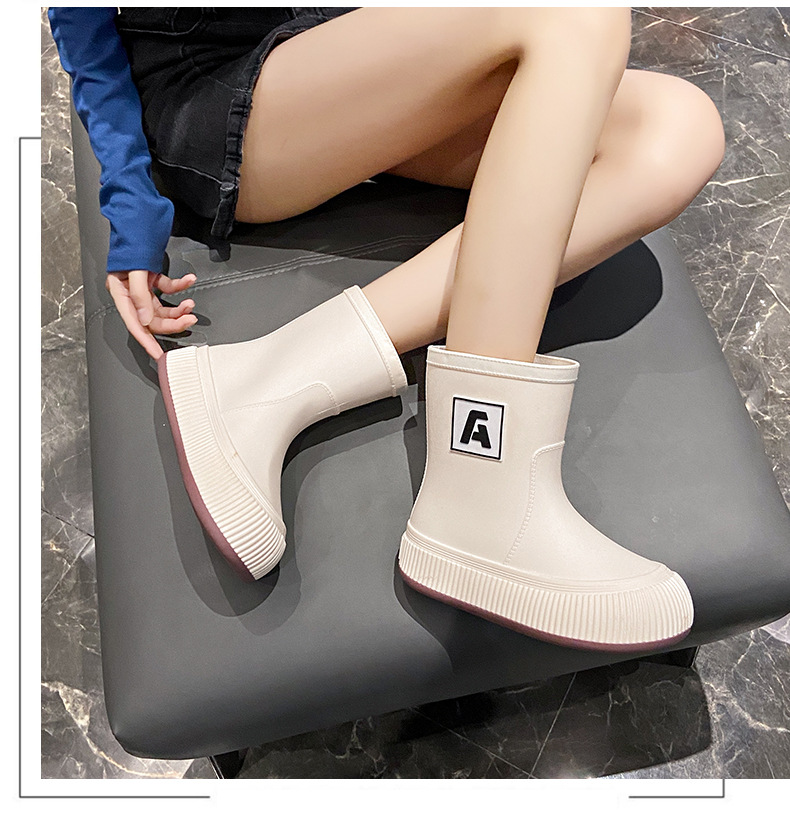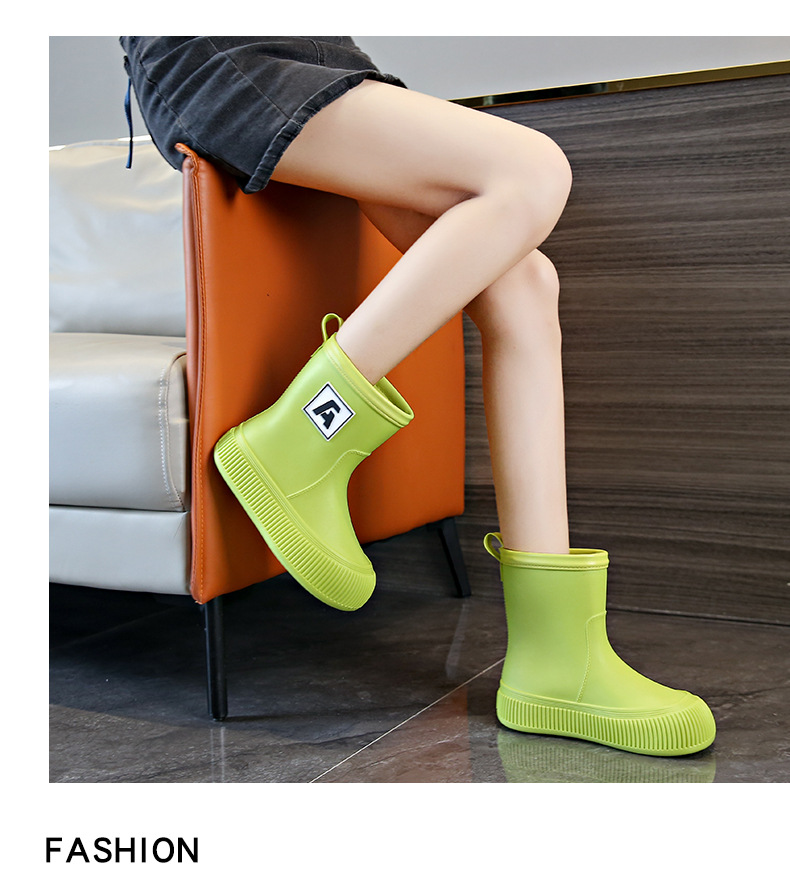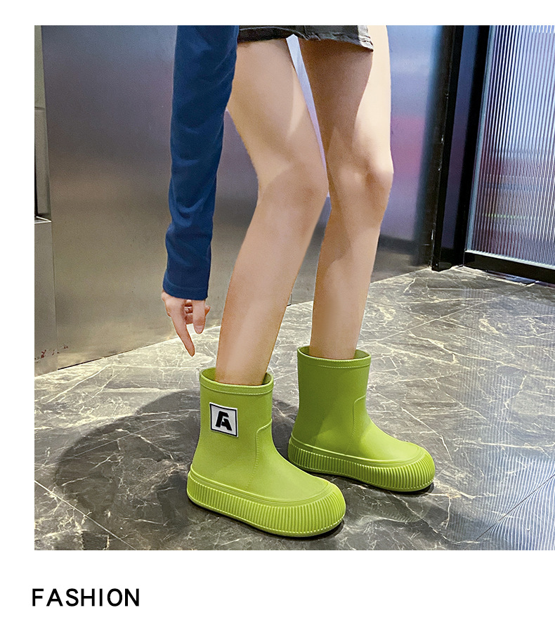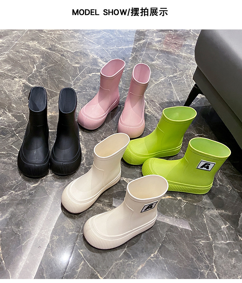 크로스 보더 패션 레인 부츠 여성용 아우터 미디엄 및 짧은 레인 부츠 성인 미끄럼 방지 내마모성 고무 신발 주방 작업 방수 신발스토어 가기