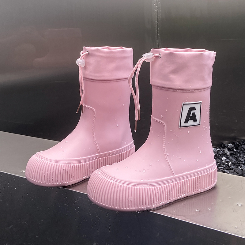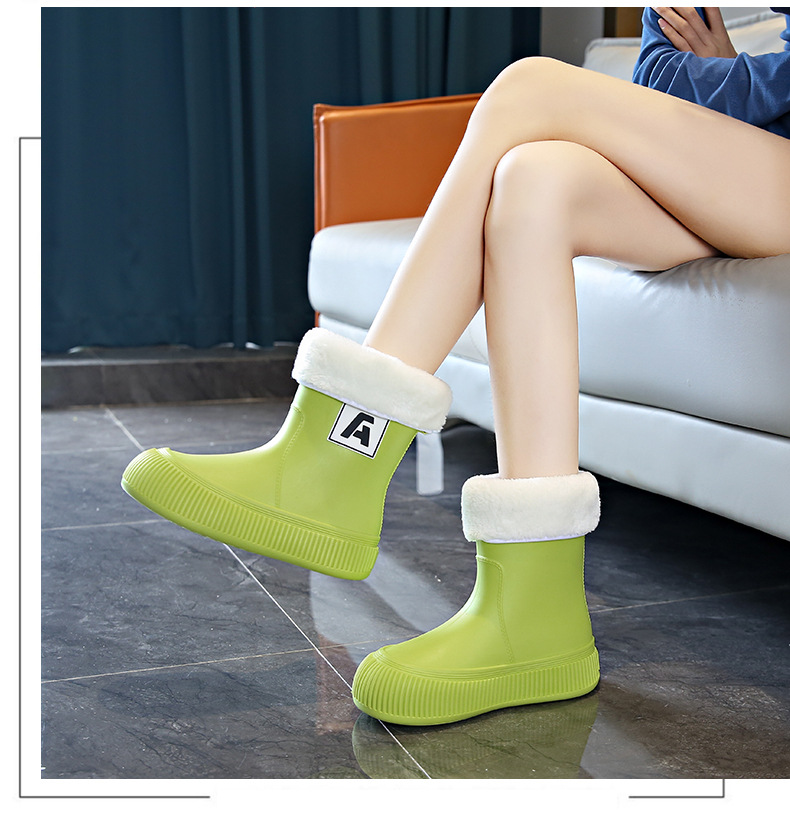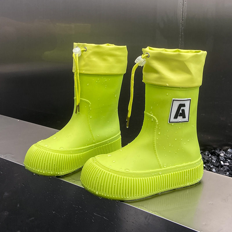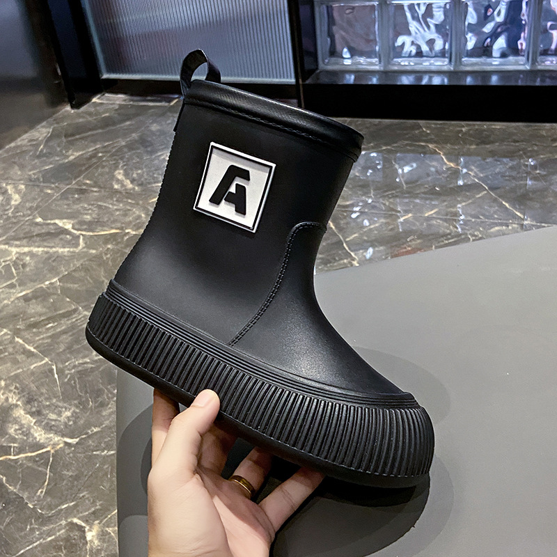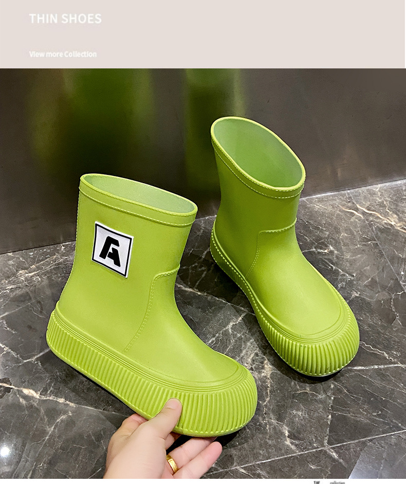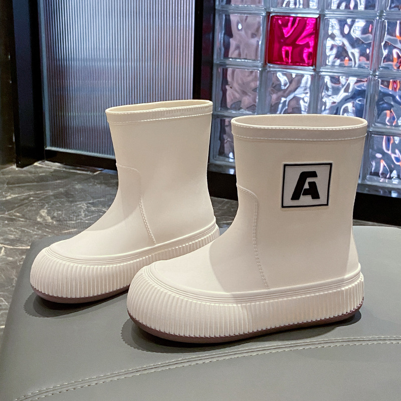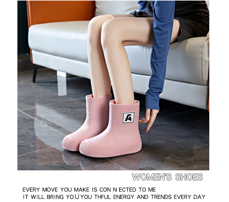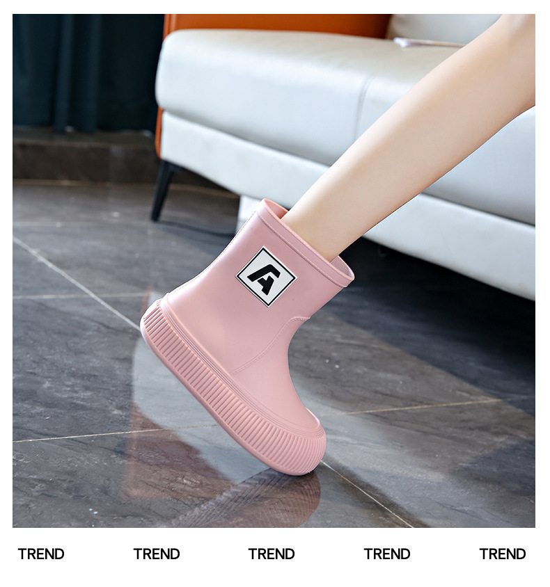 크로스 보더 패션 레인 부츠 여성용 아우터 미디엄 및 짧은 레인 부츠 성인 미끄럼 방지 내마모성 고무 신발 주방 작업 방수 신발스토어 가기