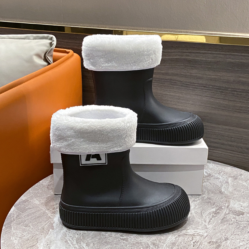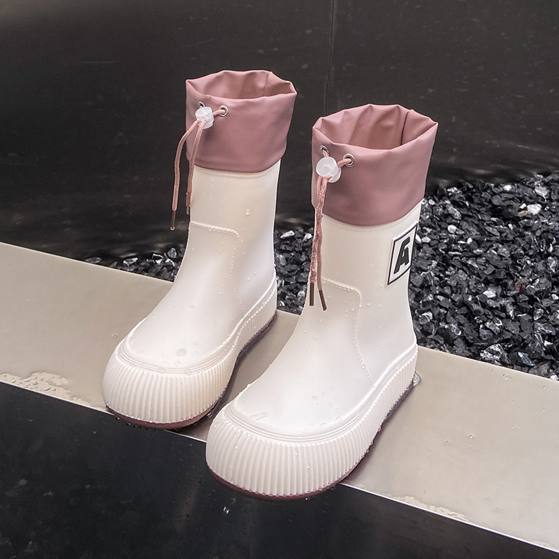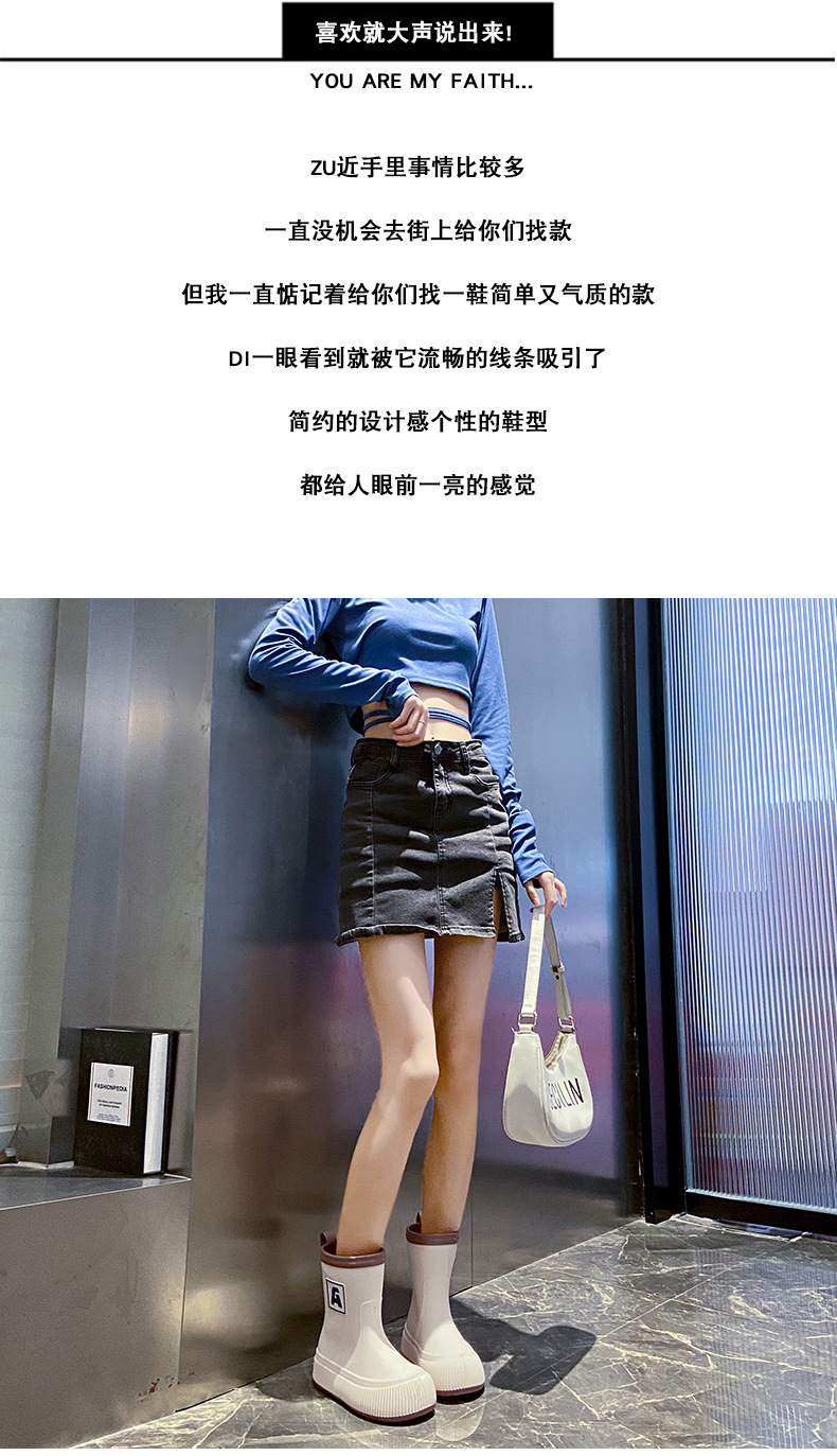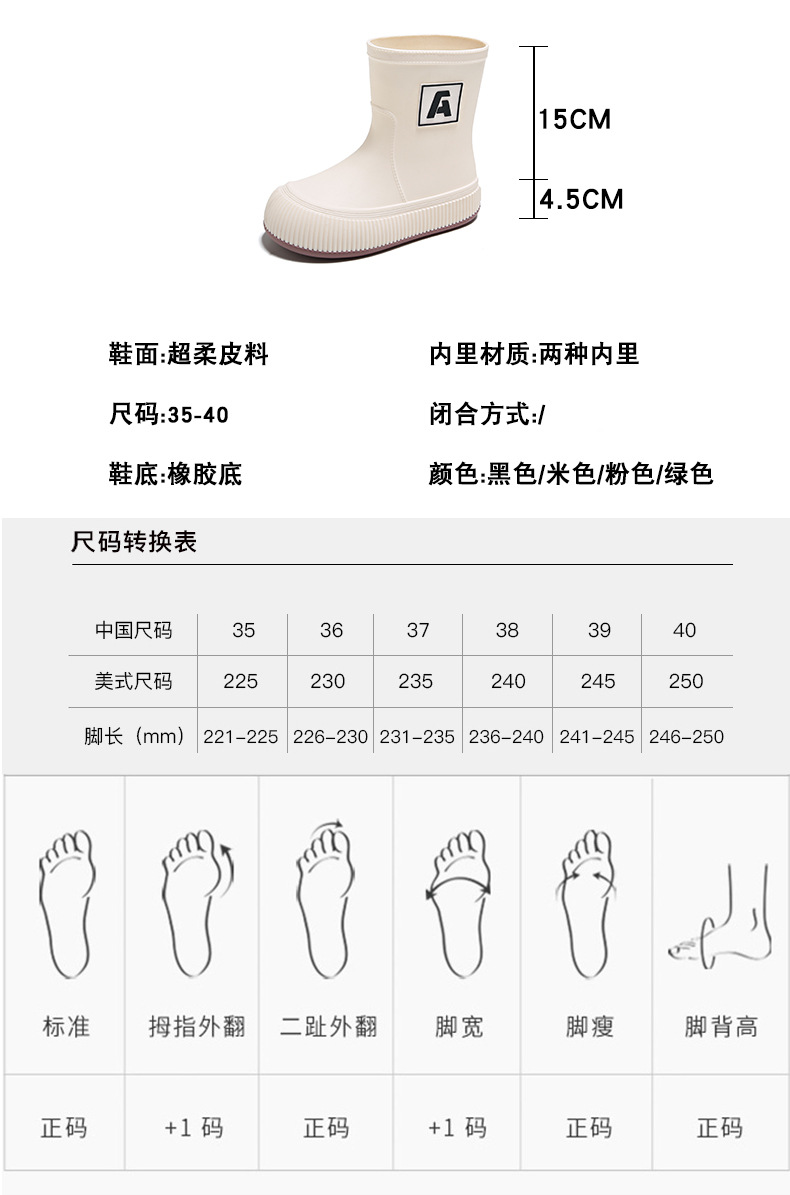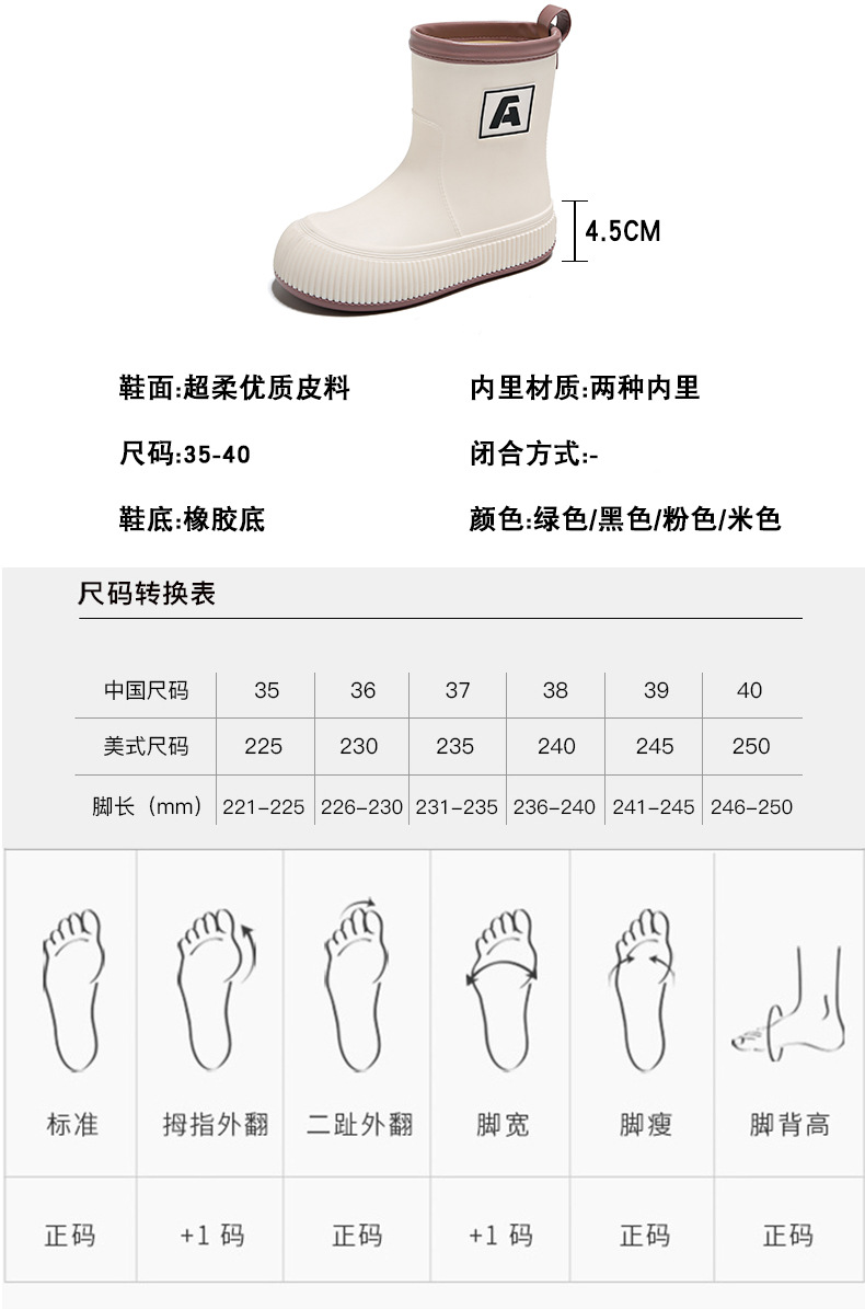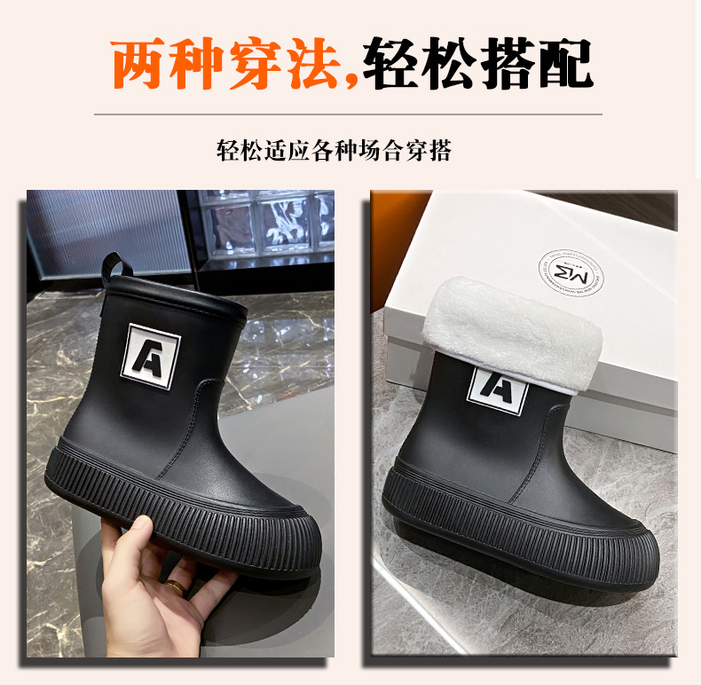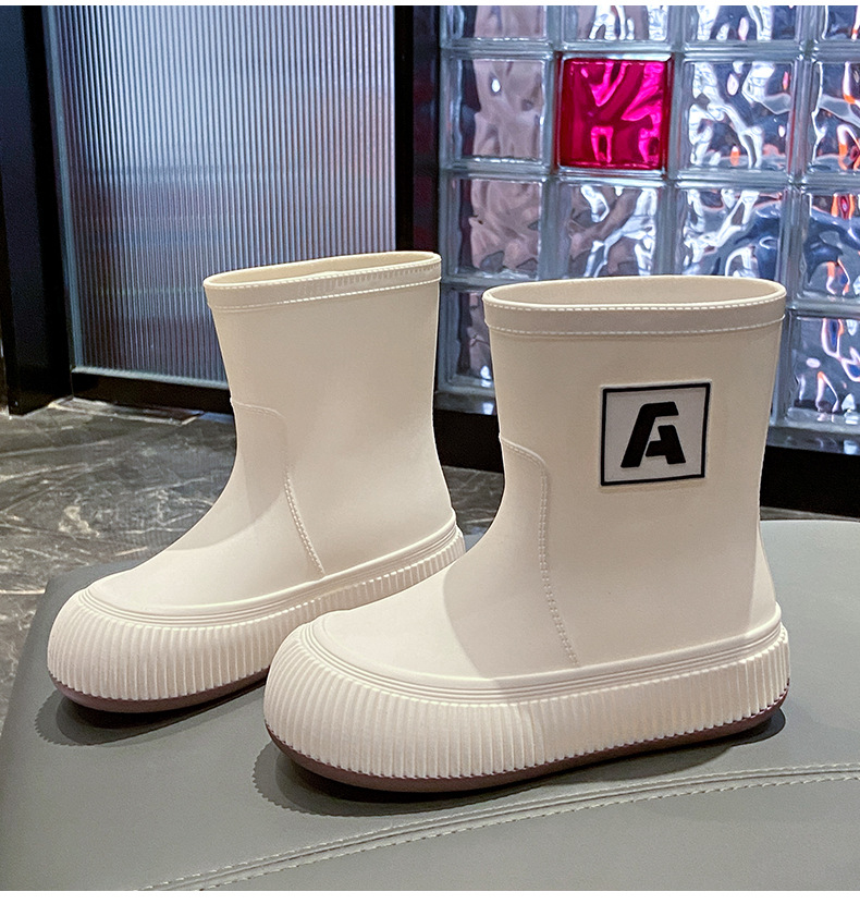 크로스 보더 패션 레인 부츠 여성용 아우터 미디엄 및 짧은 레인 부츠 성인 미끄럼 방지 내마모성 고무 신발 주방 작업 방수 신발스토어 가기