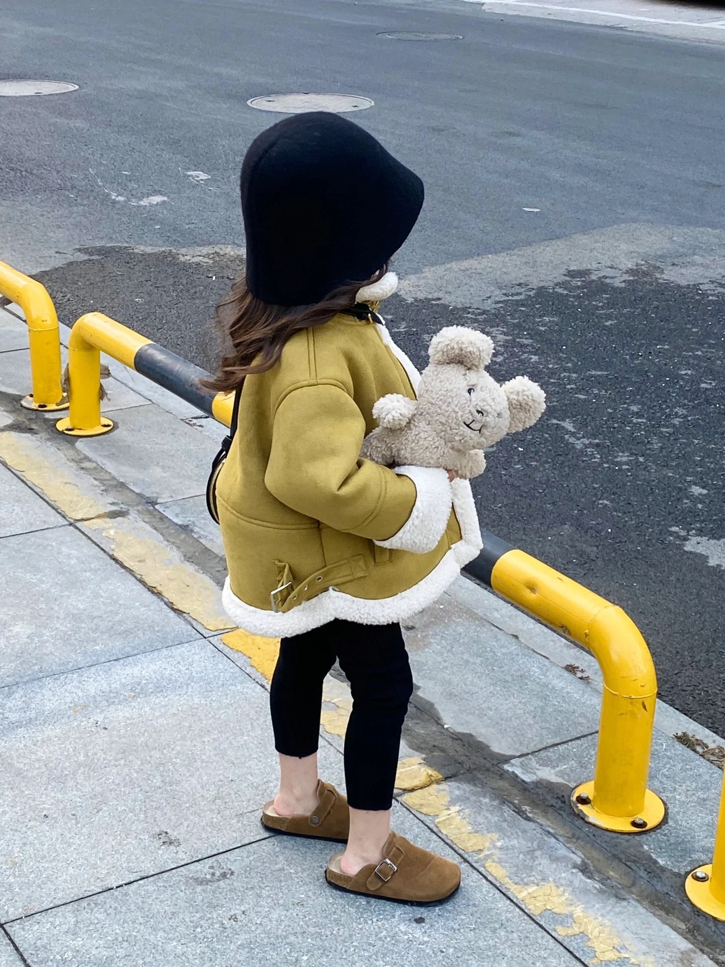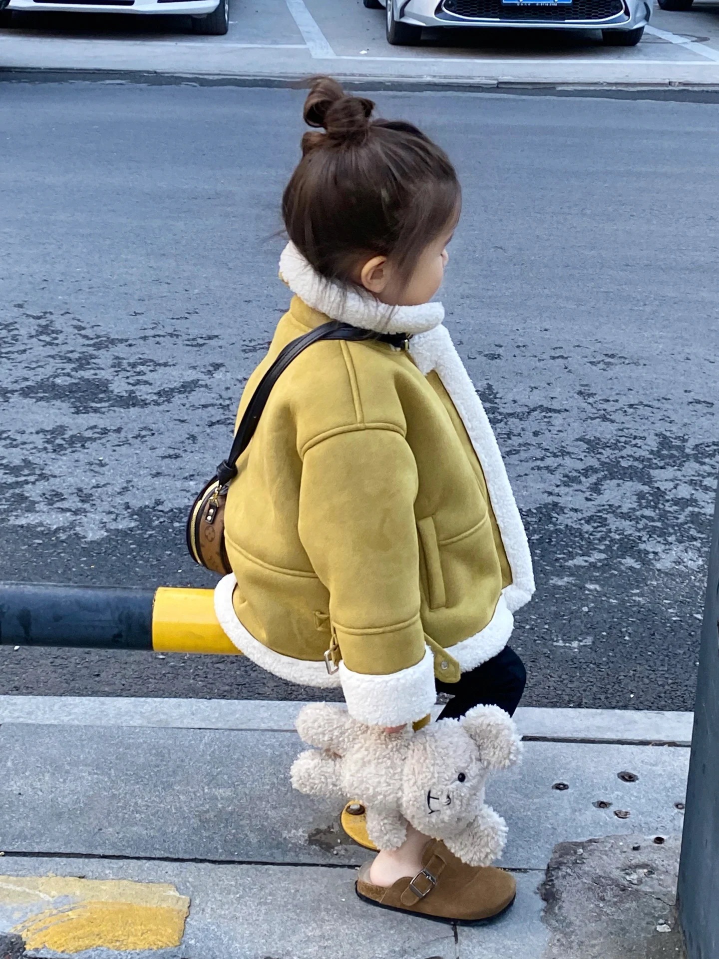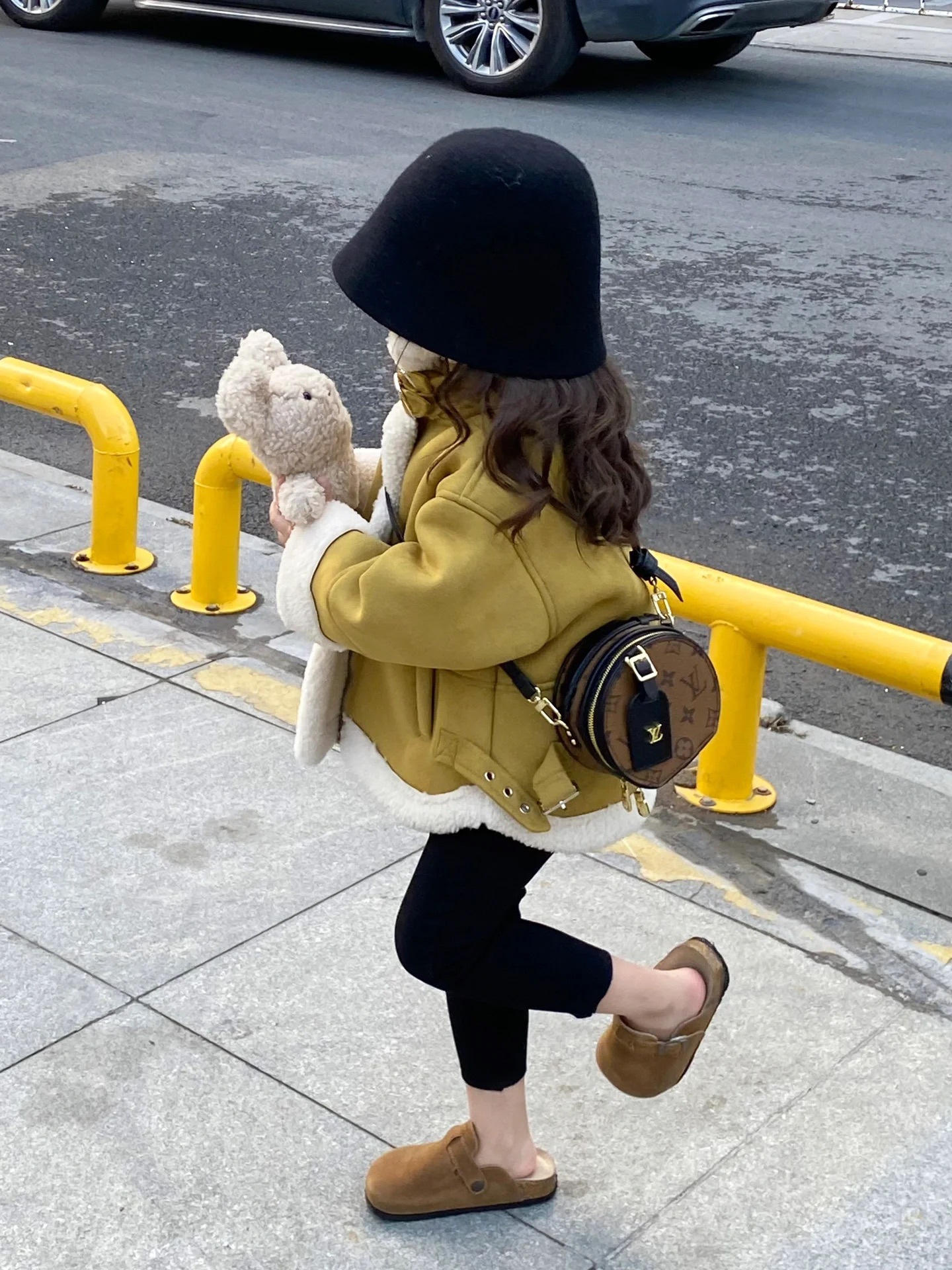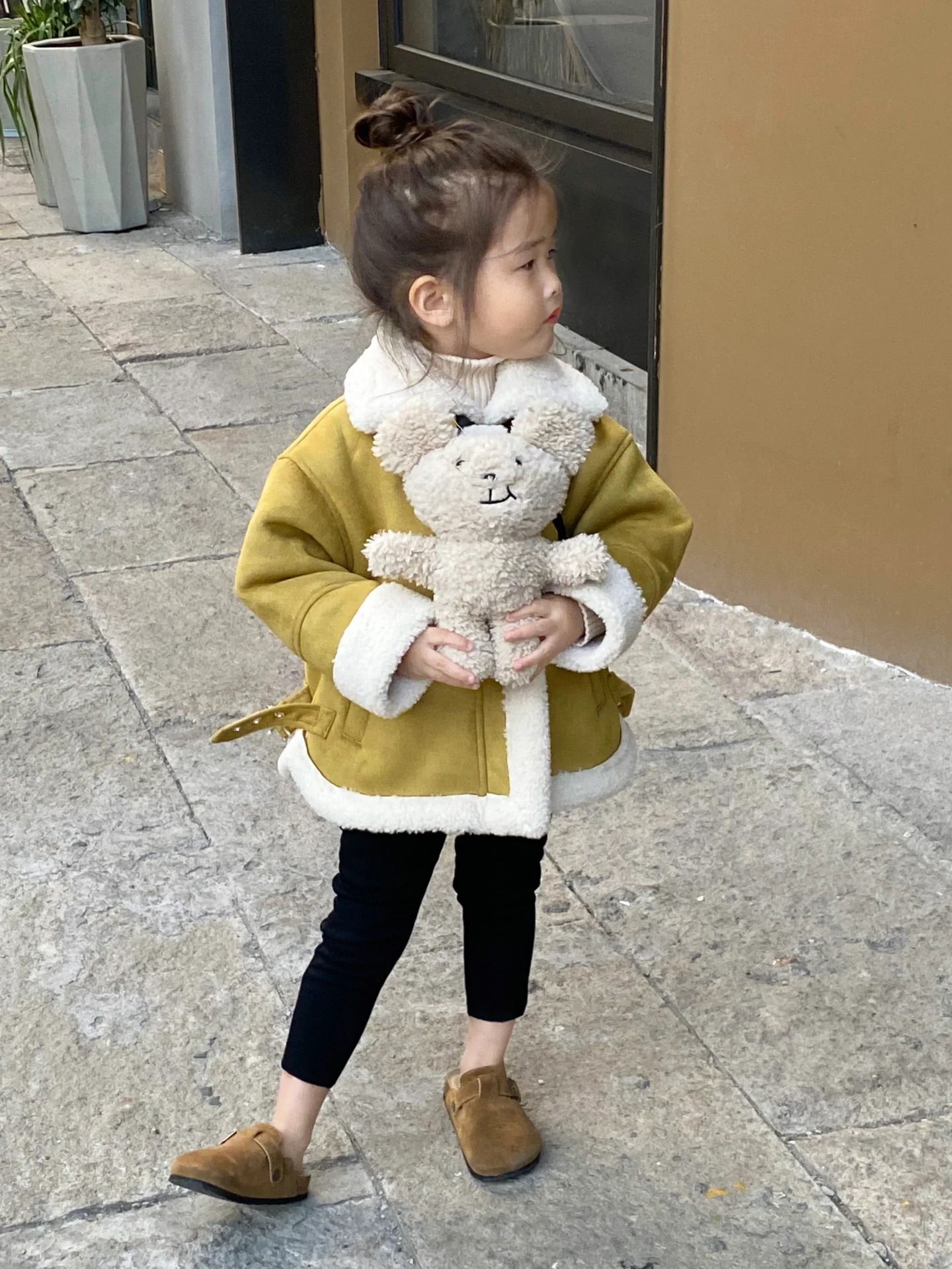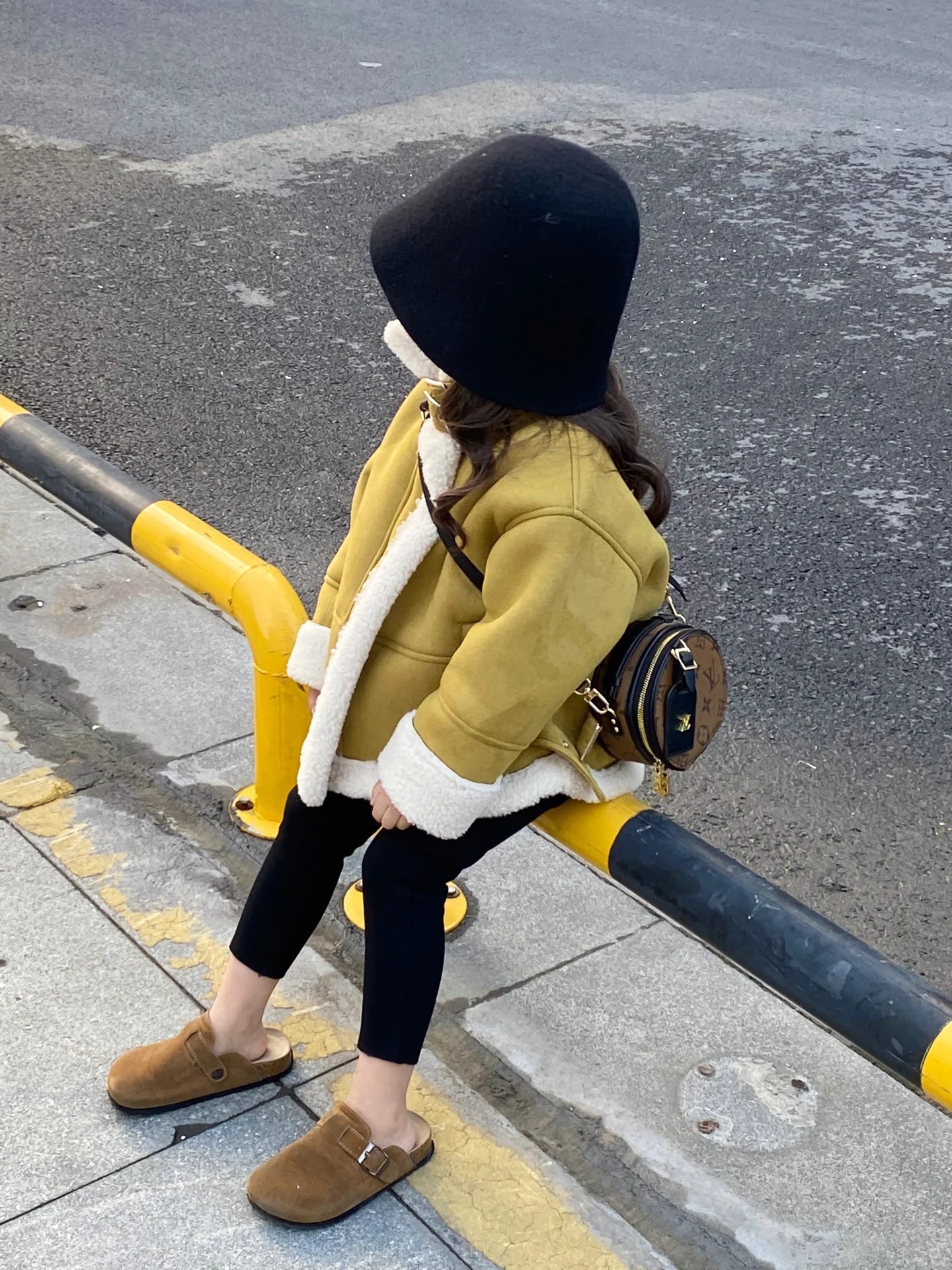 여자 겨울 달콤한 멋진 한국어 버전 기모 작은 금 밀 합성 모피 한 자전거 재킷 코트 + 기모 레깅스스토어 가기