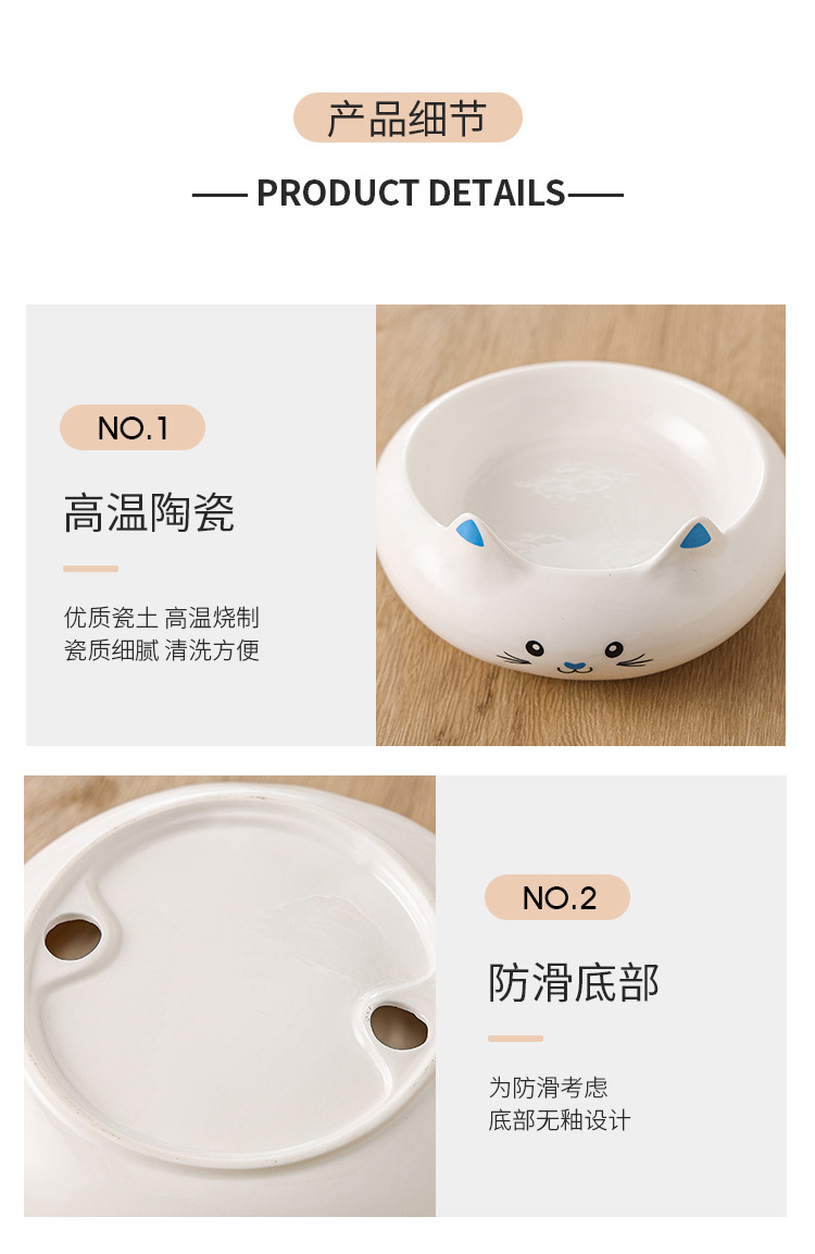 고양이 사발 세라믹 목 보호 높은 발 고양이 사료 사발 우유 윙링 더블 사발 물 사발 고양이 음료수 사발 개 사발 노크 방지