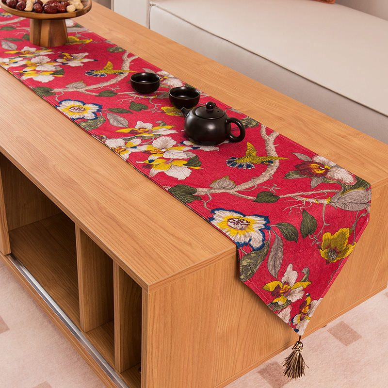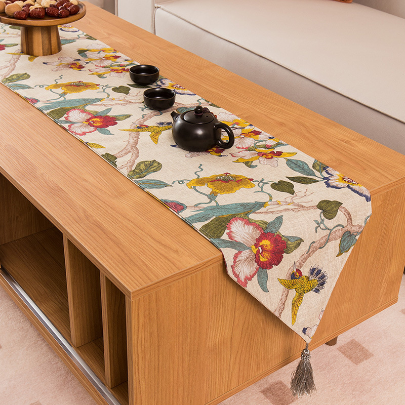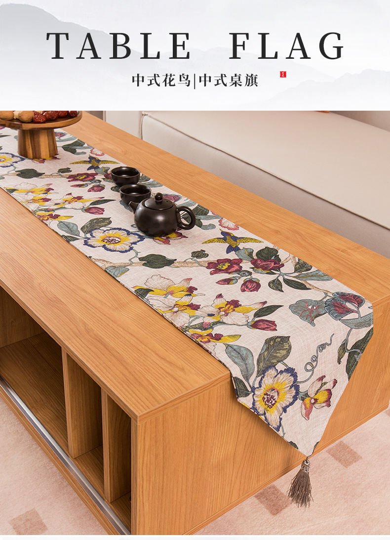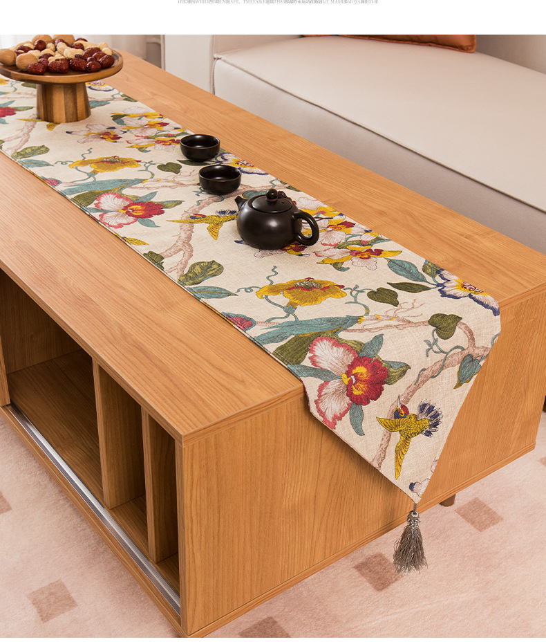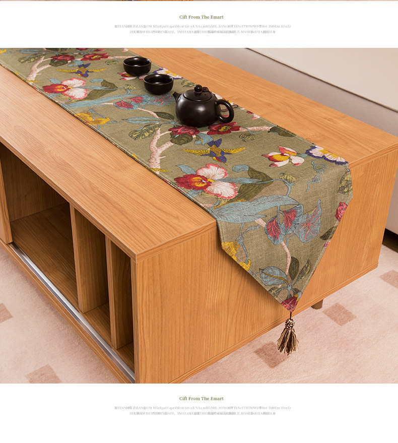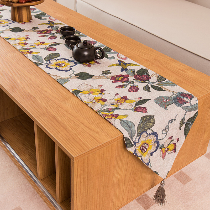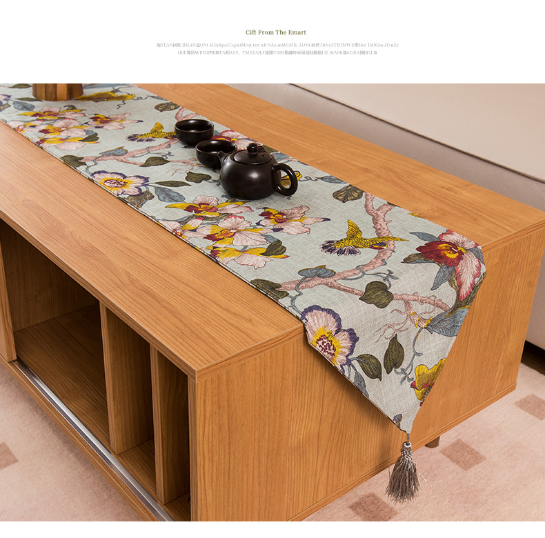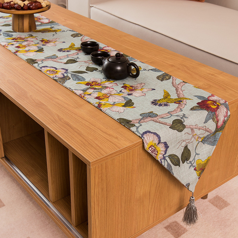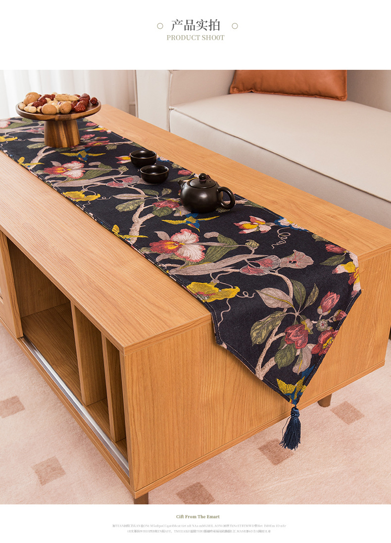 새로운 중국 스타일 커피 테이블 식탁보 면 린넨 꽃 새 젠 티 테이블 티 테이블 티 테이블 패드 천 TV 캐비닛 커버 타월 롱 테이블 러너