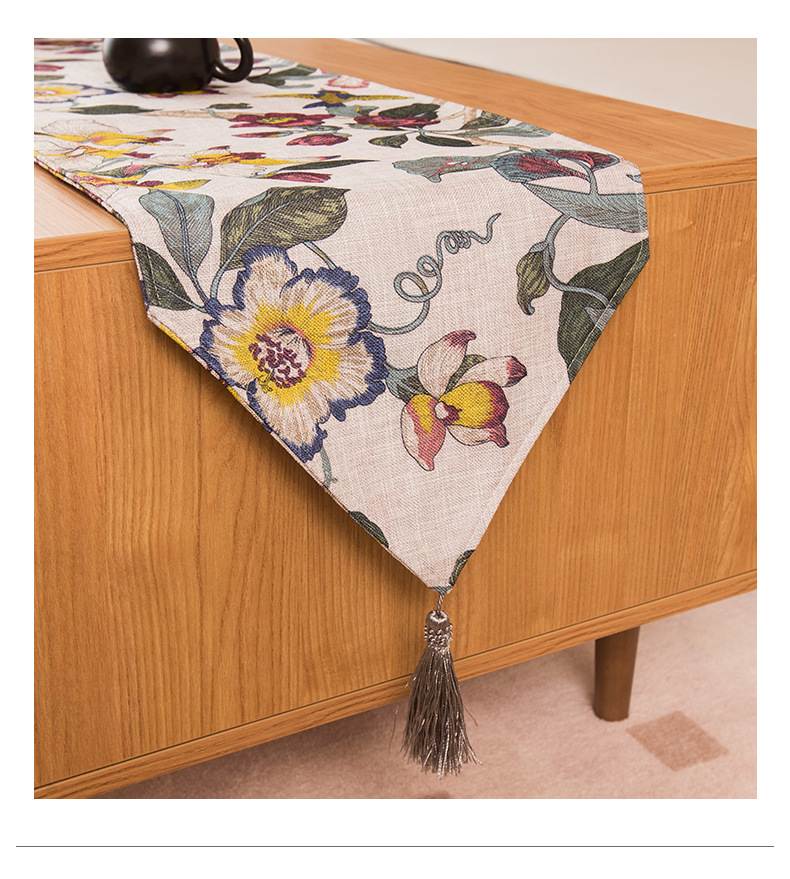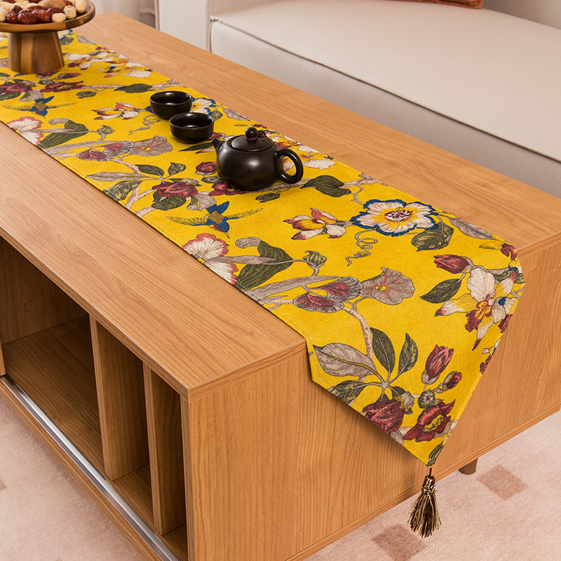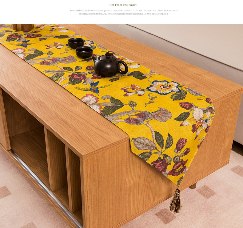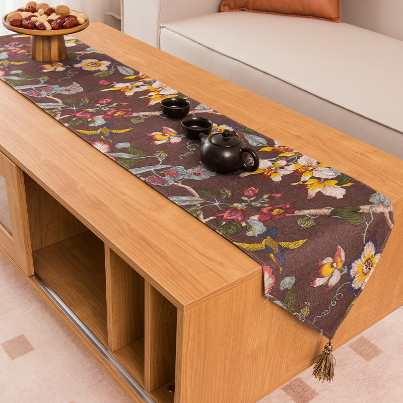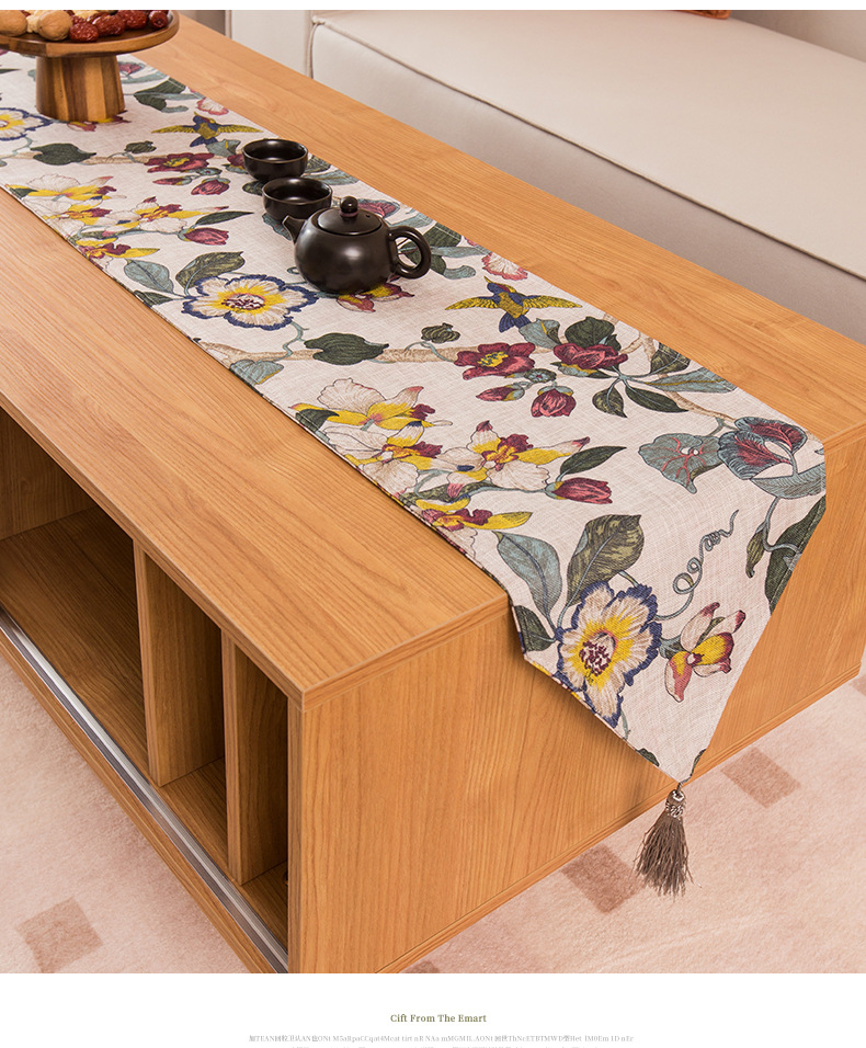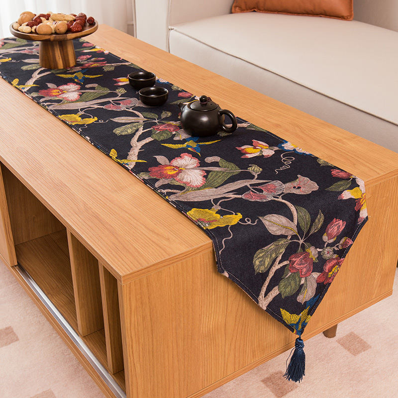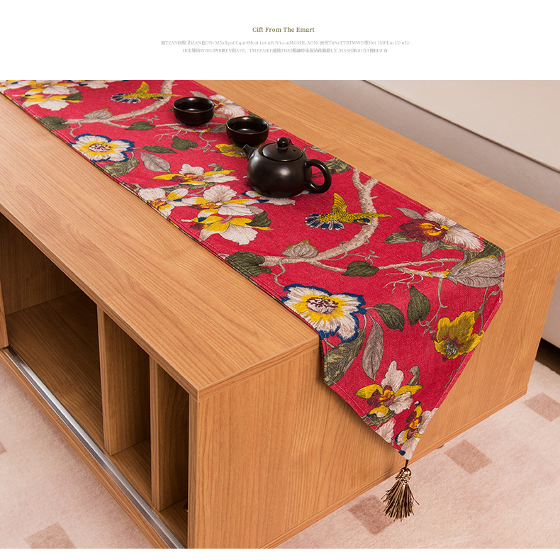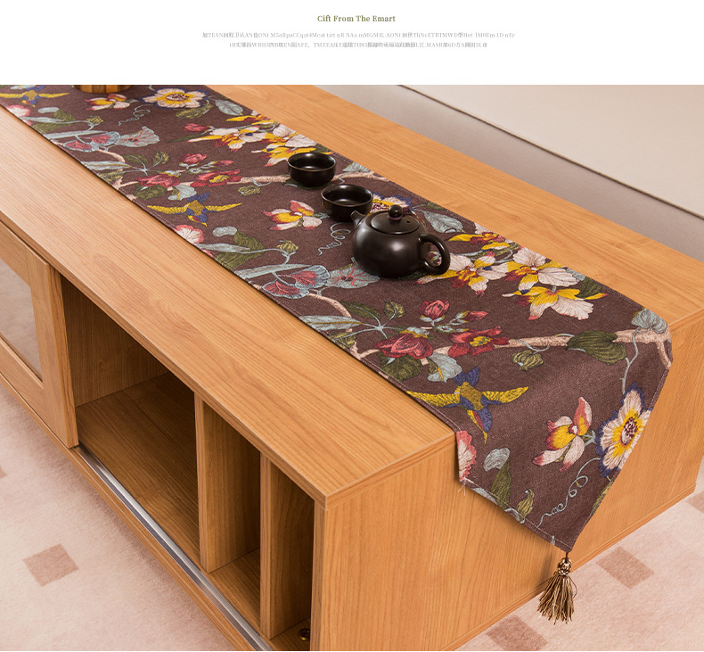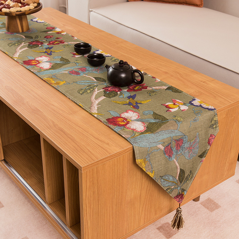 새로운 중국 스타일 커피 테이블 식탁보 면 린넨 꽃 새 젠 티 테이블 티 테이블 티 테이블 패드 천 TV 캐비닛 커버 타월 롱 테이블 러너