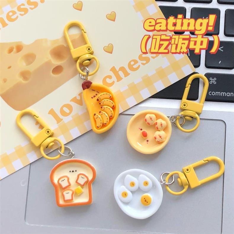 귀여운 아침 식사 접시 펜던트 재미 진짜 음식 놀이 열쇠 고리 소녀 하트 배낭 액세서리 커플 여자 친구 선물스토어 가기