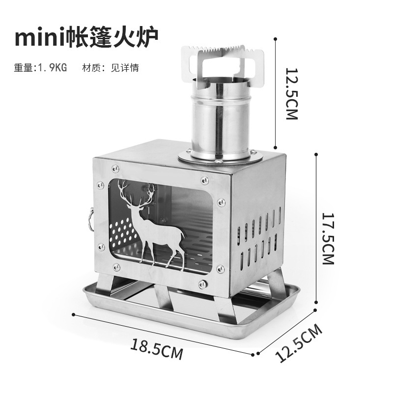 야외 유리 스토브 피크닉 캠핑 숯 나무 불타는 화재 스테인레스 스틸 휴대용 다기능 난방 텐트 오븐