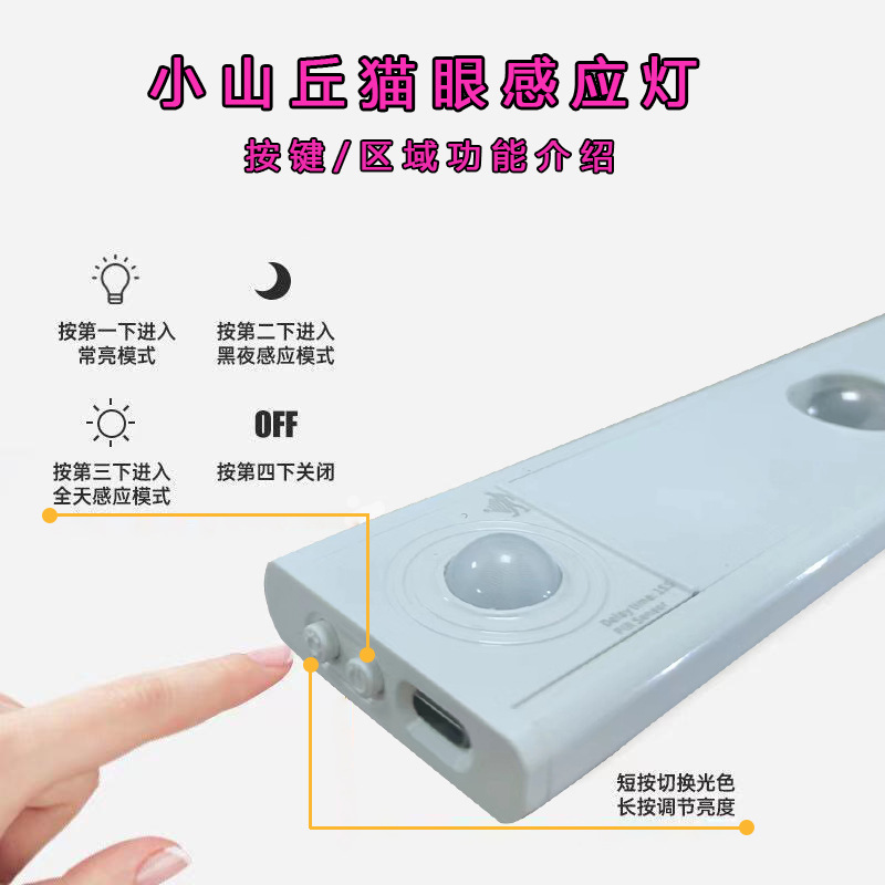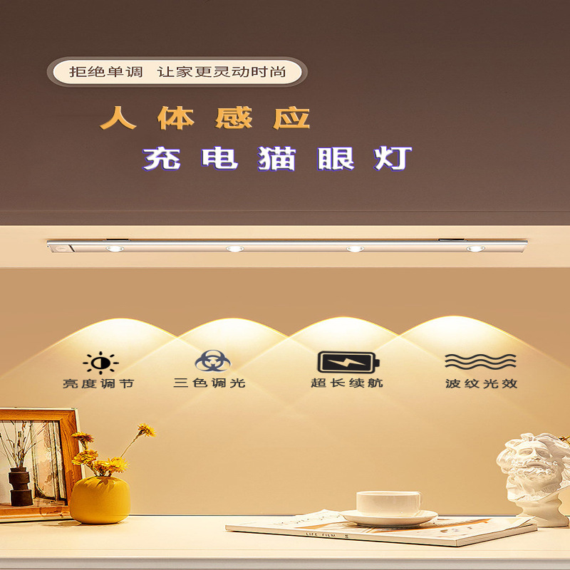 초박형 고양이 눈 램프 힐 램프 스마트 LED 인체 인덕션 충전식 야간 조명 옷장 와인 캐비닛 조명 벨트