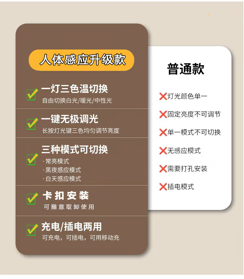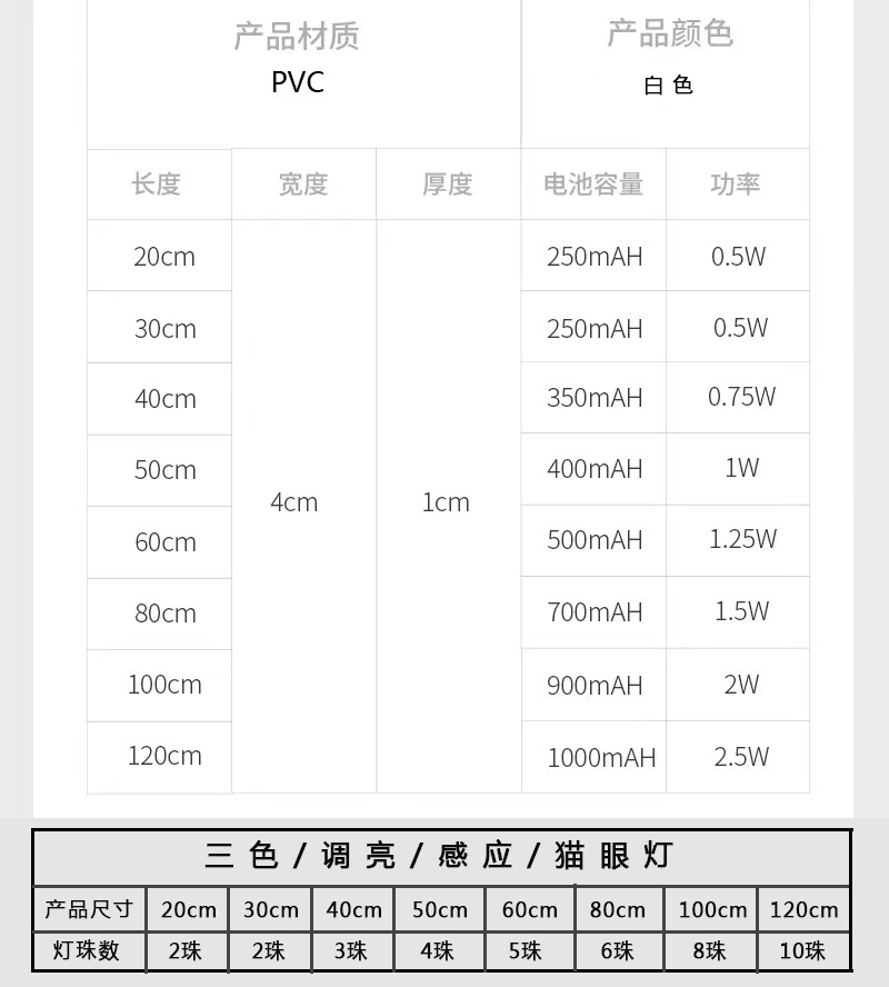 • 20CM2 램프 비드 (인체 유도 + 3 색 디밍 + 버클 설치)