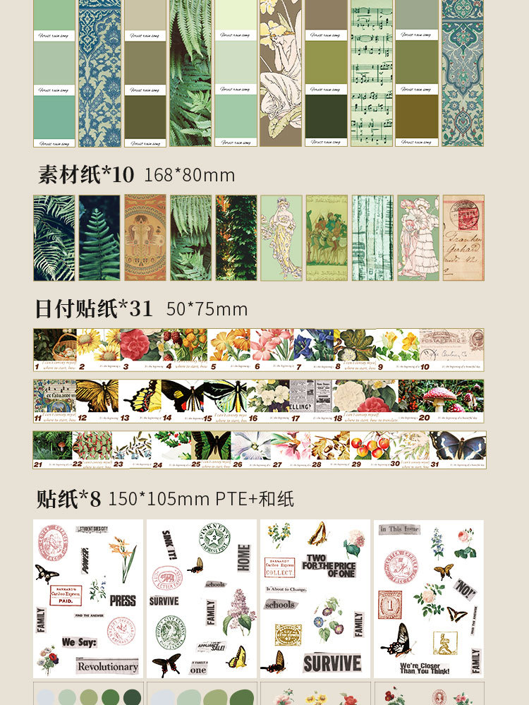 소재 패키지 모리 레인 맨지 레트로 시리즈 복고풍 예술 저널 DIY 장식 기본 종이
