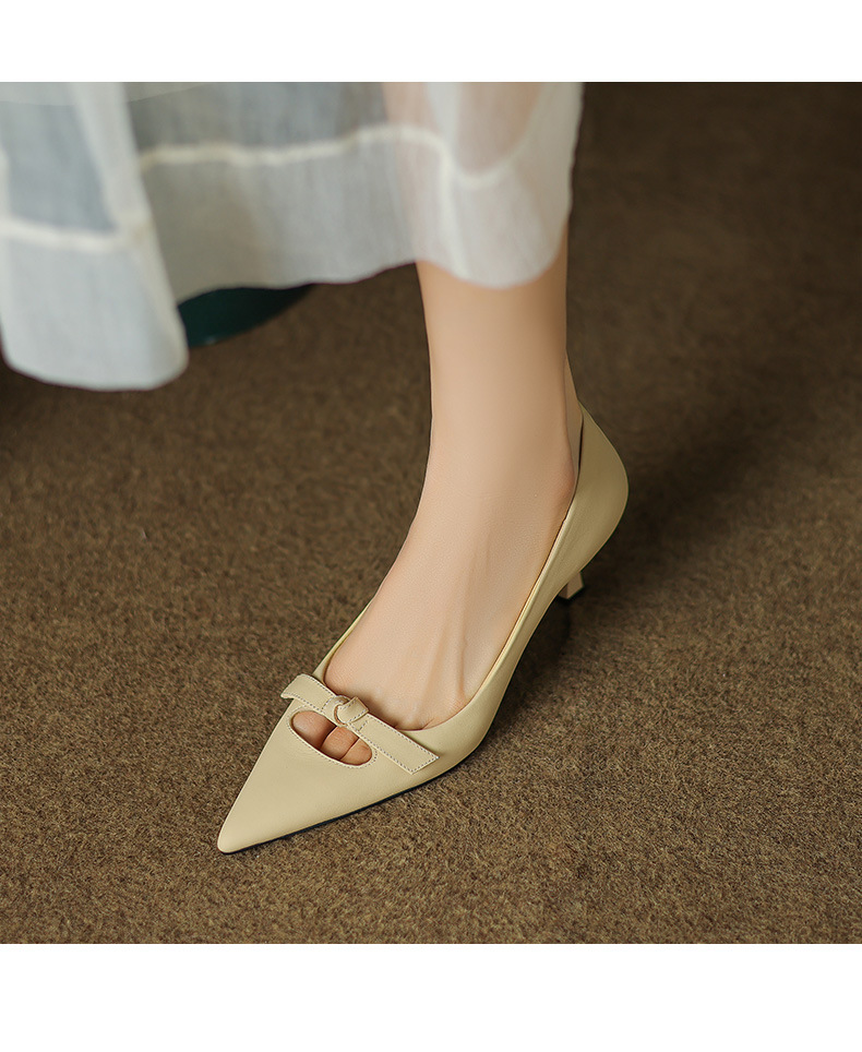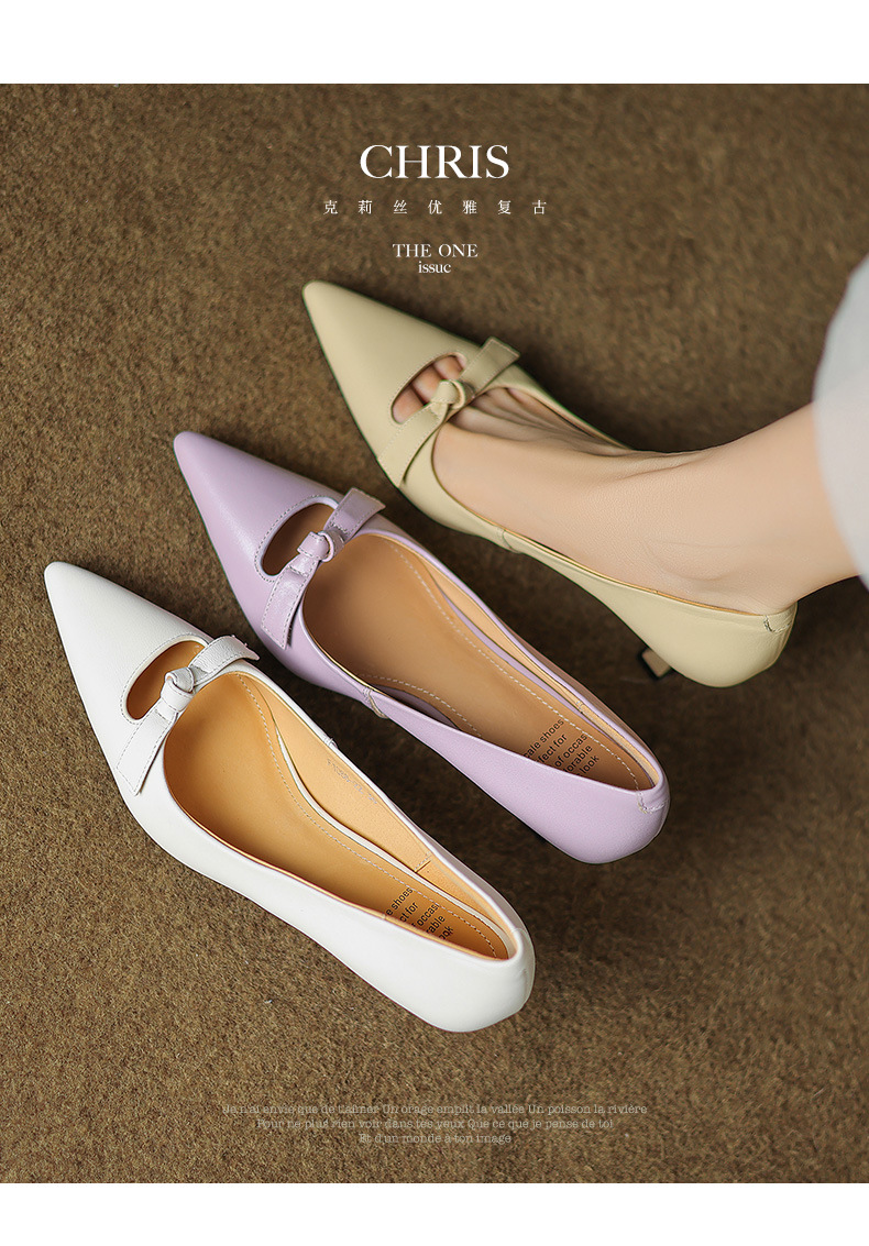 프랑스 스타일의 우아한 누드 하이힐 여성용 여름 틈새 디자인 느낌 얇은 굽 샤넬 스타일 전문 비 타이어 뾰족한 발가락 단일 레이어 신발스토어 가기