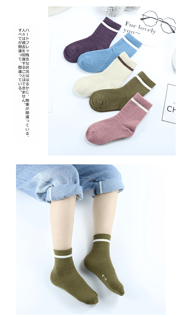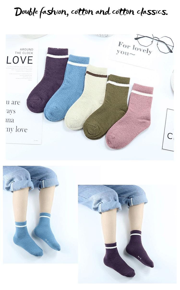 이순신 어린이 양말 겨울 새로운 두꺼운 한국 줄무늬 튜브 양말 양면 벨벳 따뜻한 큰 어린이 모피 양말