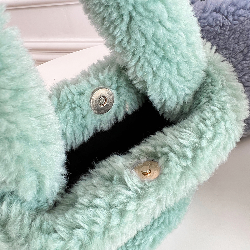 모조 양고기 푹신한 가방 작은 가방 여자의 겨울 새로운 단색 핸드백 작은 푹신한 버킷 가방