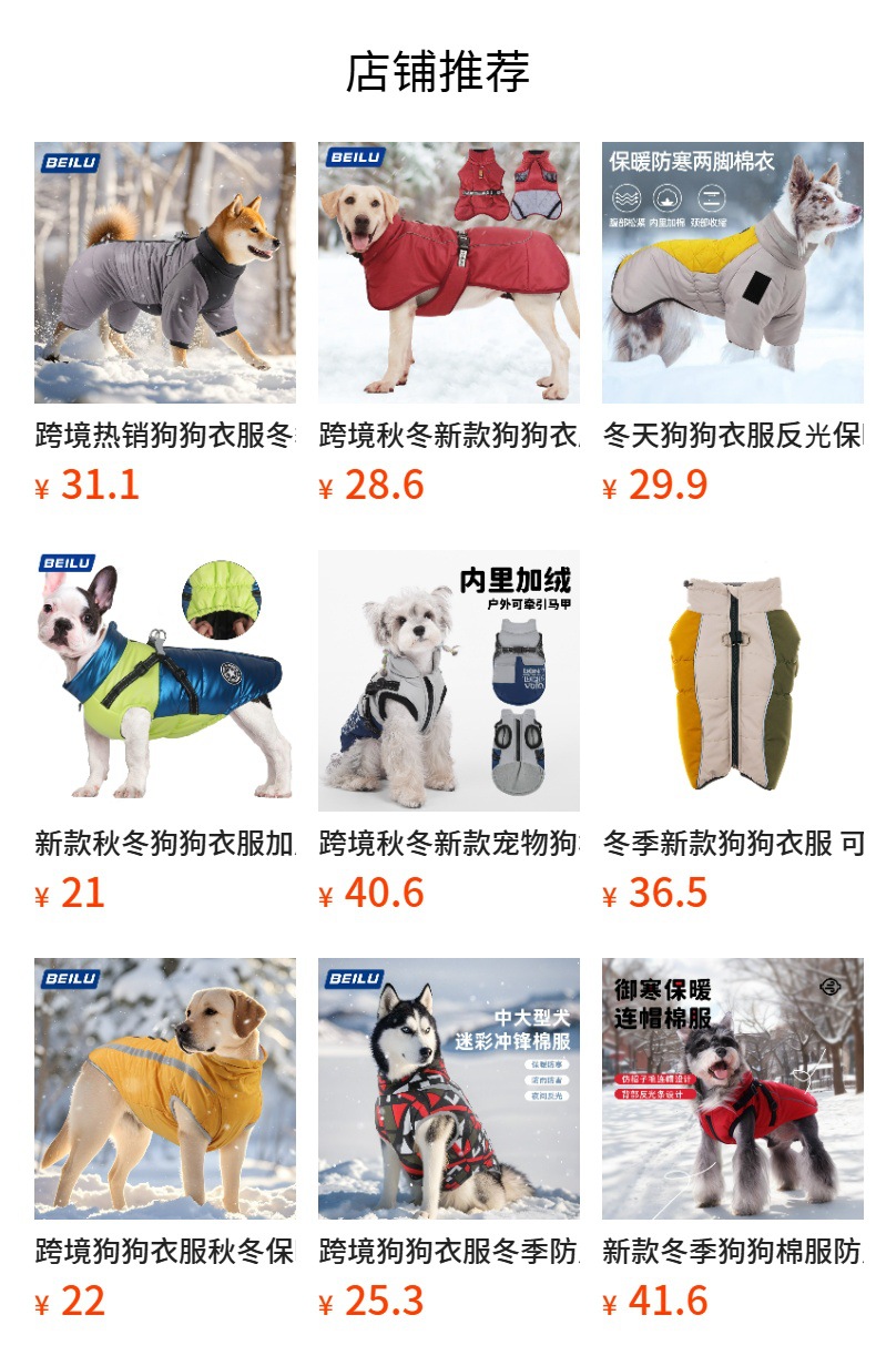 반려동물에게 편안한 가을/겨울용 방수 면옷, 양면 착용 가능한 대형견 옷스토어 가기