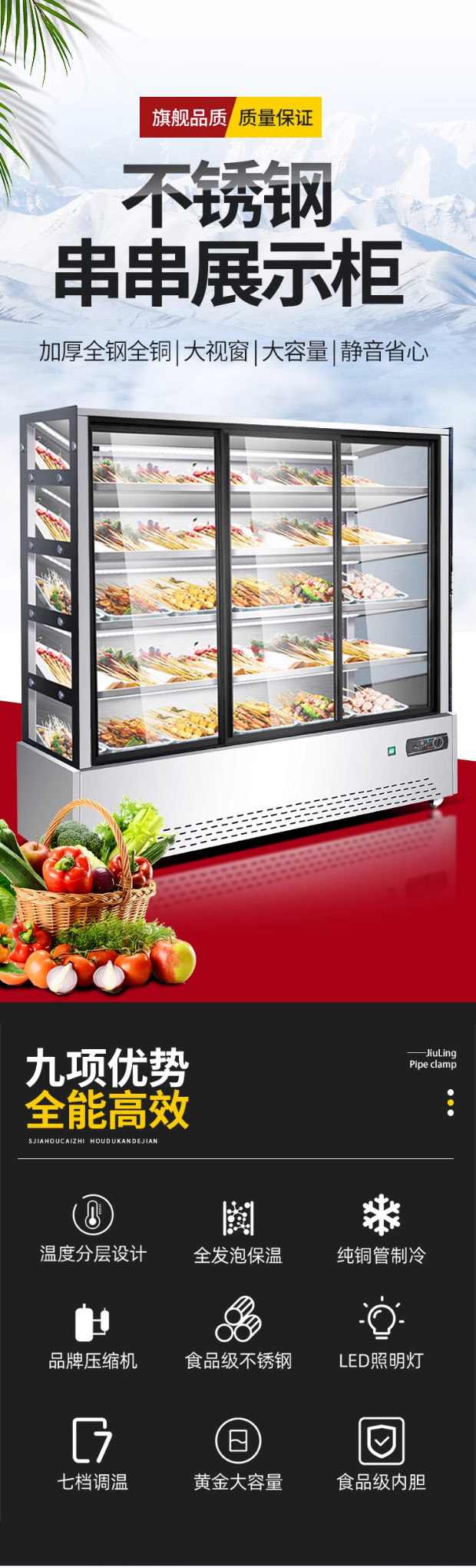 문자열 가게 냉장 디스플레이 캐비닛 레스토랑 바베큐 매운 음식 과일 보존 주문 캐비닛 유리 도어 냉동스토어 가기