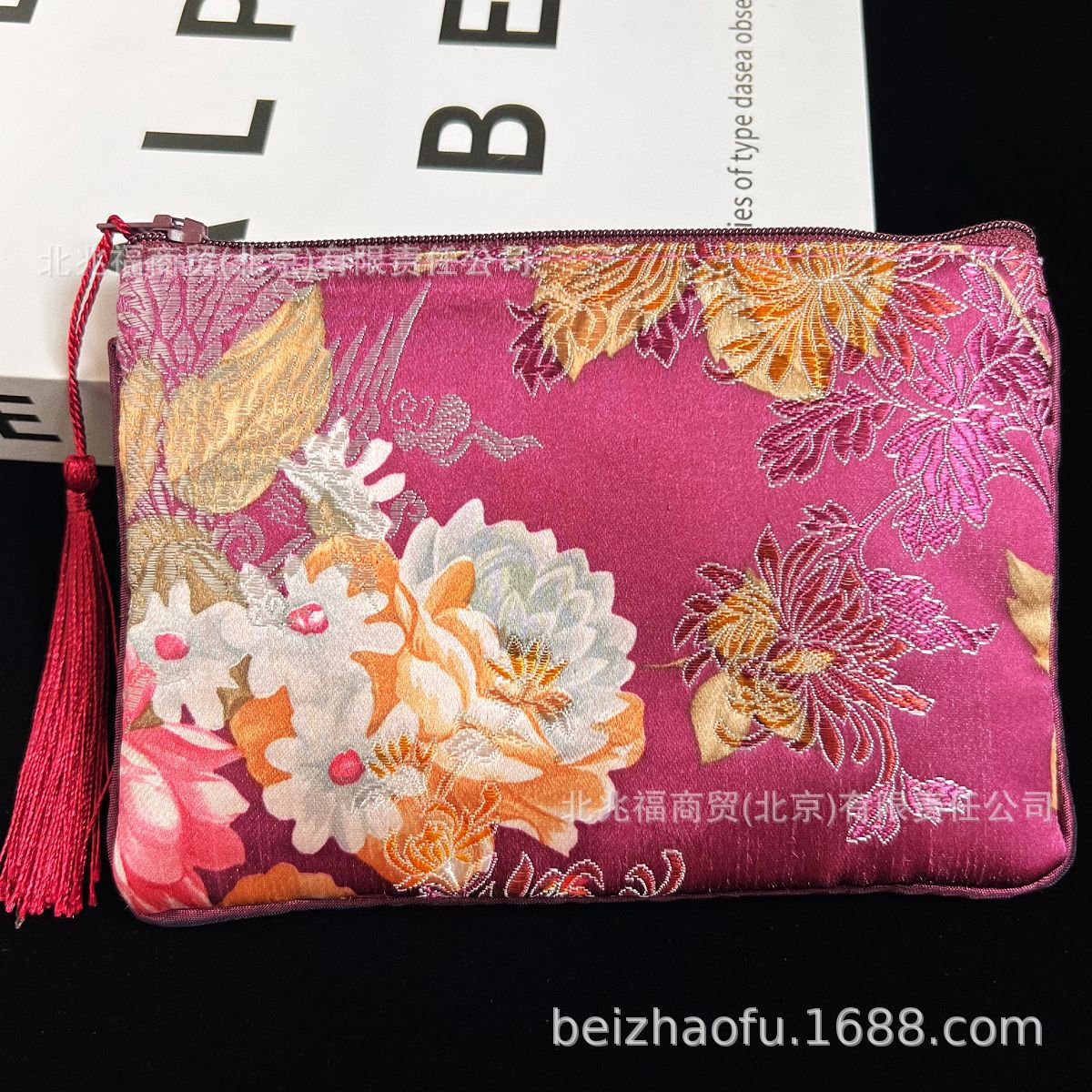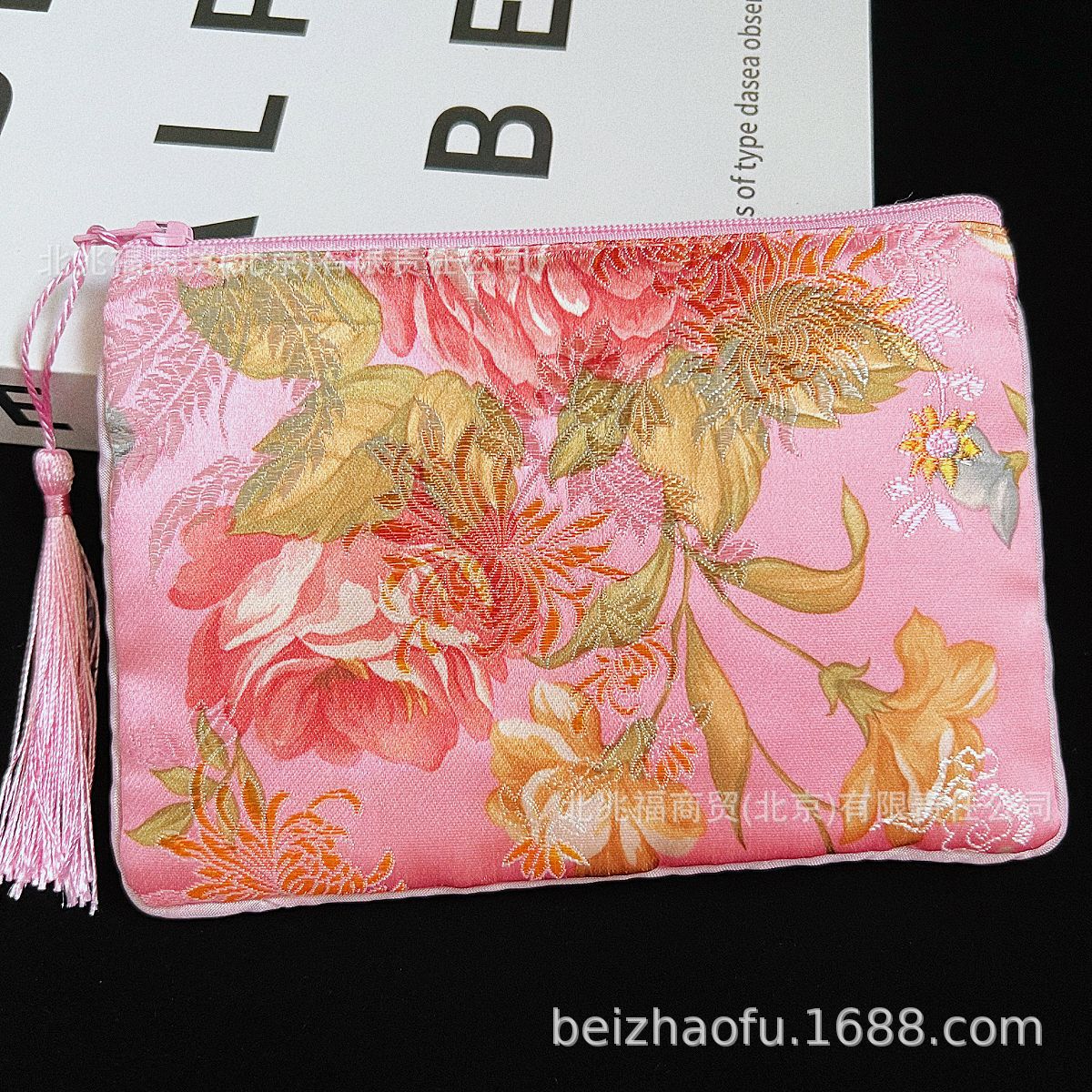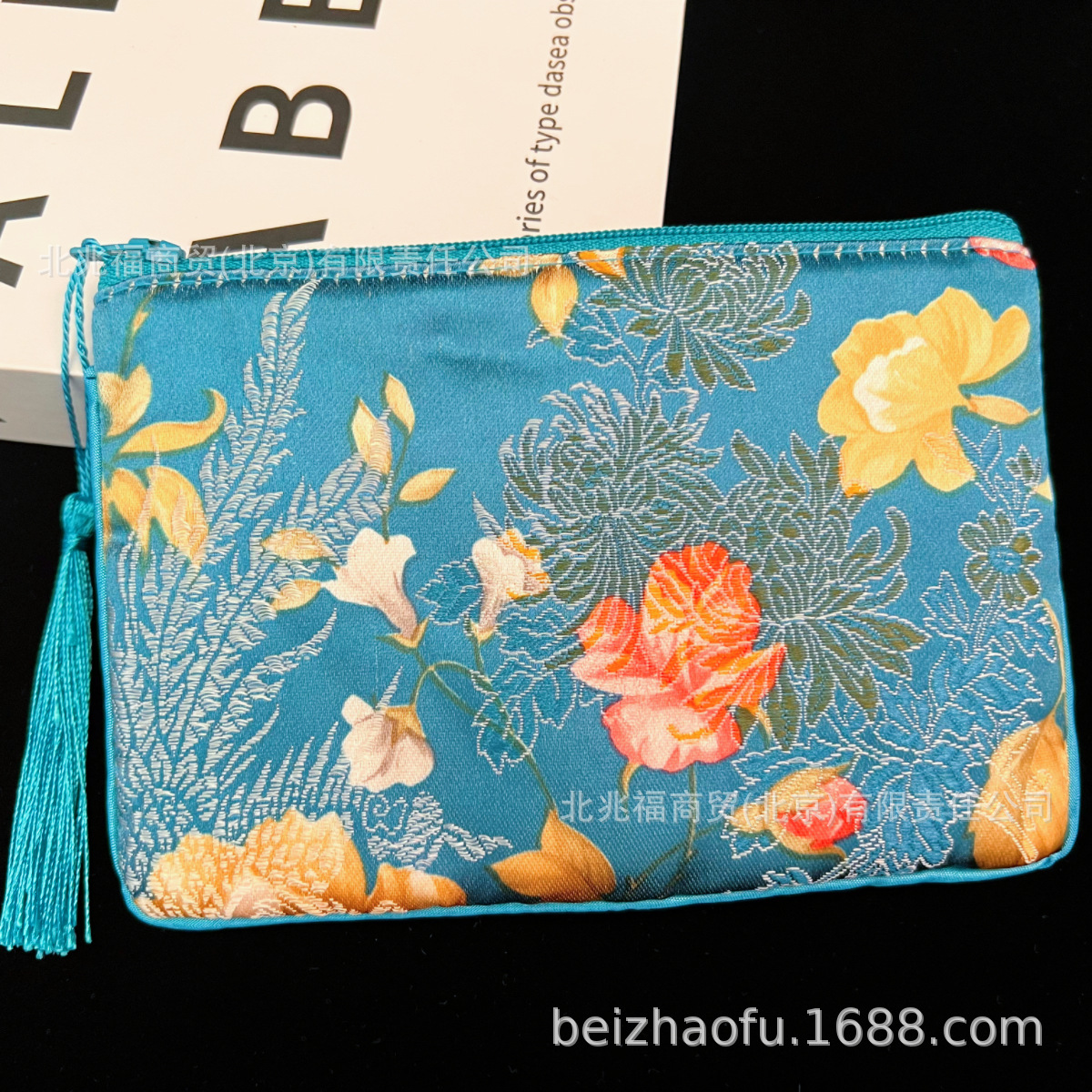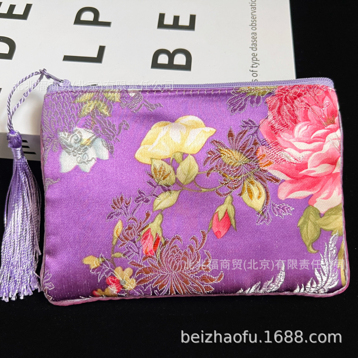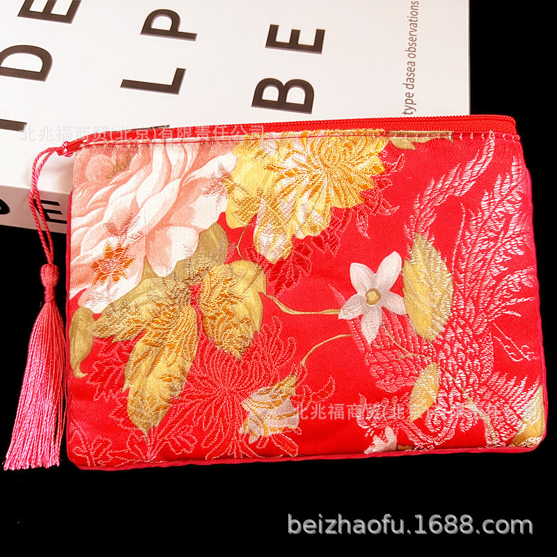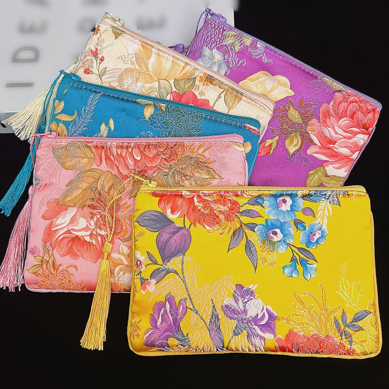 여성을위한 중국 스타일 두꺼운 실크 동전 지갑 인쇄 된 패브릭 동전 사각형 가방 동전 가방 저장 지퍼 쥬얼리 팔찌 가방