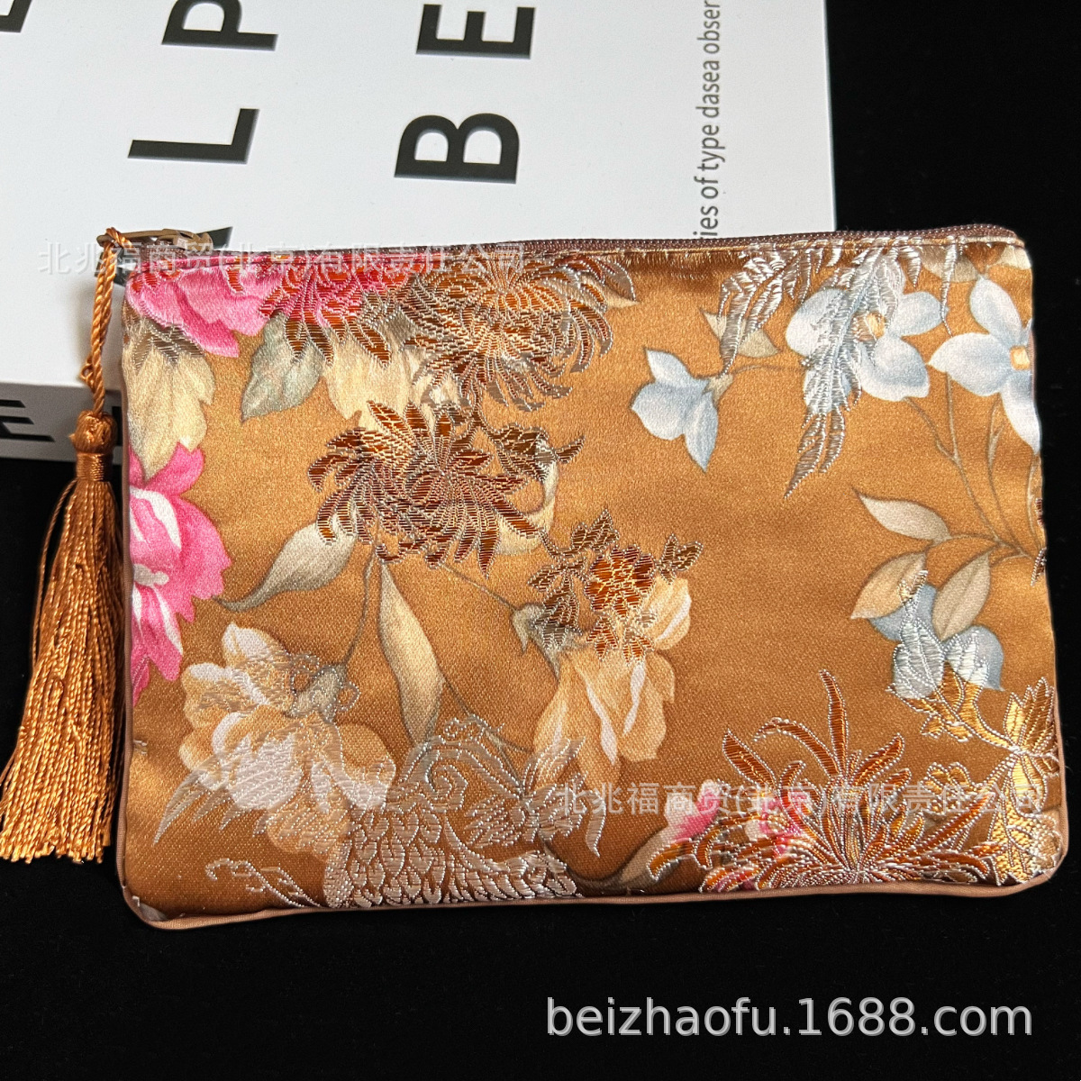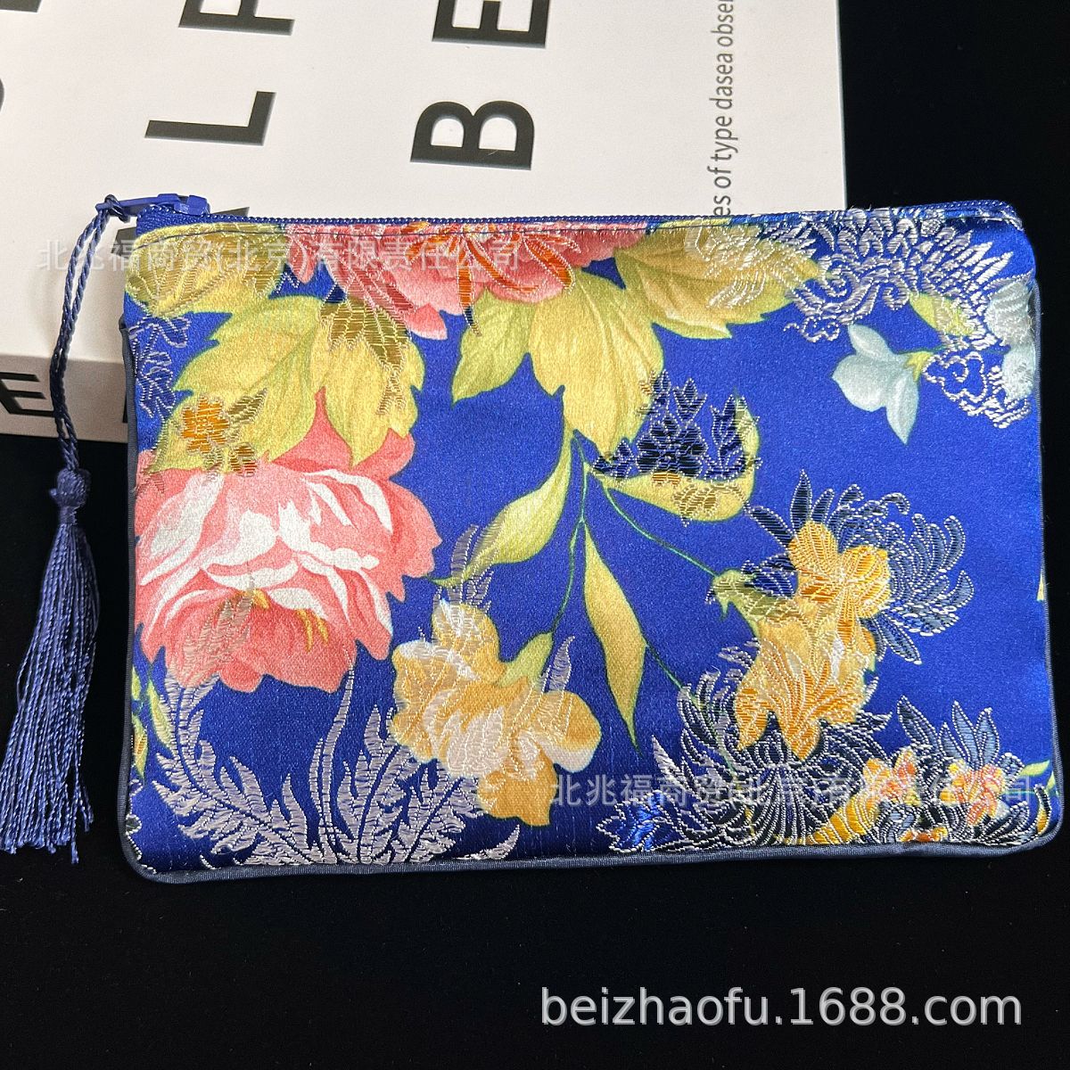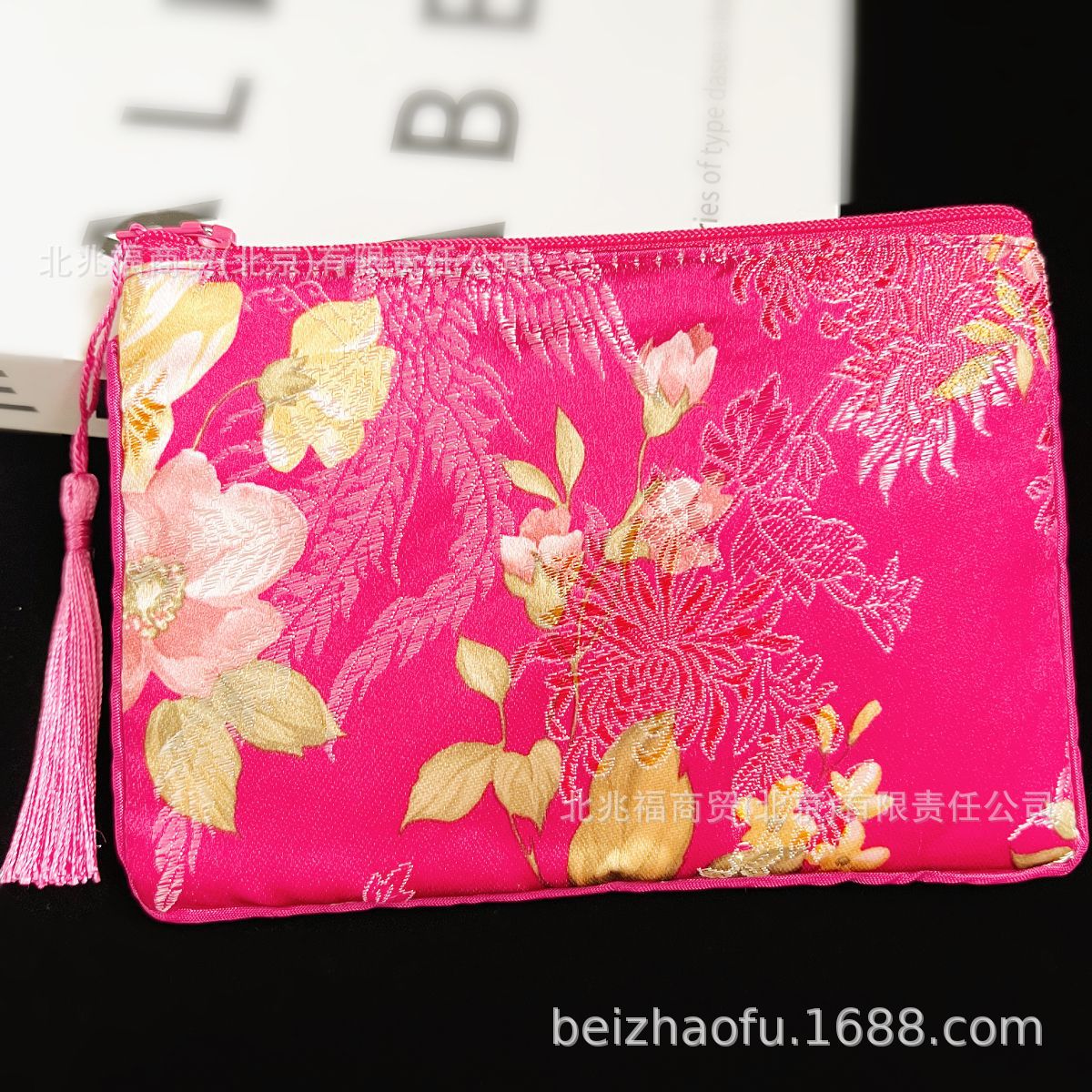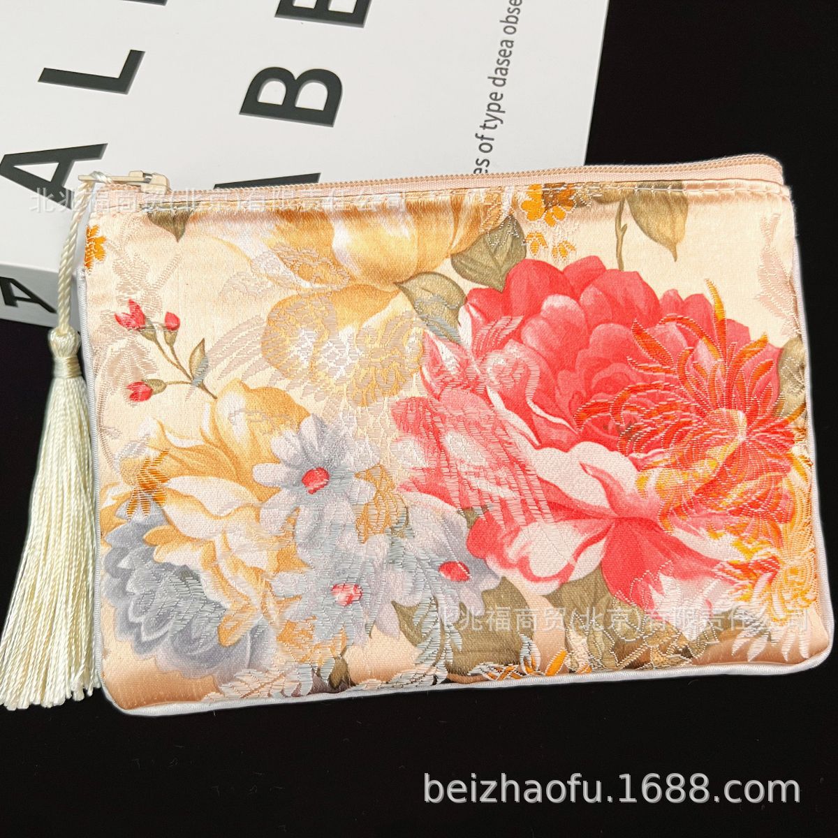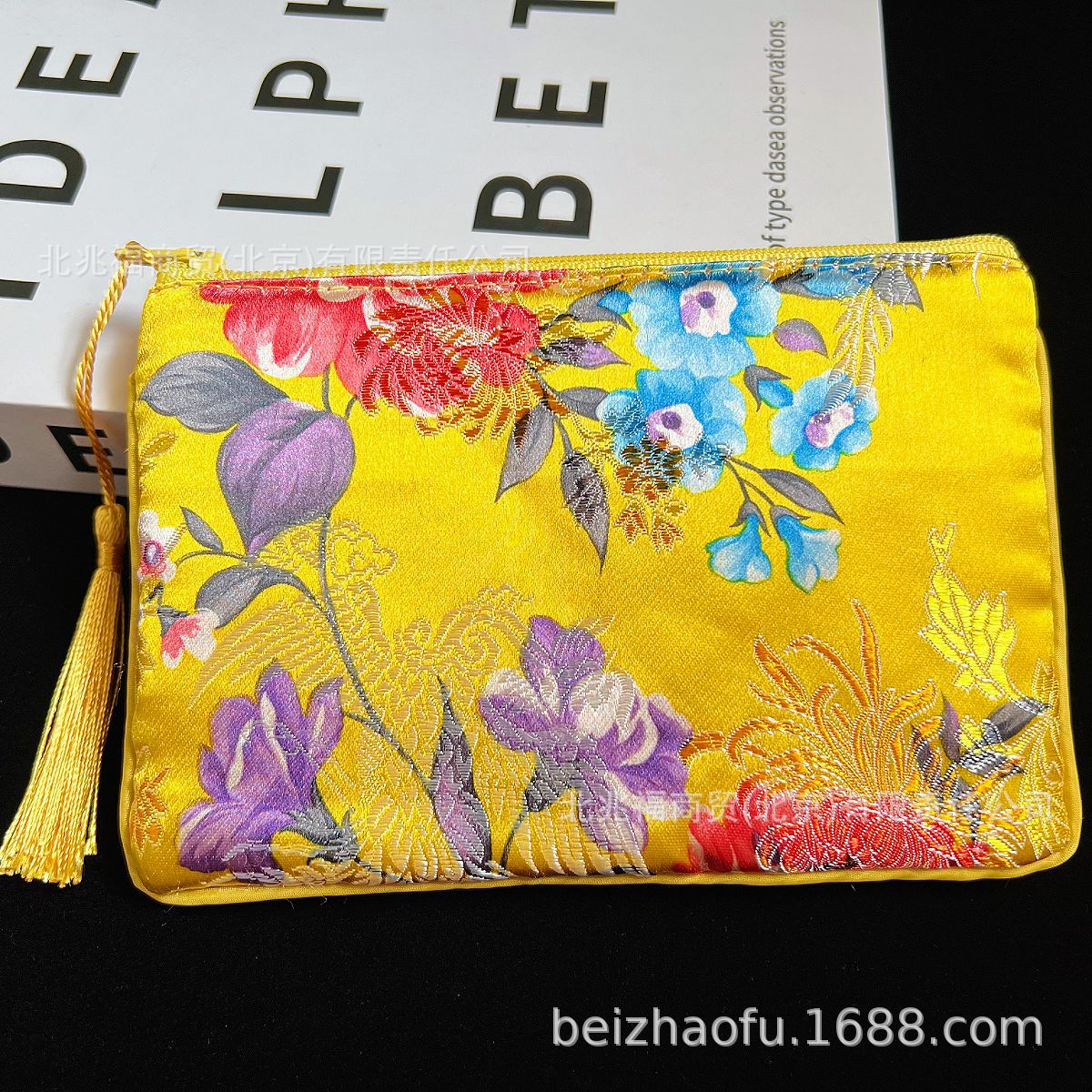 여성을위한 중국 스타일 두꺼운 실크 동전 지갑 인쇄 된 패브릭 동전 사각형 가방 동전 가방 저장 지퍼 쥬얼리 팔찌 가방