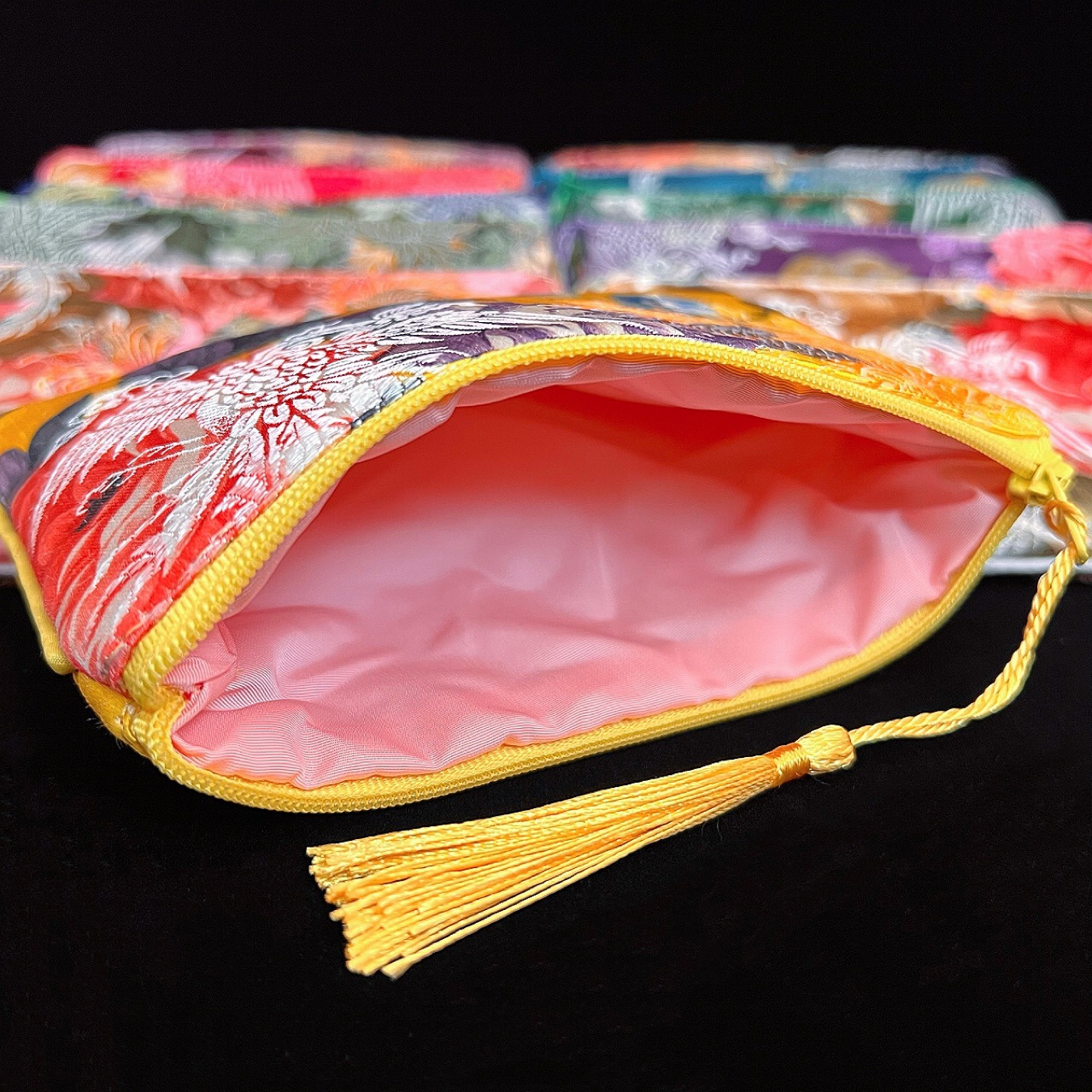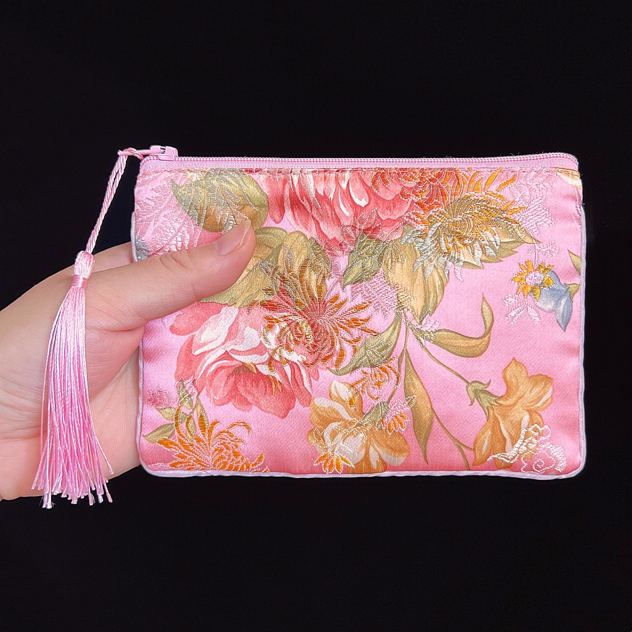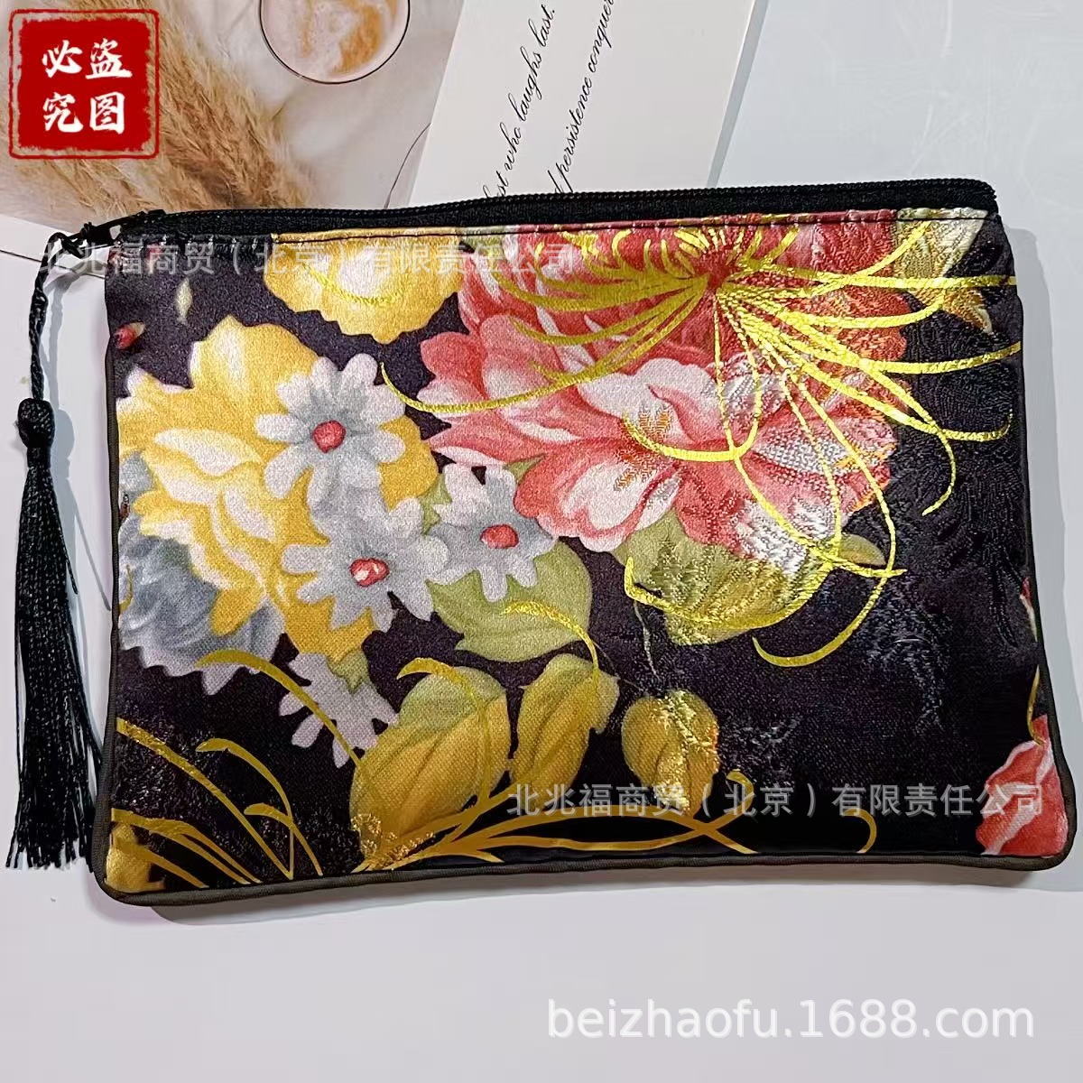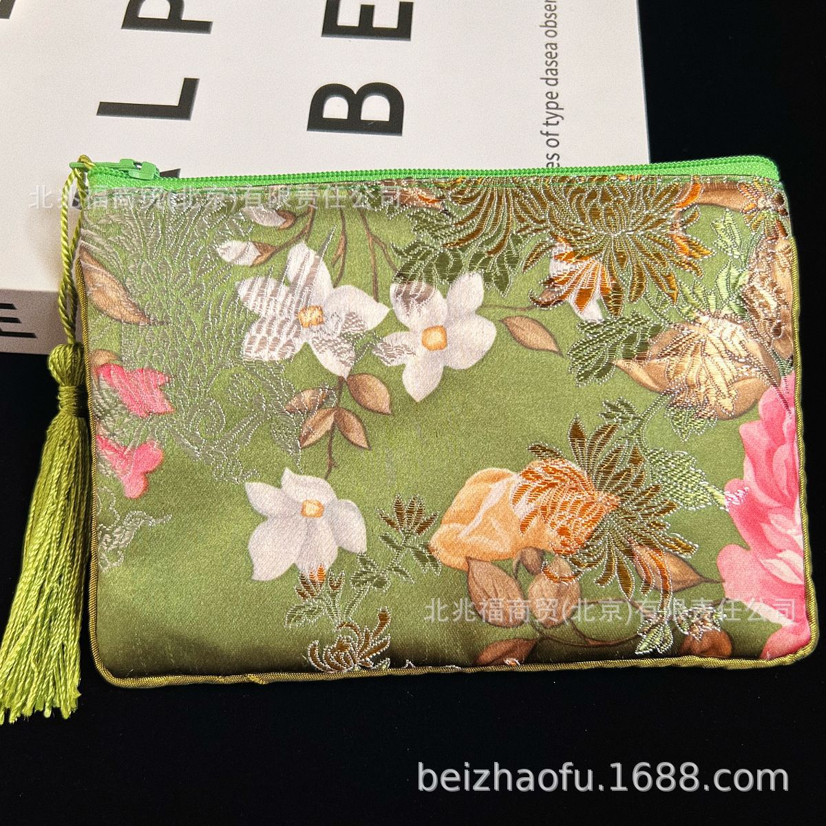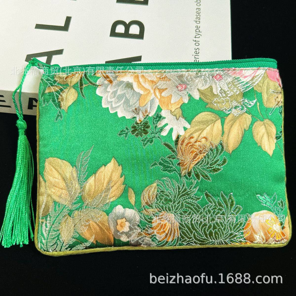 여성을위한 중국 스타일 두꺼운 실크 동전 지갑 인쇄 된 패브릭 동전 사각형 가방 동전 가방 저장 지퍼 쥬얼리 팔찌 가방