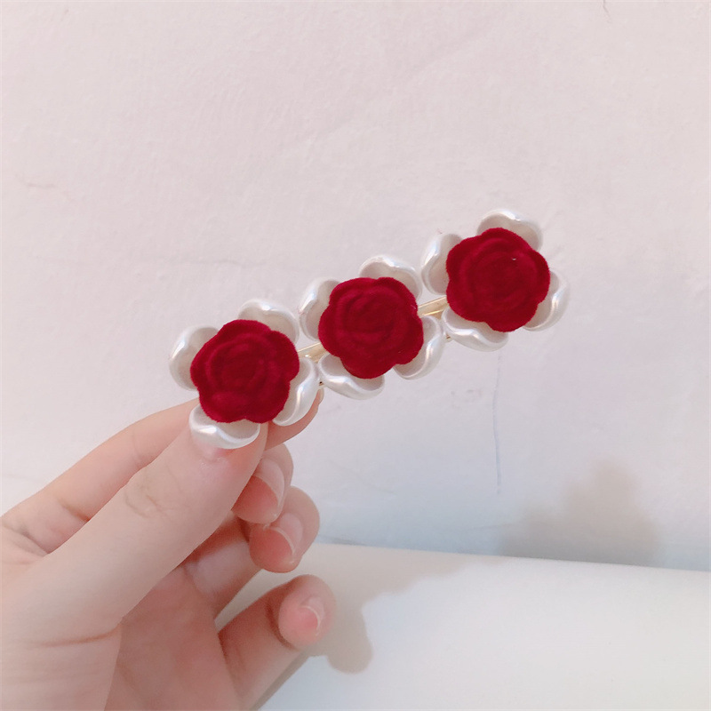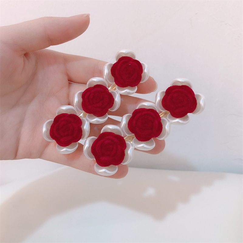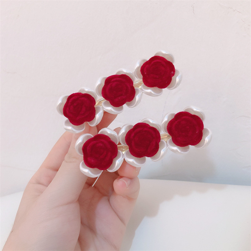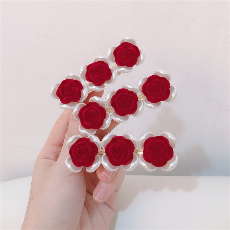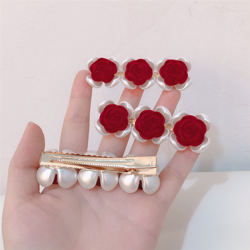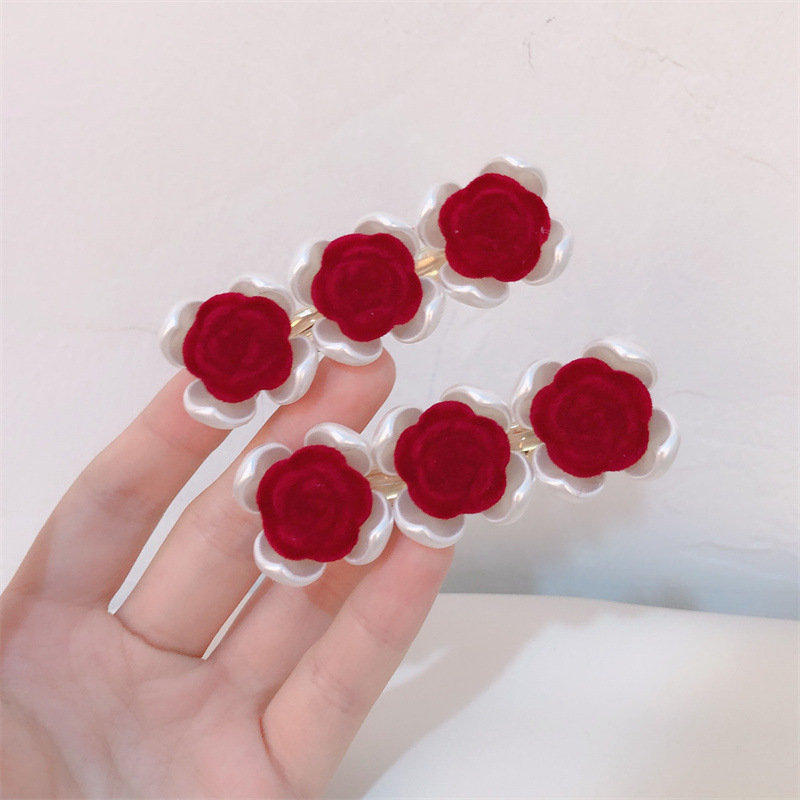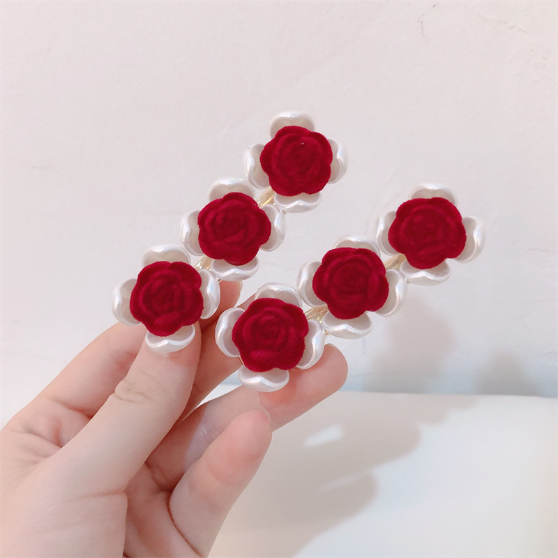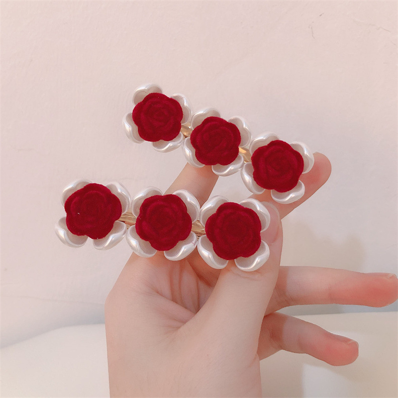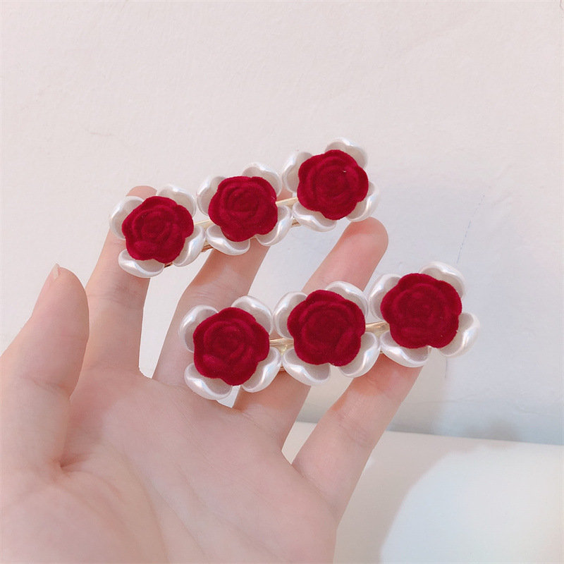 프랑스 복고풍 가을과 겨울 몰려 드는 장미 사이드 클립 달콤한 슈퍼 요정 깨진 헤어 클립 그물 빨간 앞머리 클립 머리핀 헤어 액세서리스토어 가기