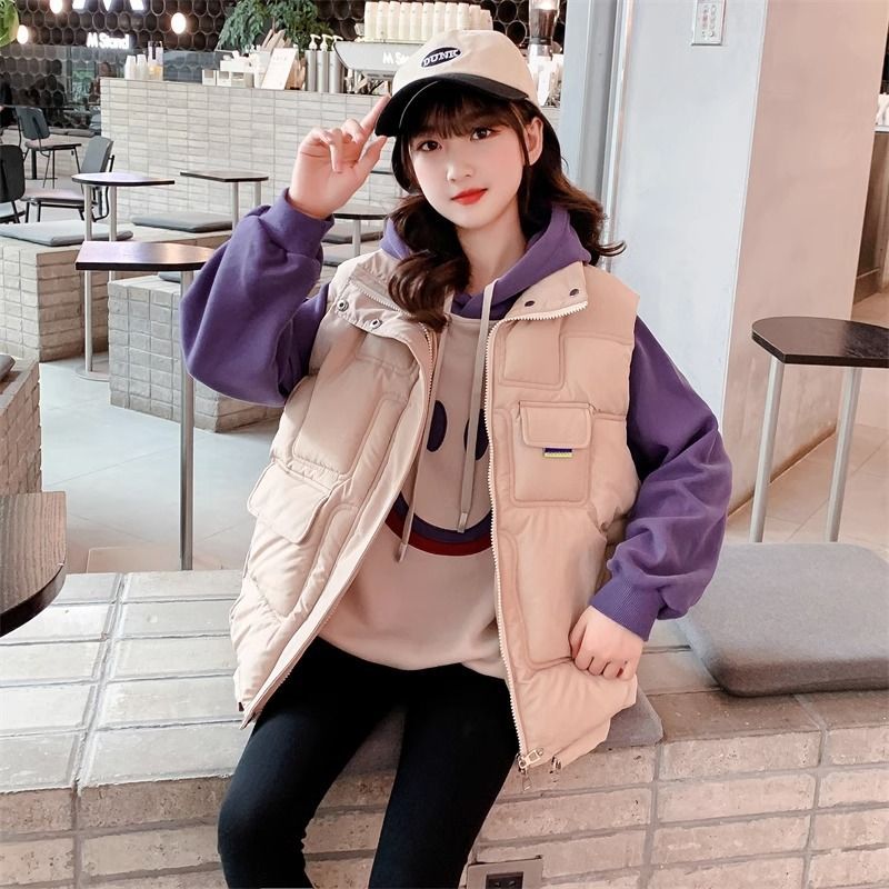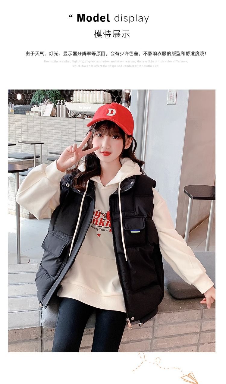 여아 조끼 가을과 겨울 아우터 유행 새로운 어린이 서양 스타일 두꺼운 코트 큰 어린이 깊은 가을 느슨한 조끼