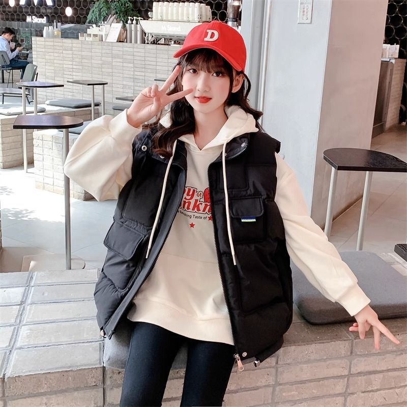 여아 조끼 가을과 겨울 아우터 유행 새로운 어린이 서양 스타일 두꺼운 코트 큰 어린이 깊은 가을 느슨한 조끼스토어 가기
