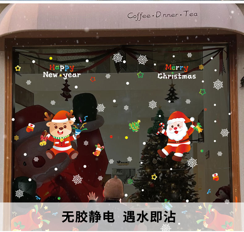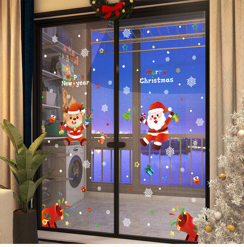 크리스마스 스티커 슬라이딩 도어 창 크리스마스 추적 장식 스티커 2024 새로운 눈사람 엘크 만화 정전기 스티커스토어 가기