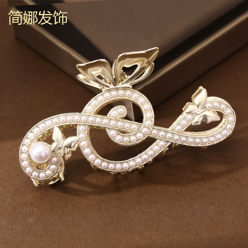 2023 새로운 대형 노트 진주 그랩 클립 여성용 뒷머리 머리핀 고급 감각 인터넷 연예인 상어 클립 헤어 액세서리