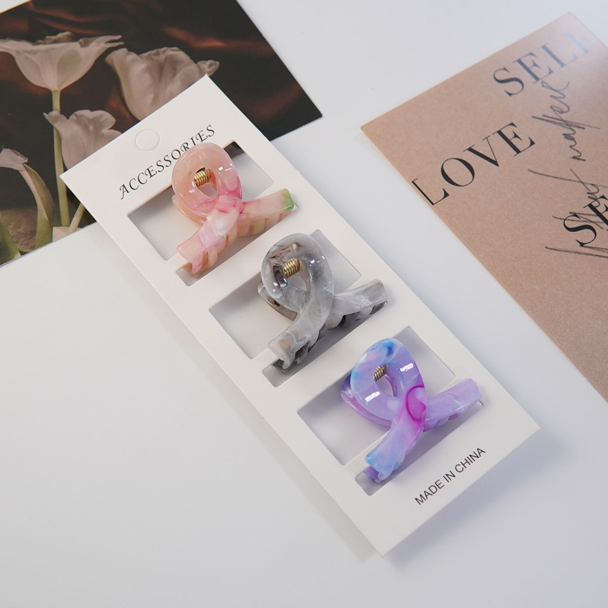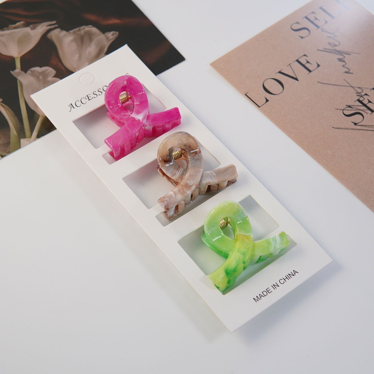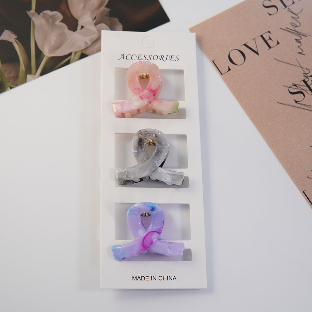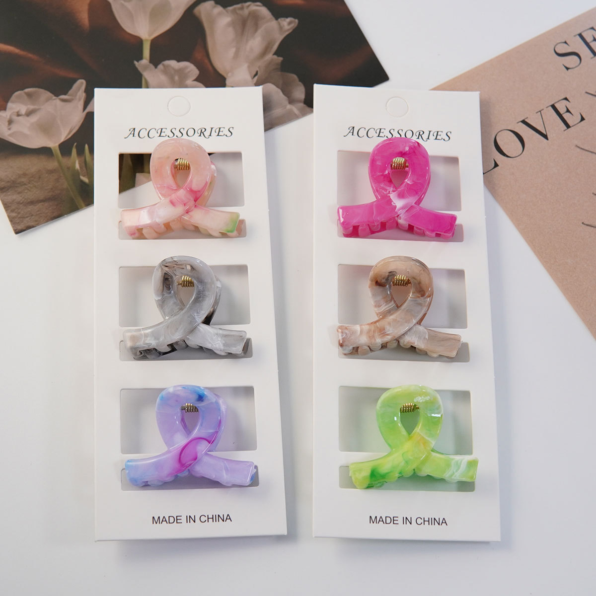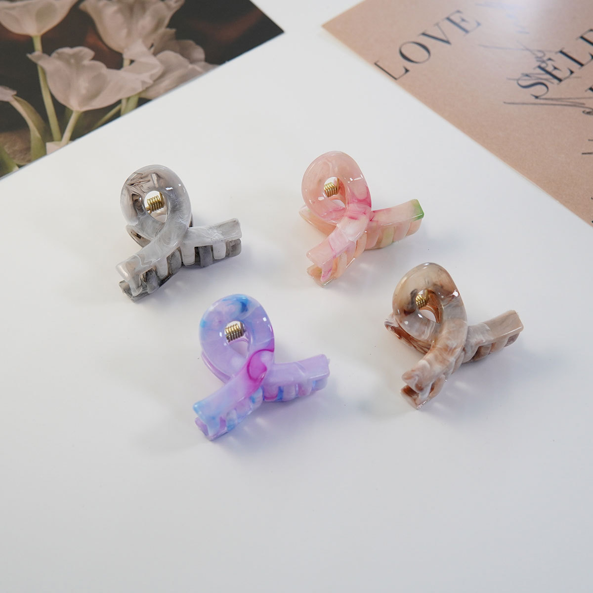 4CM 밀크티 색상 신상 중형 크로스 헤어핀 심플하고 우아한 뒷머리 포근머리용 헤어핀