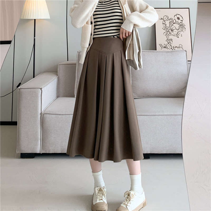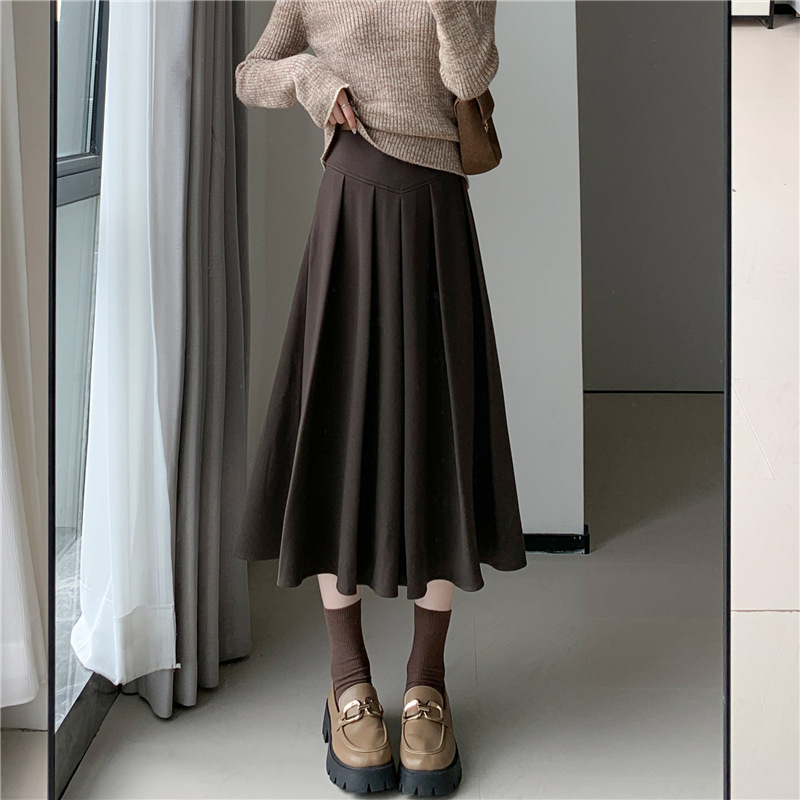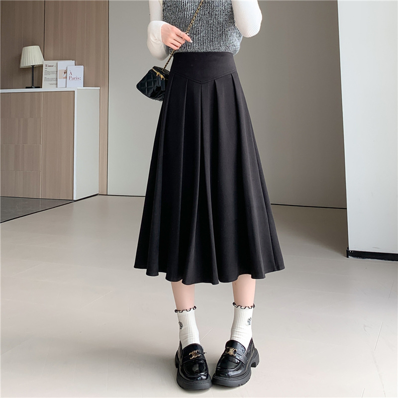 리얼 샷 모직 스커트 여성용 중간 길이 2023 가을과 겨울 새로운 디자인 센스 블랙 A 라인 플리츠 스커트 우산 스커트스토어 가기