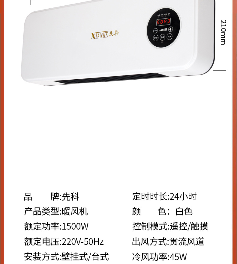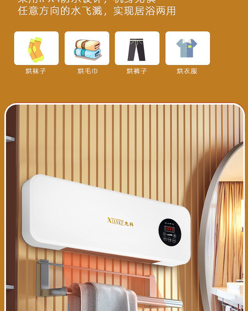 Xianke 모바일 소형 에어컨 가정용 히터 욕실 벽걸이 히터 전기 히터 뜨거운 송풍기 도매스토어 가기