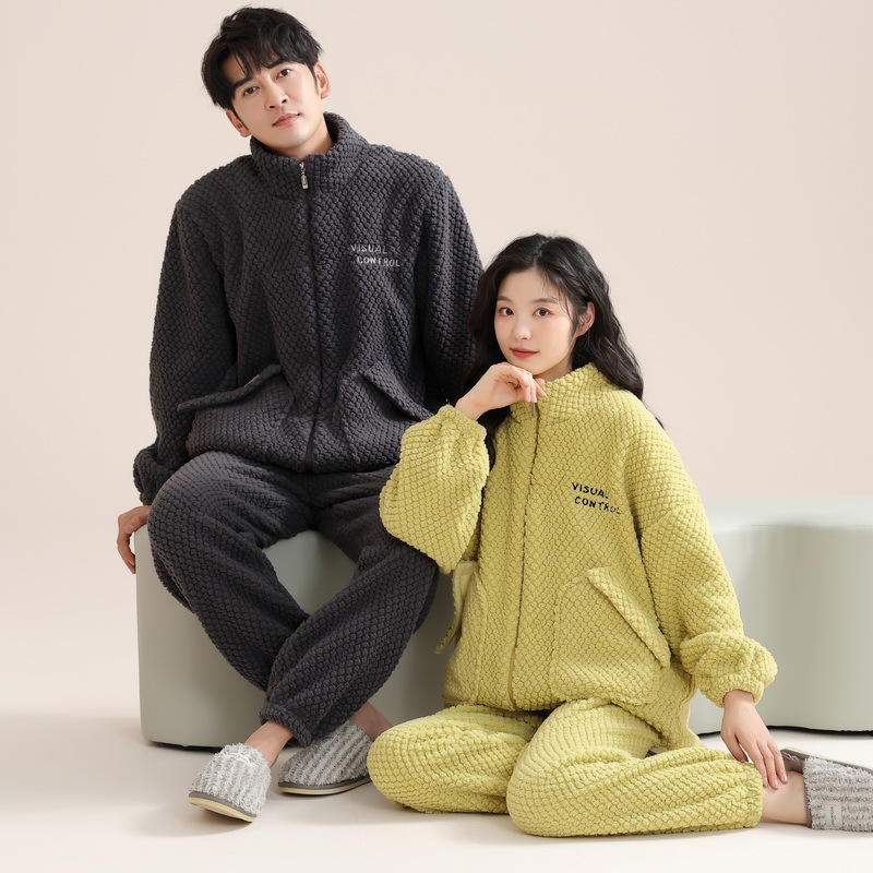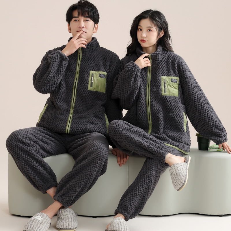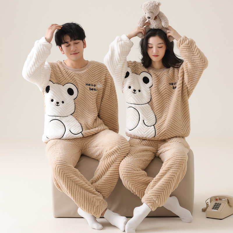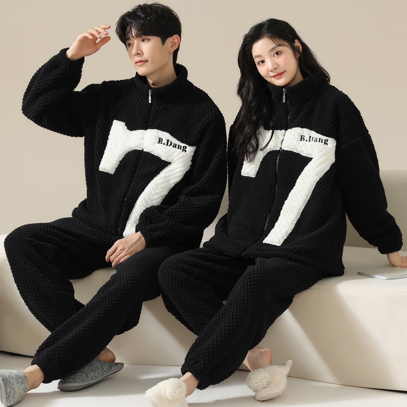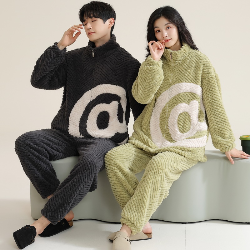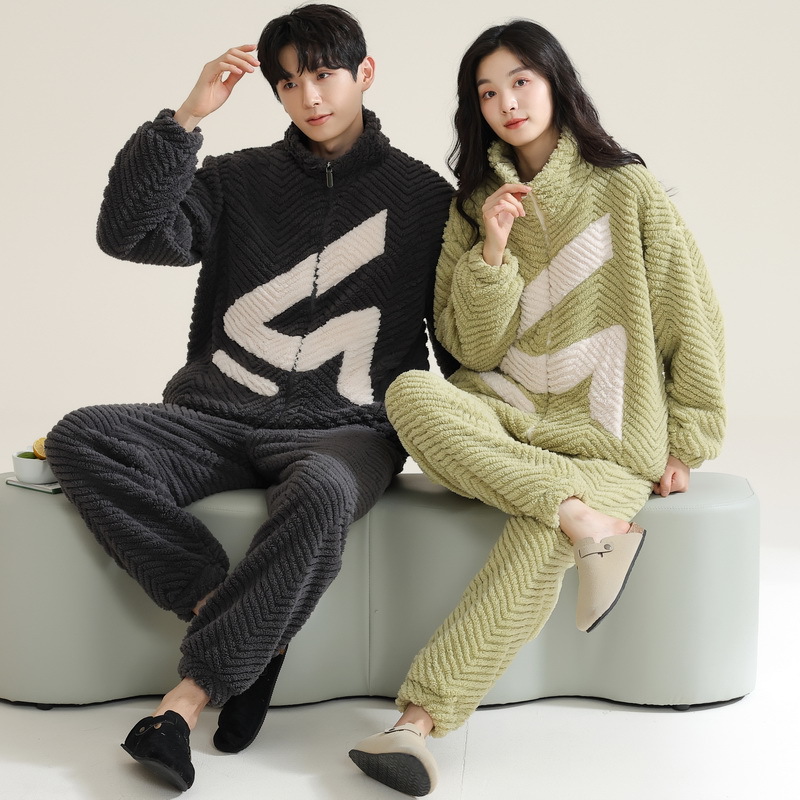 고급 산호 양털 커플 잠옷 여자의 가을과 겨울 플란넬 남자의 기모 두꺼운 가정 옷 겨울 야외 세트스토어 가기