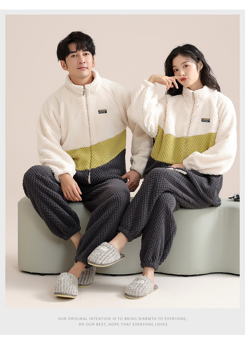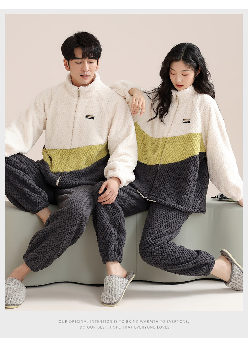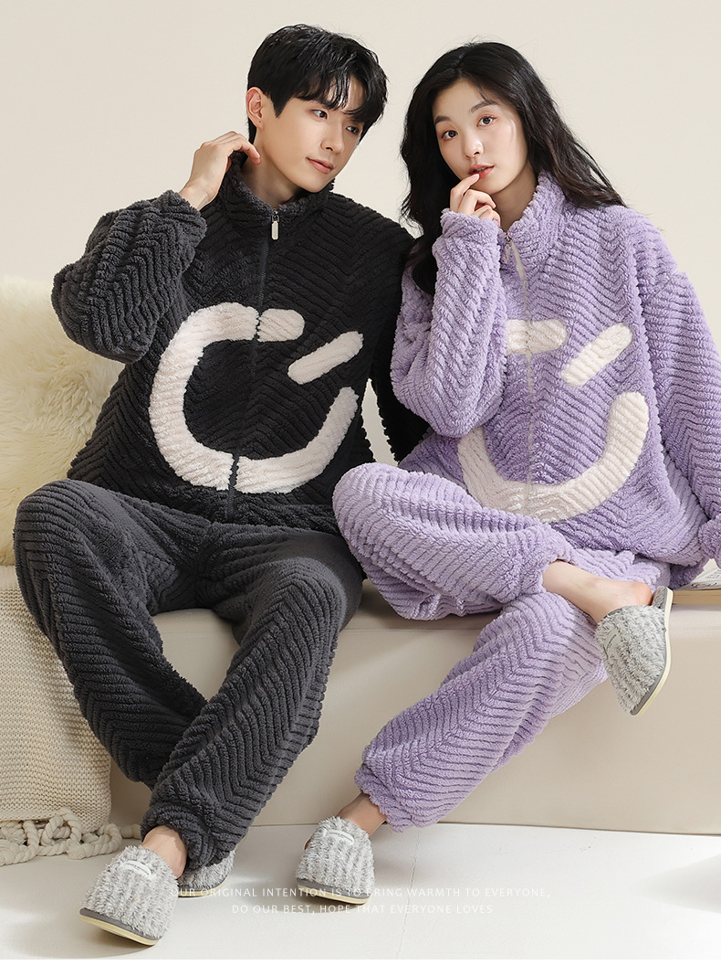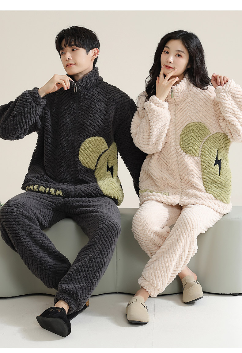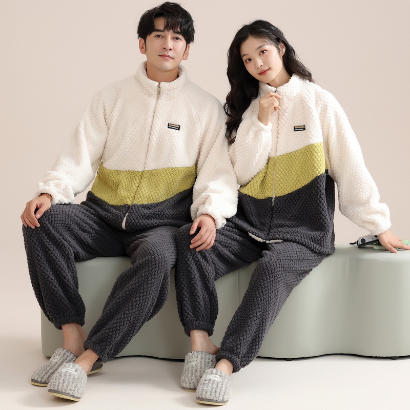 고급 산호 양털 커플 잠옷 여자의 가을과 겨울 플란넬 남자의 기모 두꺼운 가정 옷 겨울 야외 세트스토어 가기