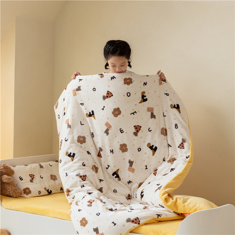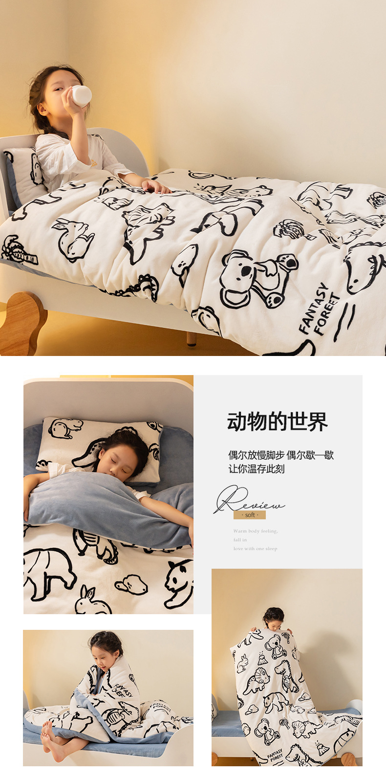 클래스 아기 우유 양털 이불 어린이 만화 커버 분리식 및 세척 가능한 가을과 겨울 두꺼운 유치원 낮잠 겨울스토어 가기