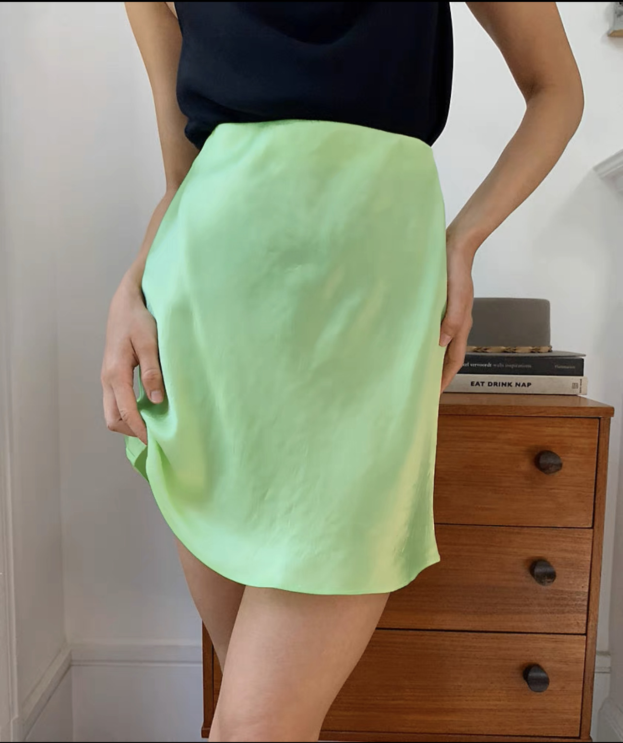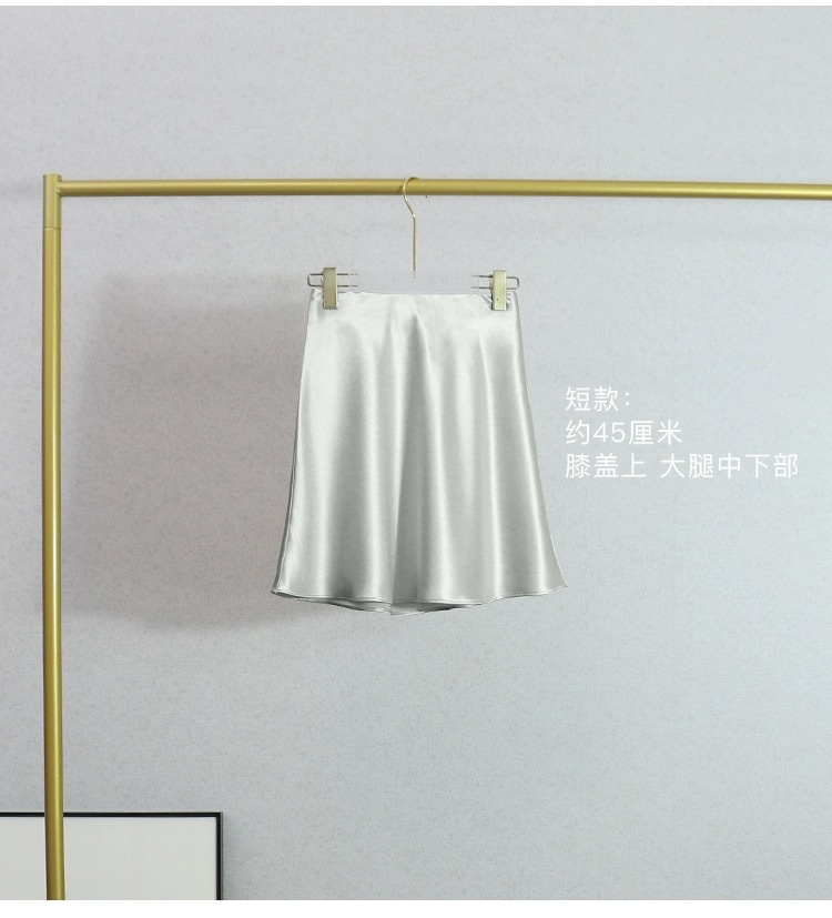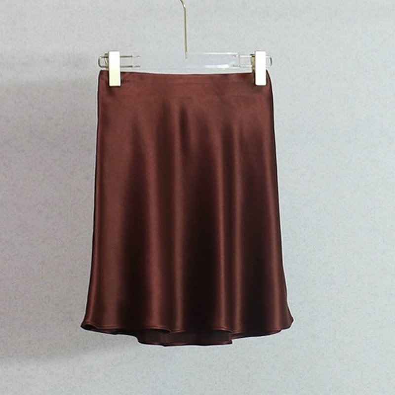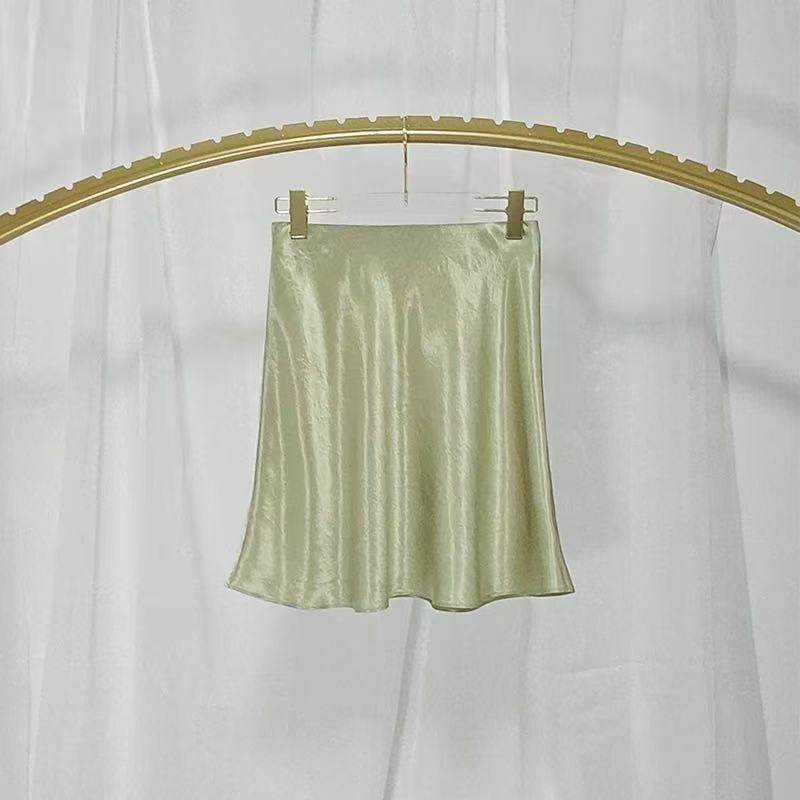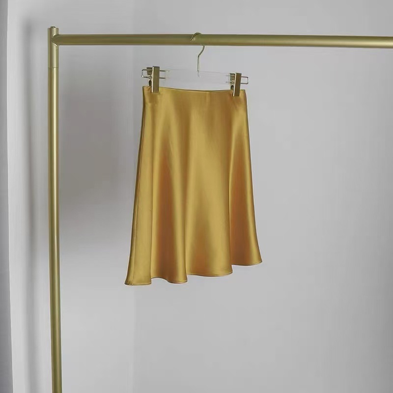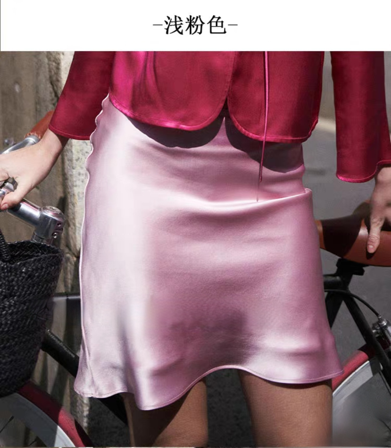 헤비웨이트 수입 삼아세테이트 스커트, 새틴 광택, 신축성 있는 허리, 사선 재단 A라인 머메이드 미니 스커트, 여성용 가을스토어 가기